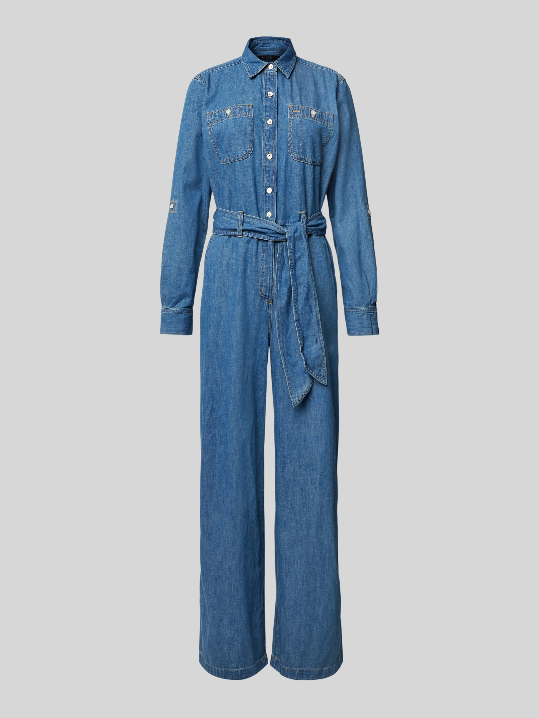 Lauren Ralph LaurenJumpsuit in Denim-Optik mit Bindegürtel Modell 'CRISELDA' in jeansblau