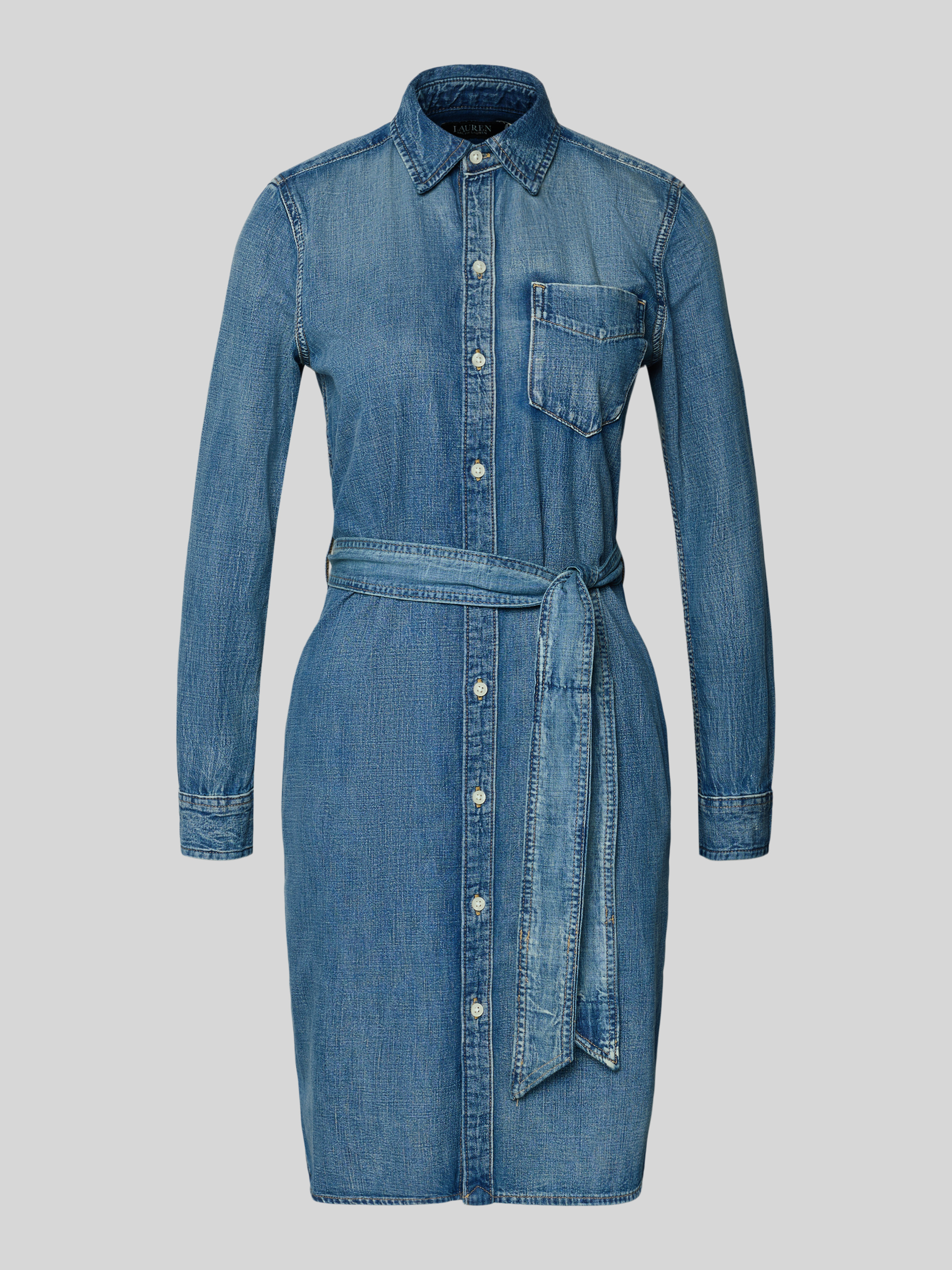 Lauren Ralph LaurenKnielanges Jeanskleid mit Bindegürtel Modell 'JAMEIKA' in jeansblau