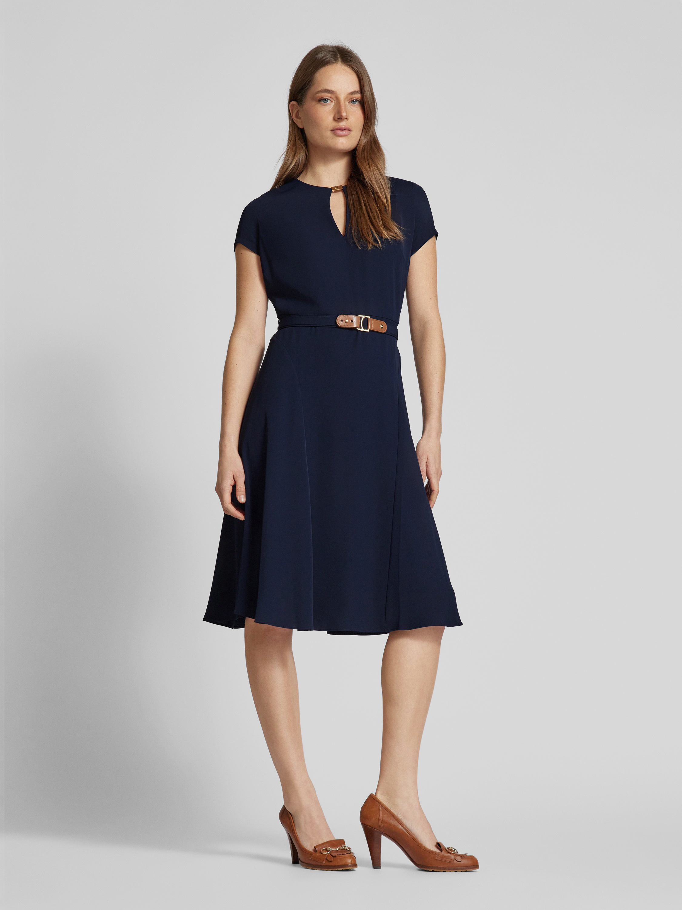 Lauren Ralph LaurenKnielanges Kleid mit Schlüsselloch-Ausschnitt Modell 'BRYGITKA' in marine