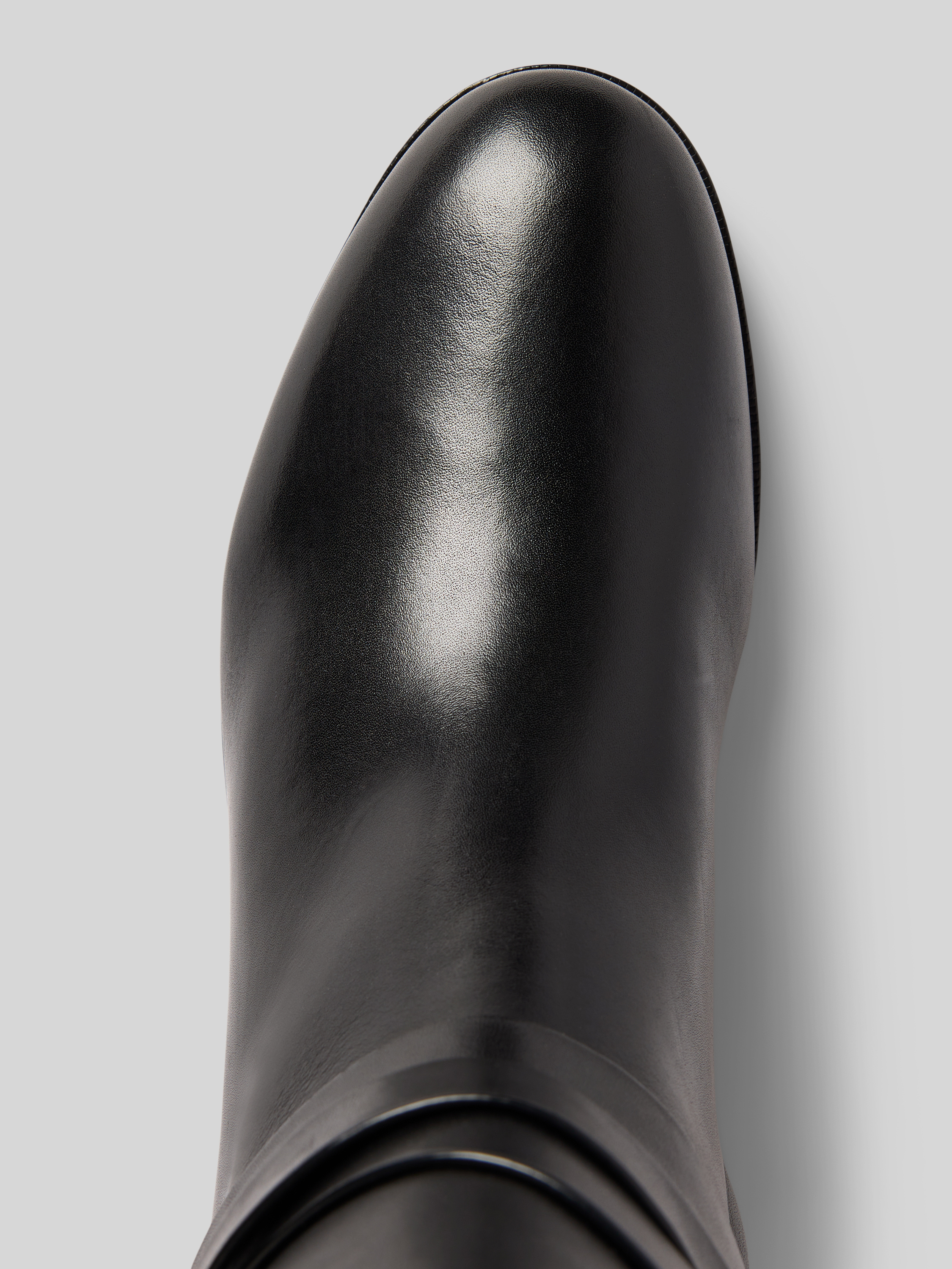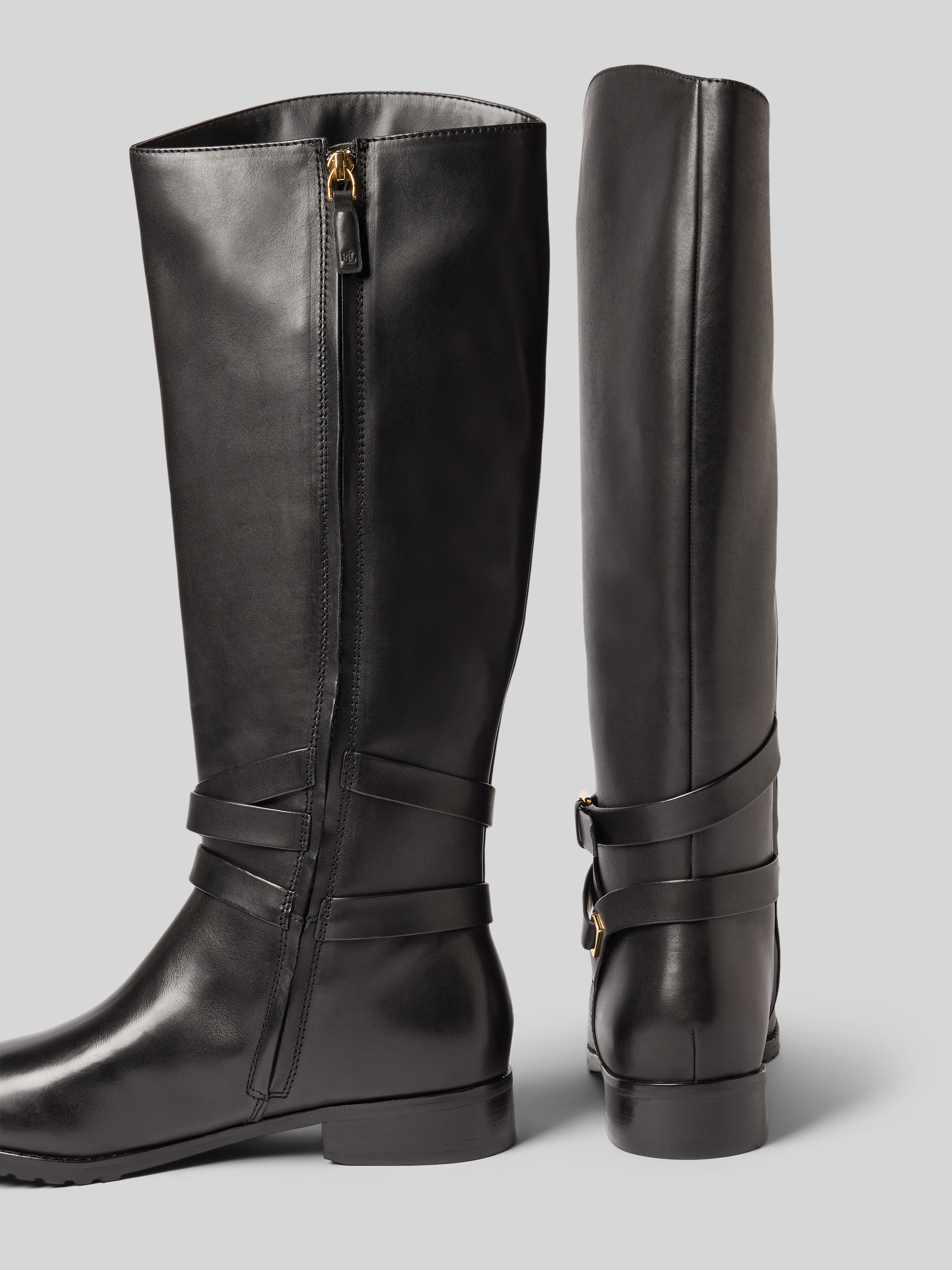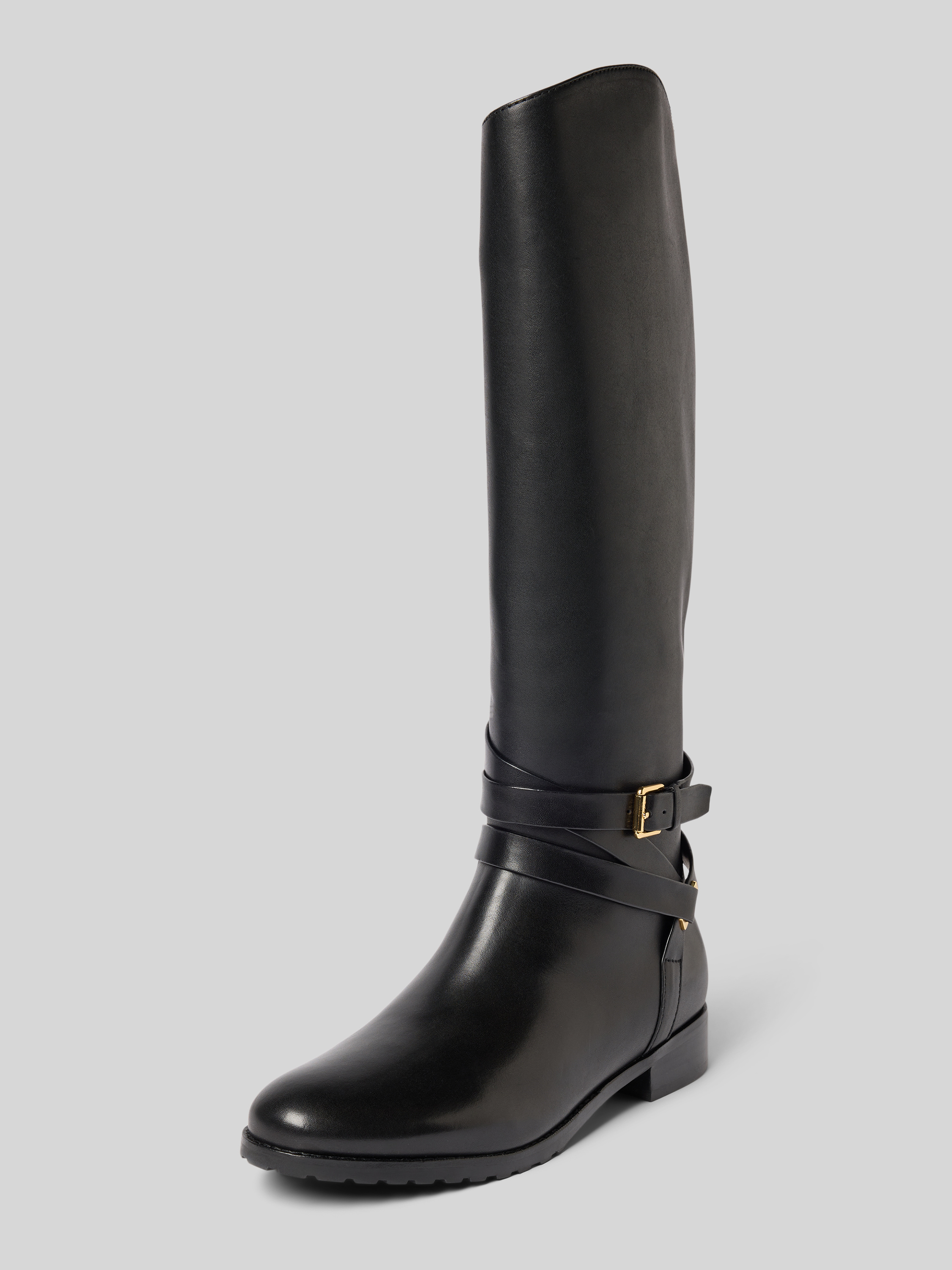 Die Damen Lederstiefel von Lauren Ralph Lauren Modell COLLINS zeigen sich in abgerundeter Form mit hohem Schaft und einer markanten Dornschließe. Echtes Leder sorgt für ein angenehmes Tragegefühl und Langlebigkeit. Durch die leicht profilierte Sohle eignet sich der Stiefel besonders für verschiedene Wege.