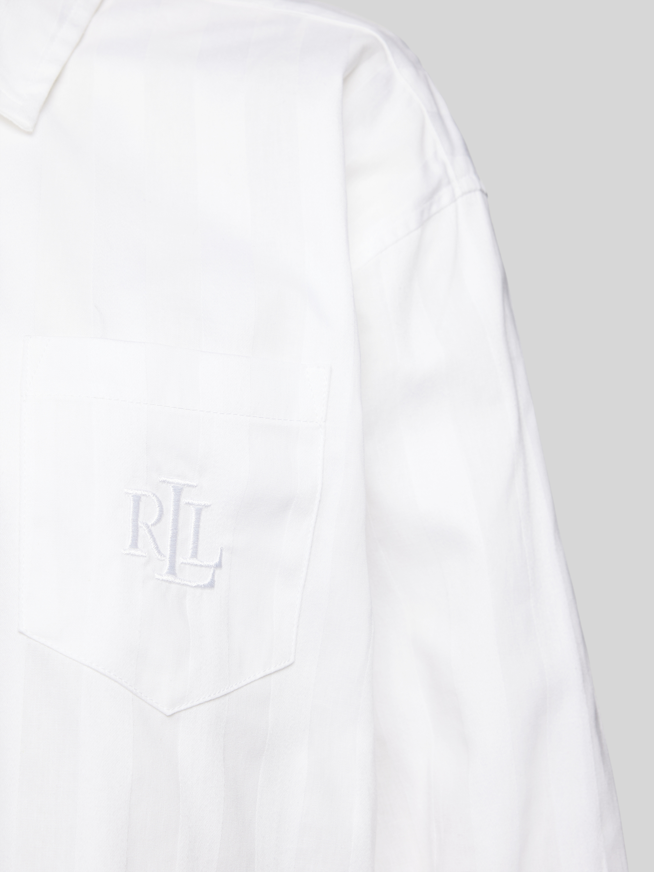 Das Damen Nachthemd von Lauren Ralph Lauren aus reiner Baumwolle sorgt für ein angenehmes Tragegefühl. Der lockere Schnitt und der Hemdblusenkragen bieten Komfort und Bewegungsfreiheit. Eine dezente Brusttasche und das Logo-Stitching verleihen dem Modell eine elegante Note.