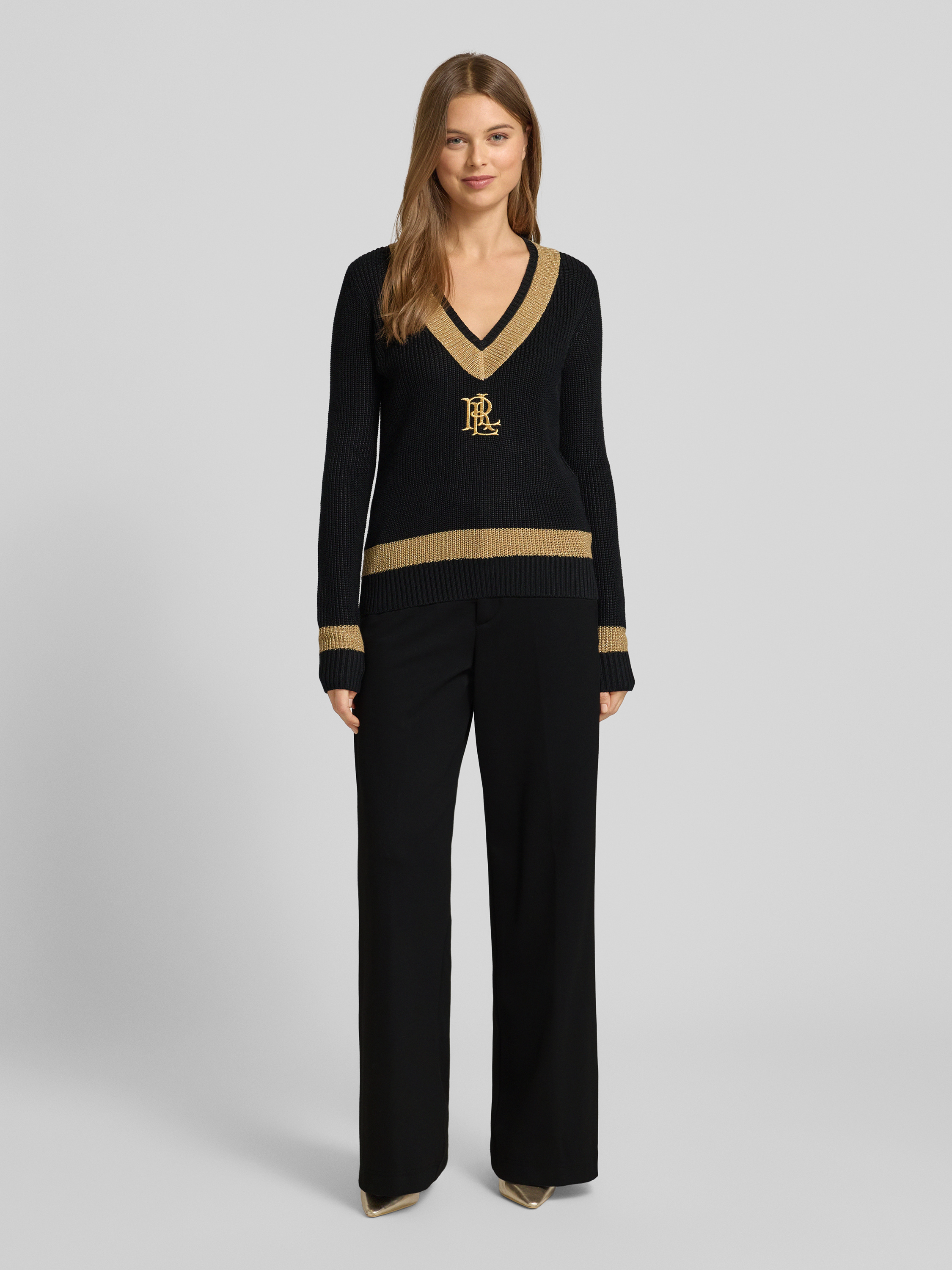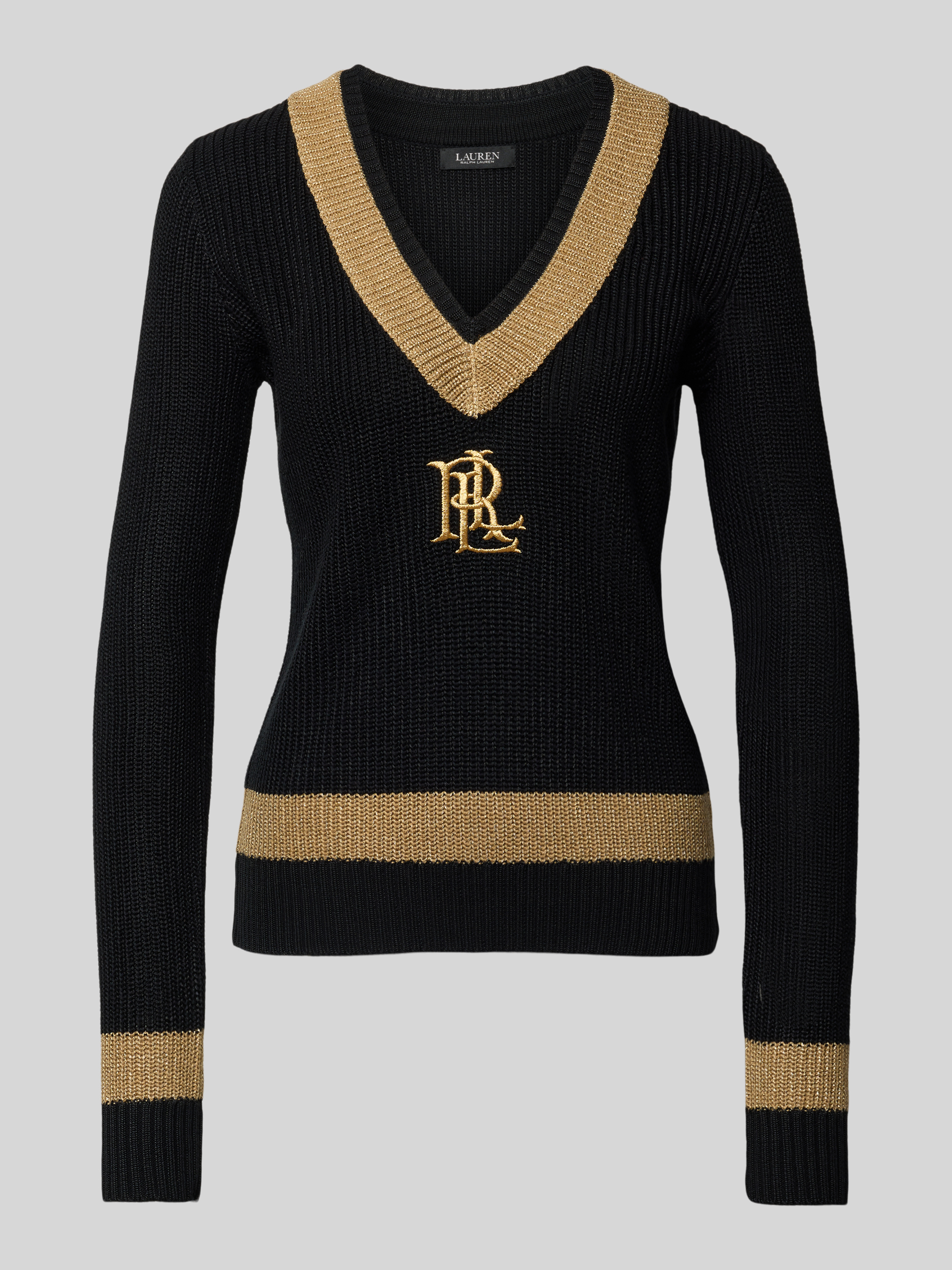 Lauren Ralph LaurenStrickpullover mit Label-Stitching Modell 'MEREN' in gold melange