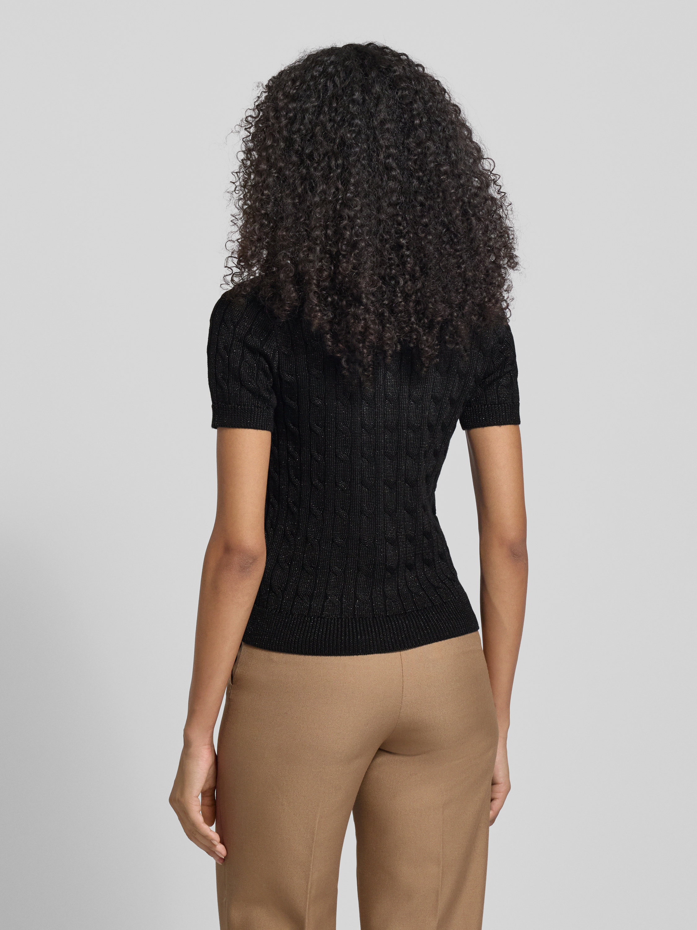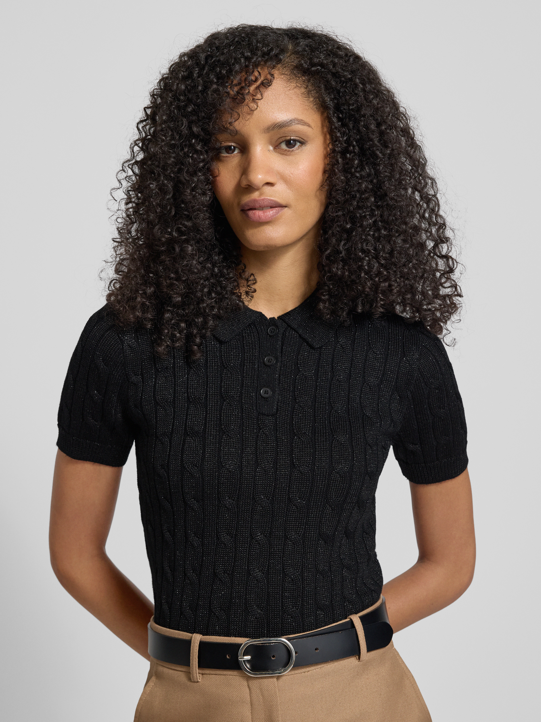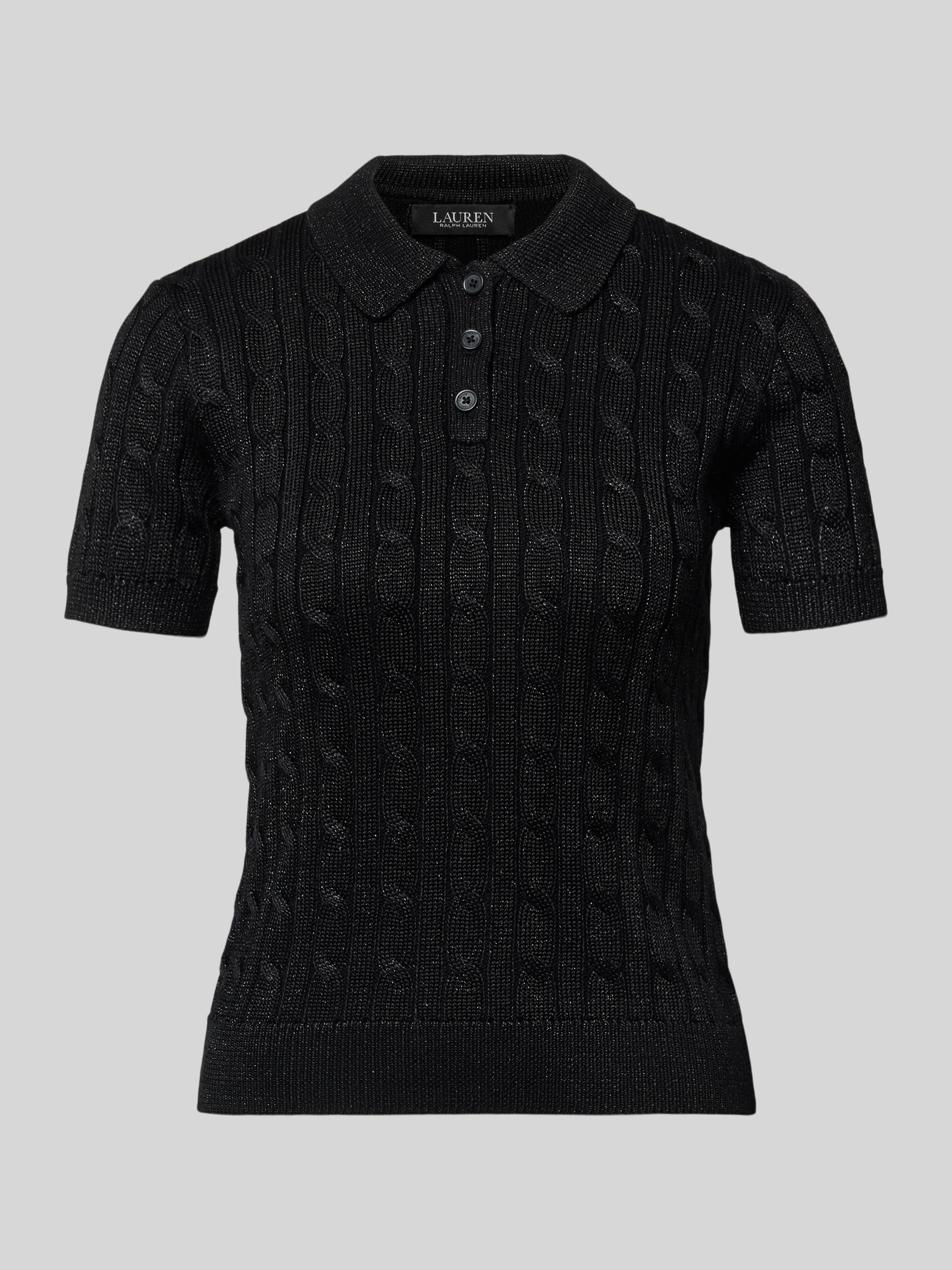 Lauren Ralph LaurenStrickshirt mit Zopfmuster und Polokragen Modell 'NATRISSA' in metallic black