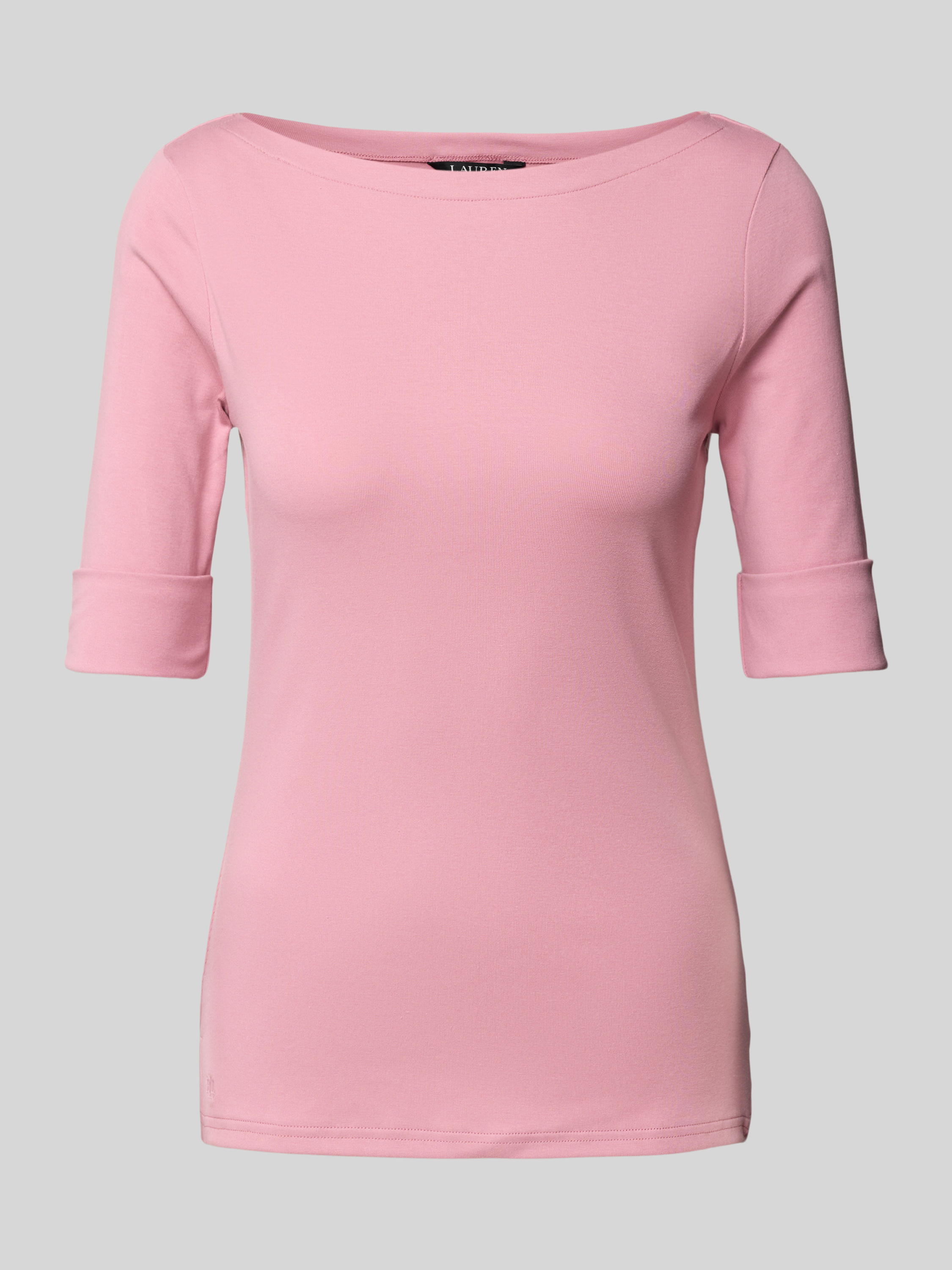 Lauren Ralph LaurenT-Shirt mit geripptem U-Boot-Ausschnitt Modell 'JUDY' in altrosa
