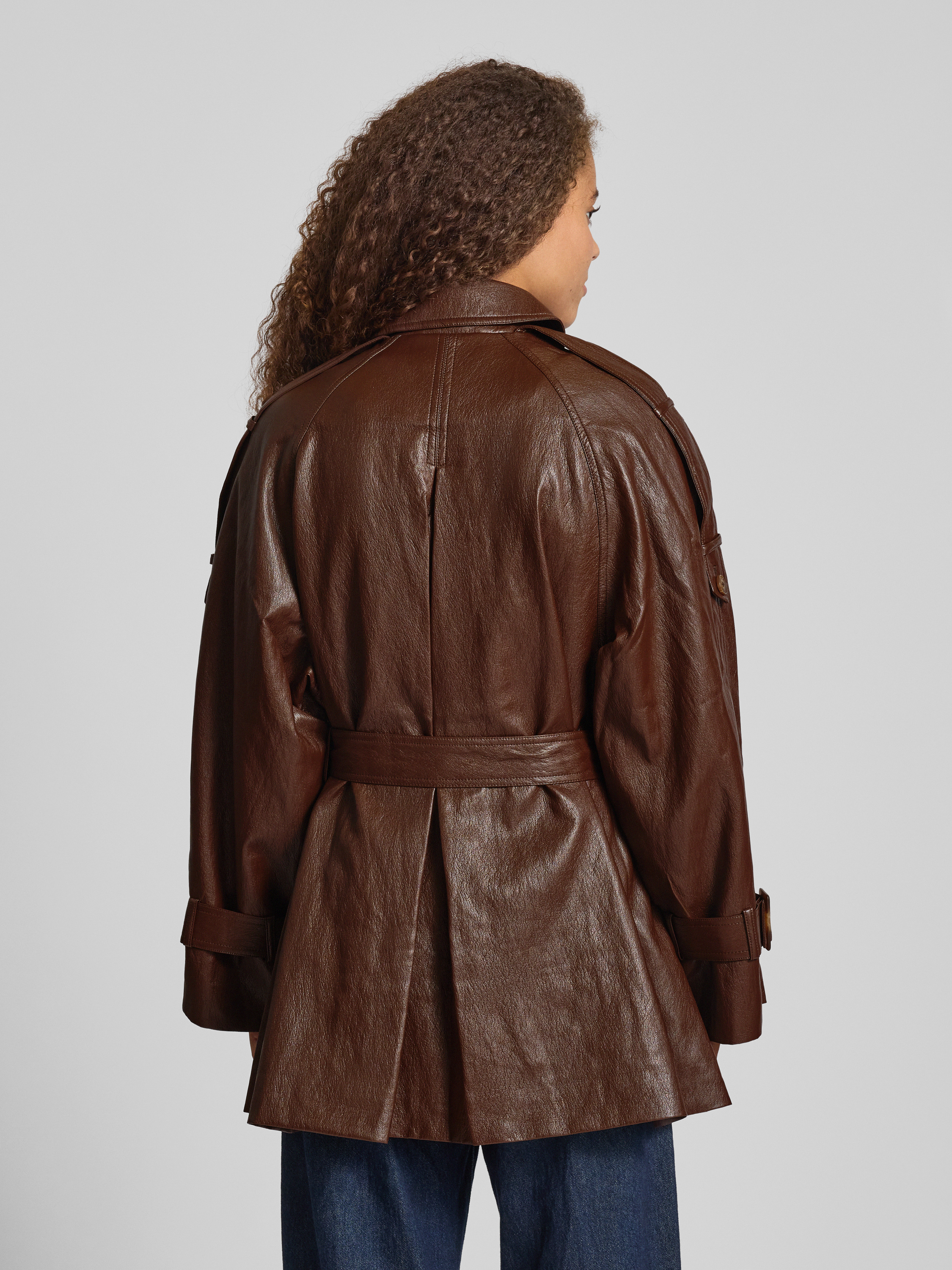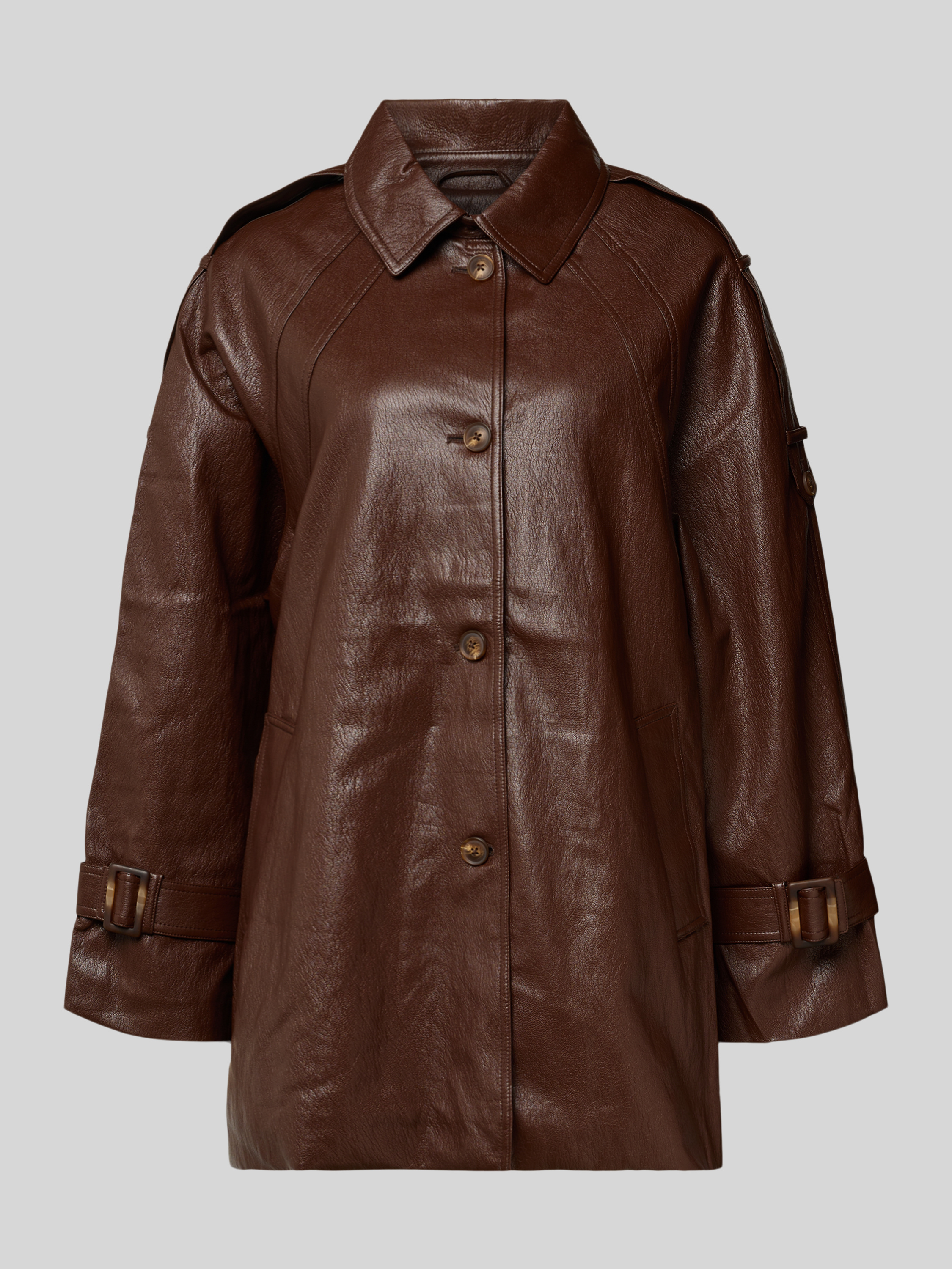 LeGer by Lena GerckeJacke in Leder-Optik mit Ärmelriegeln Modell 'Dinorah' in dunkelbraun