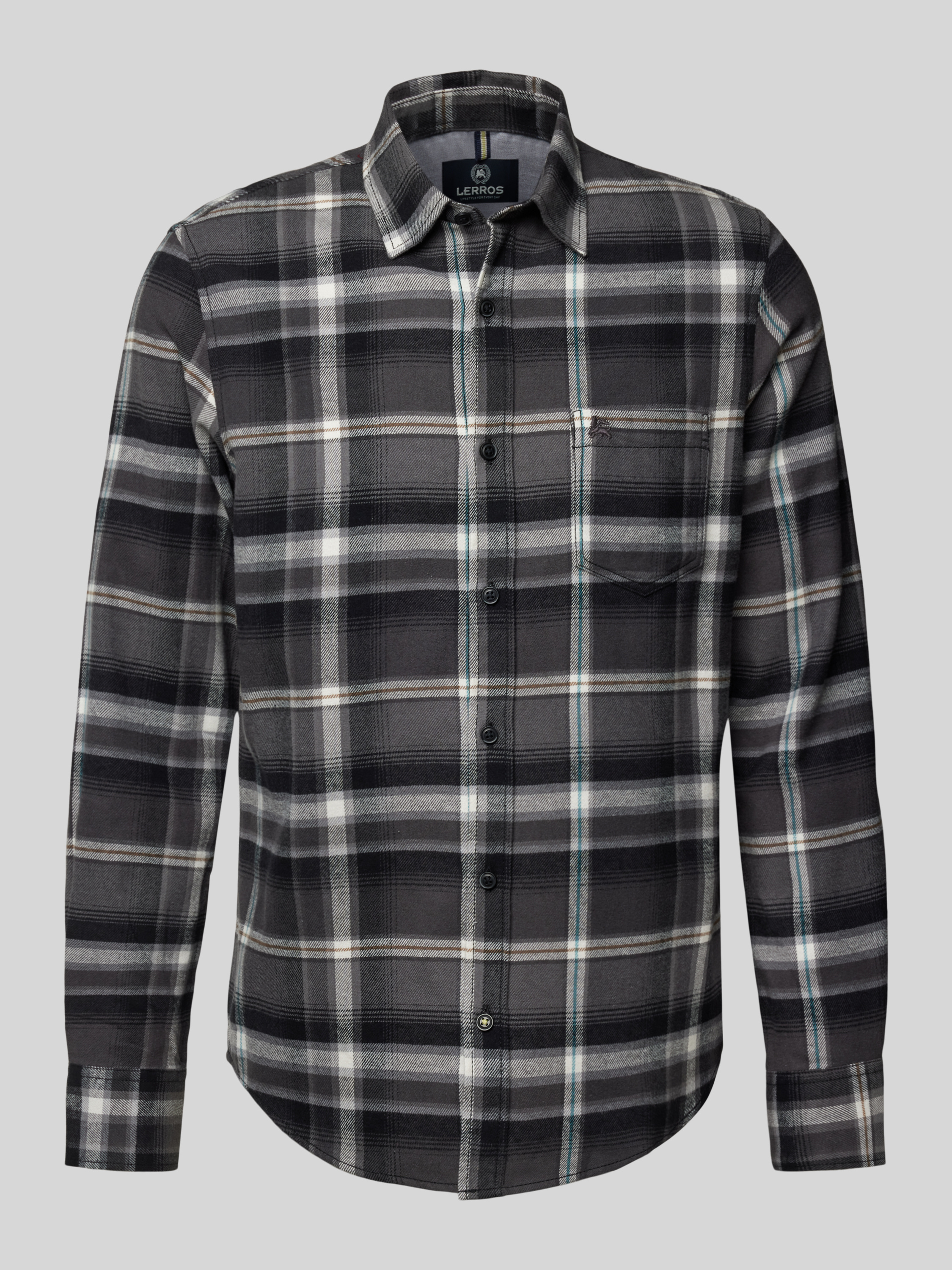 Das Herren Freizeithemd von LERROS aus reiner Baumwolle kombiniert Komfort mit Stil durch seinen Regular Fit und das langärmlige Design. Der Kentkragen und die aufgesetzte Brusttasche verleihen dem Hemd eine elegante Note. Ideal für den Alltag geeignet.