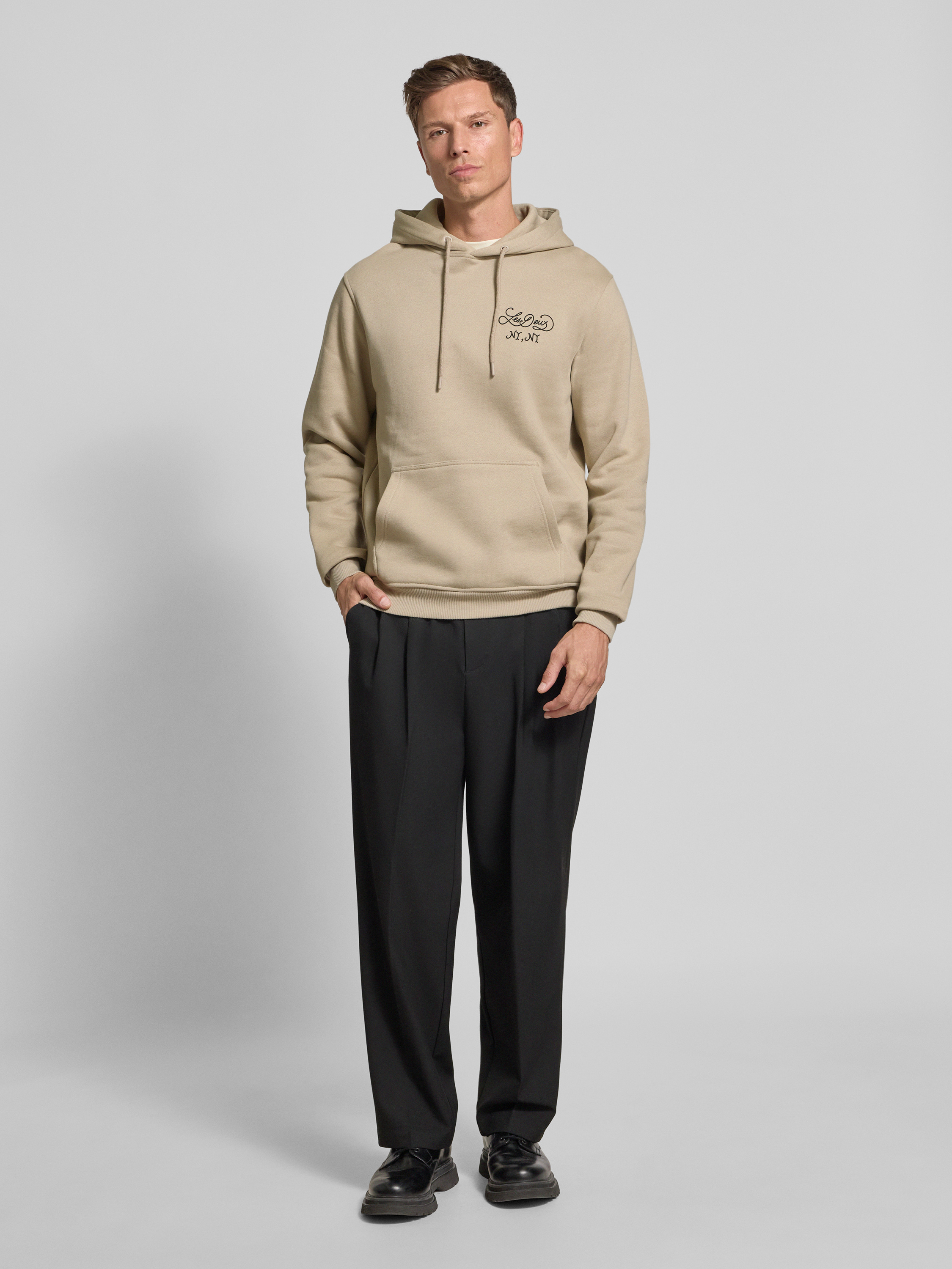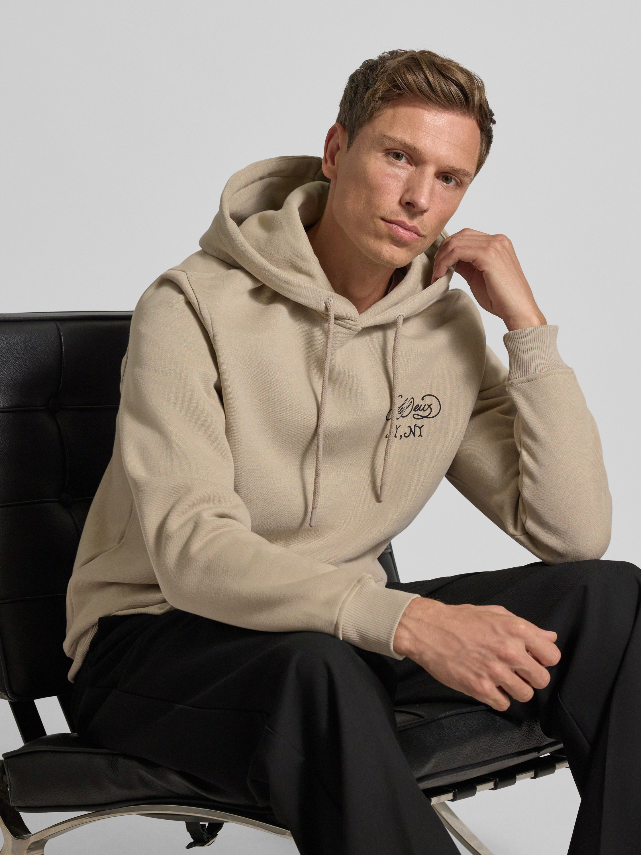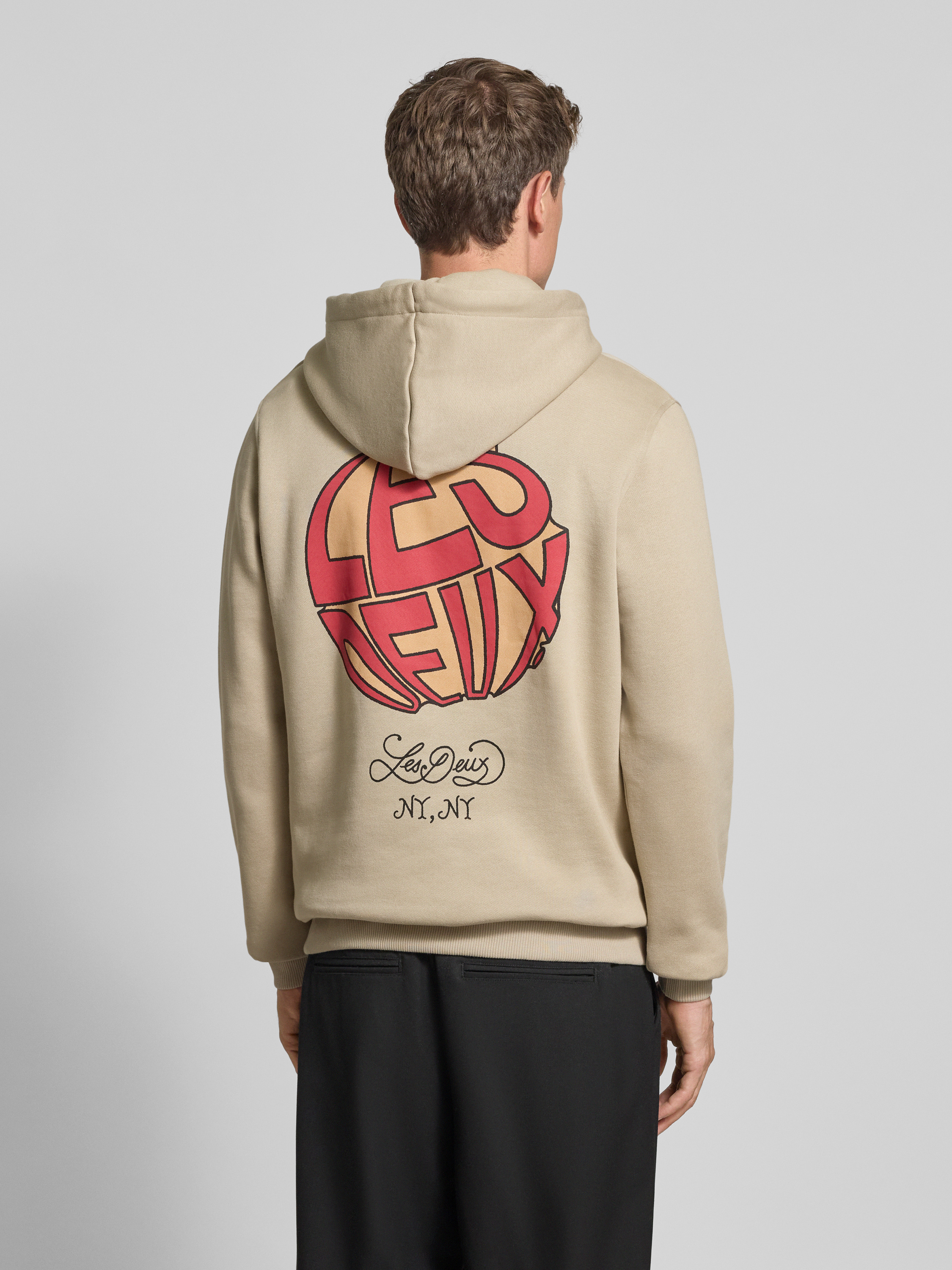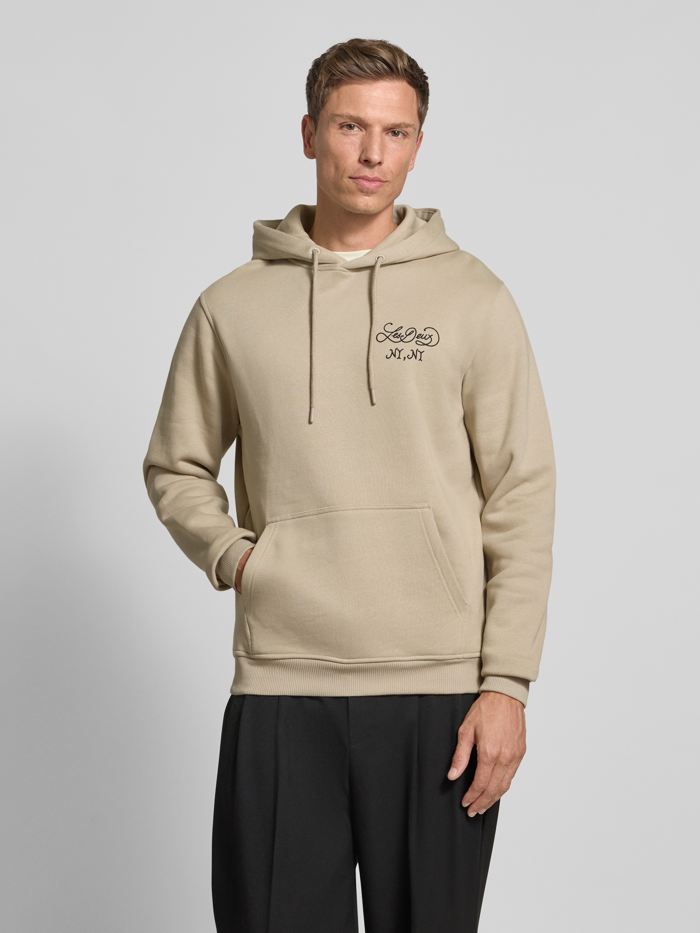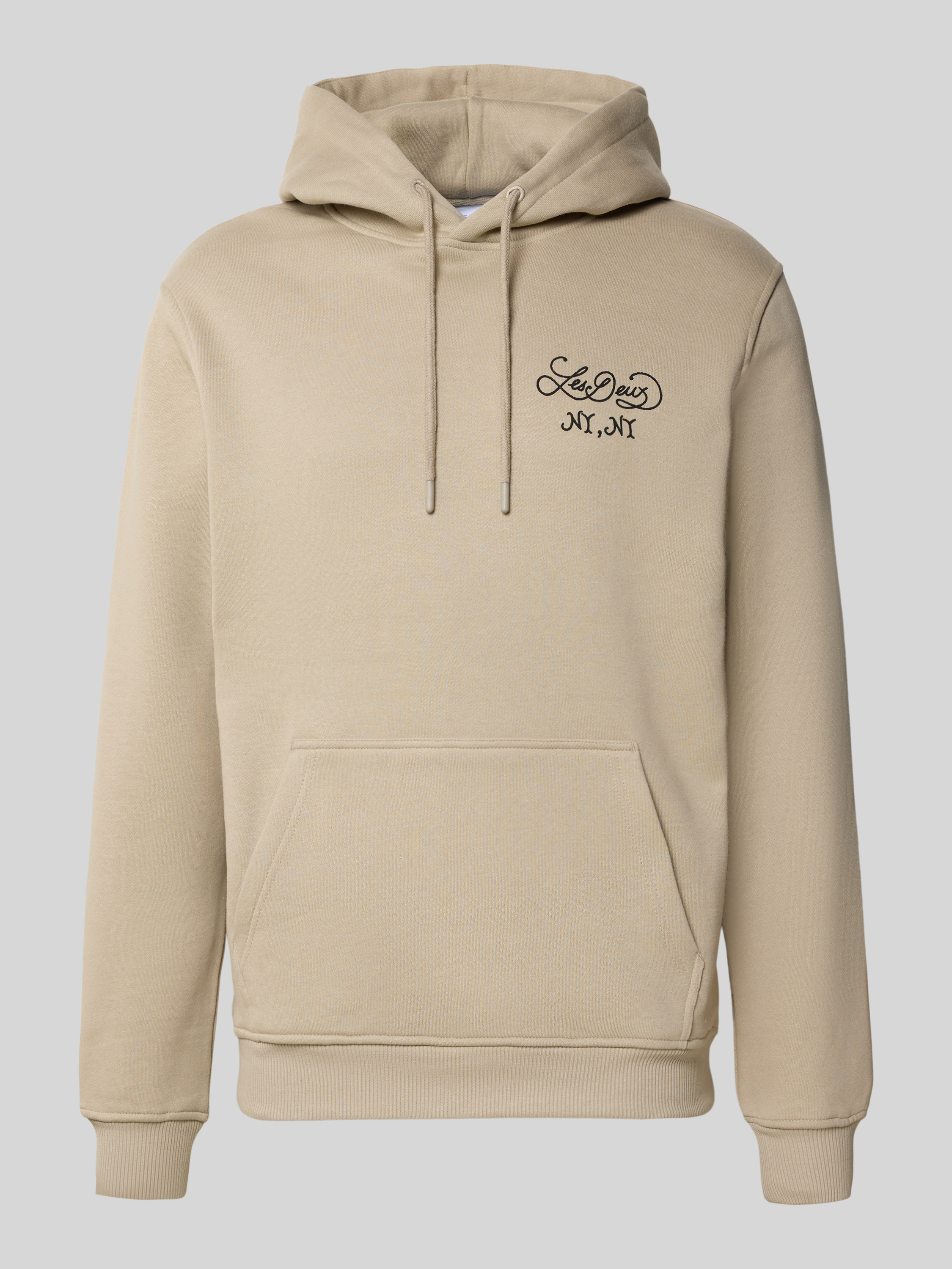 • Les Deux Hoodie mit Label-Print und Känguru-Tasche Sand