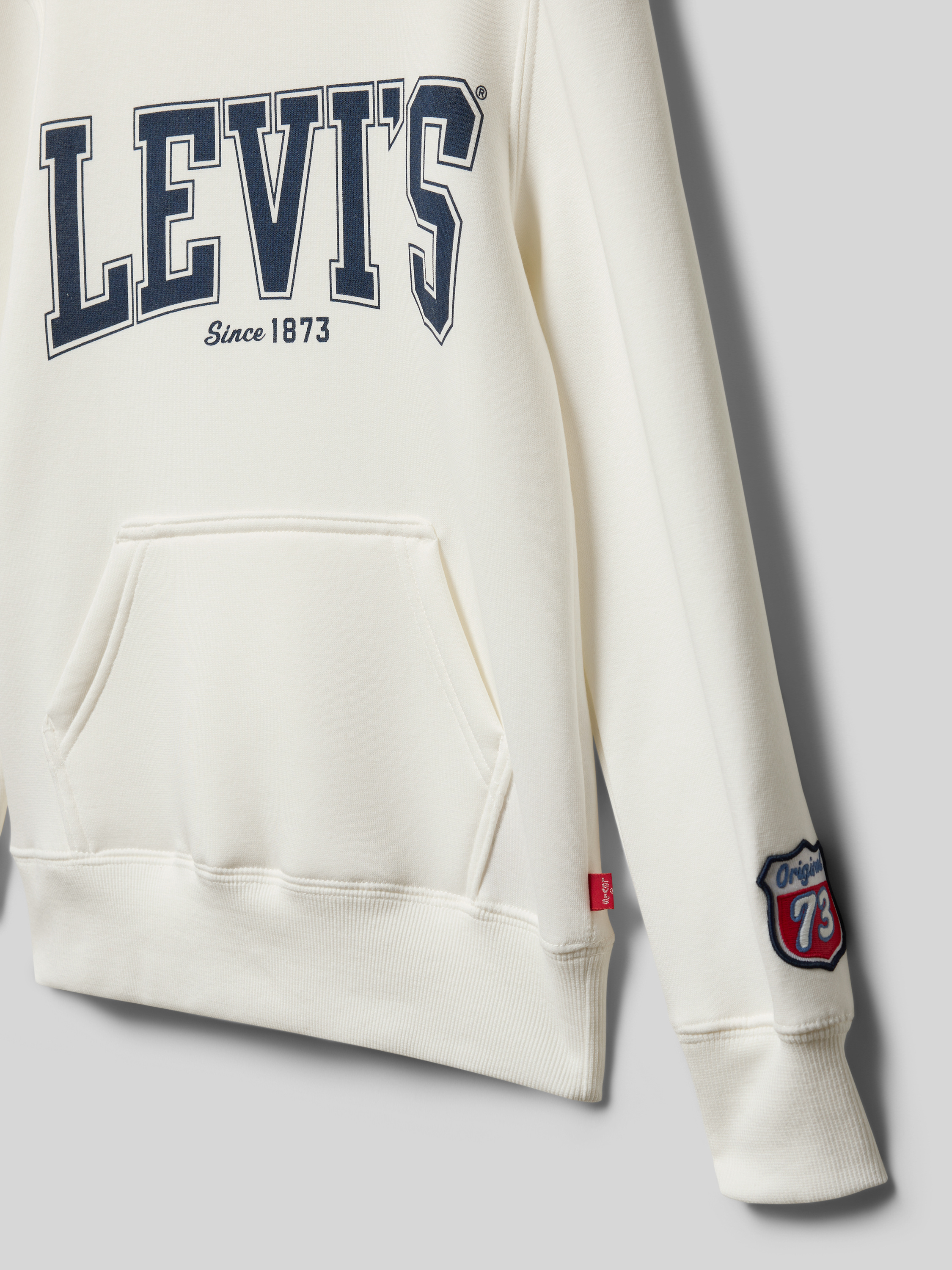 Der Hoodie mit Känguru-Tasche von Levi’s® Kids Modell 'THE GREAT HIGHWAY' kombiniert einen bequemen Regular Fit mit einem weichen Baumwoll-Mix. Durch die großzügige Tasche lassen sich Kleinigkeiten praktisch verstauen, während der Label-Print einen sportlichen Akzent setzt. So eignet sich dieses Modell für entspannte Tage.