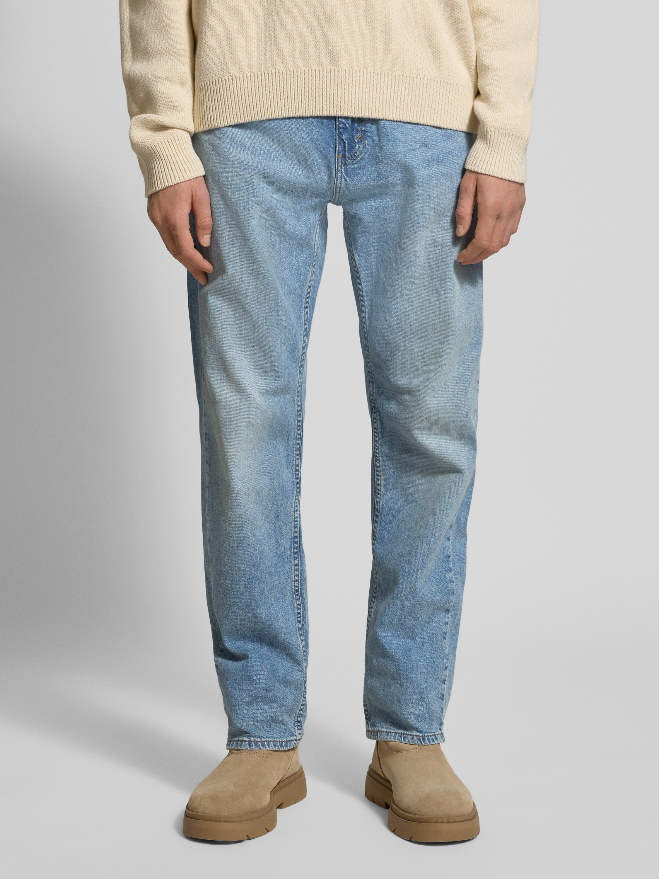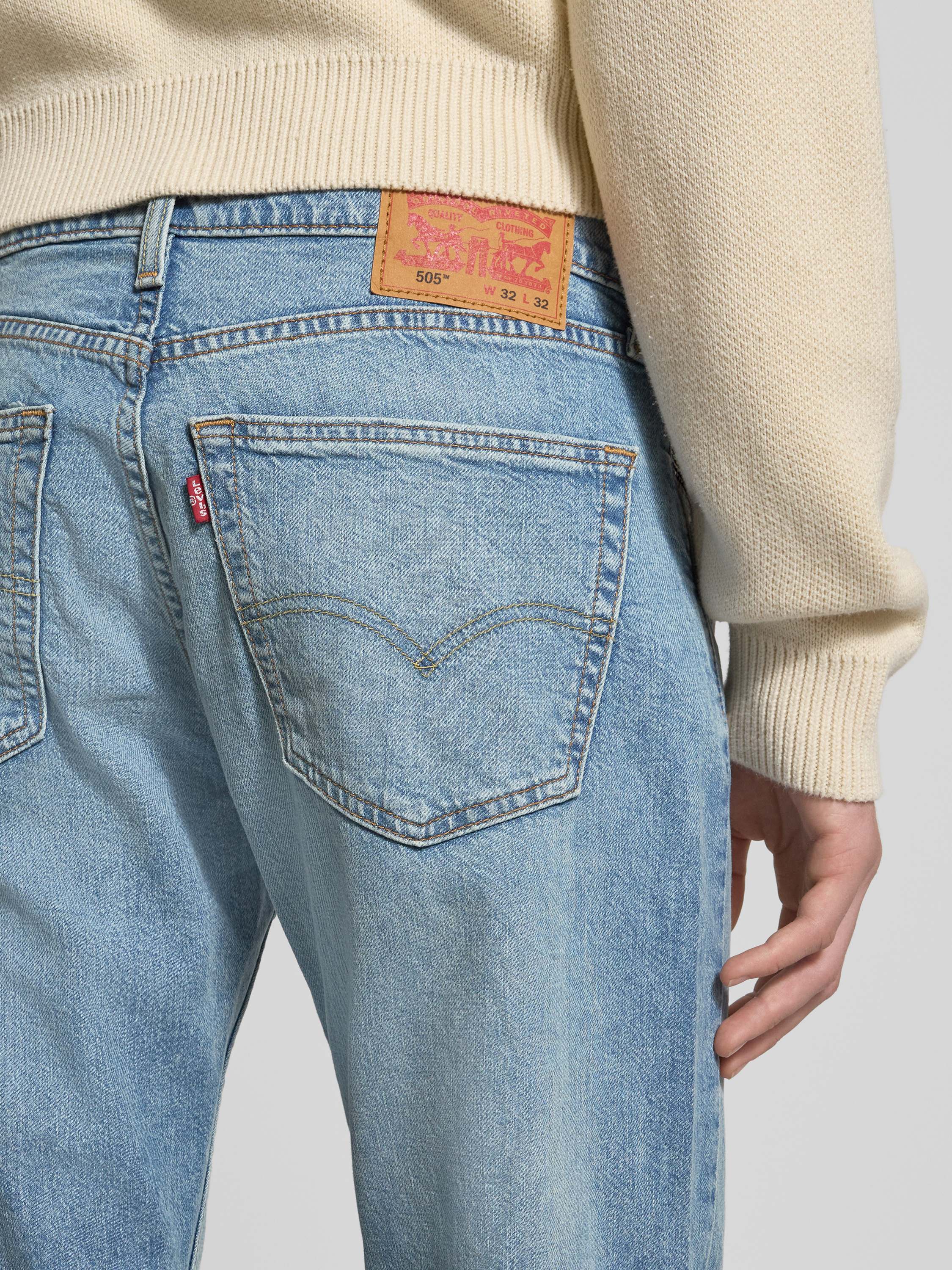 Die Herren Regular Fit Jeans im Used-Look von Levi's® Modell '505®' besteht aus einem Baumwoll-Elasthan-Mix, der angenehm auf der Haut liegt und Bewegungsfreiheit im Alltag ermöglicht. Durch ihren geraden Schnitt lässt sich dieses Modell vielseitig kombinieren, während die Eingrifftaschen praktische Details bieten. Im authentischen Used-Look gehalten, eignet sich die Jeans für einen entspannten, unkomplizierten Stil.