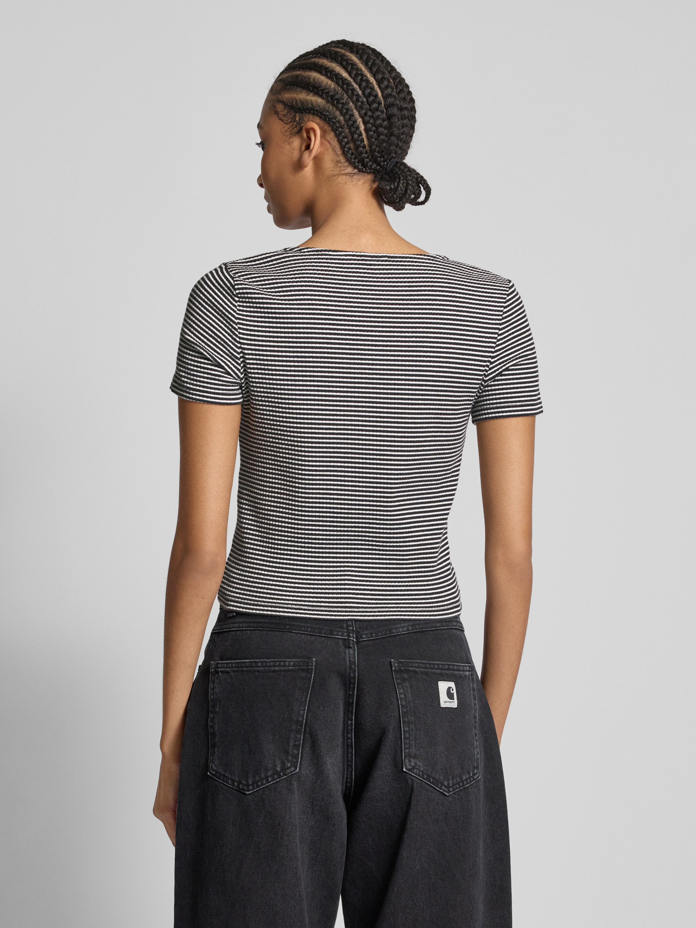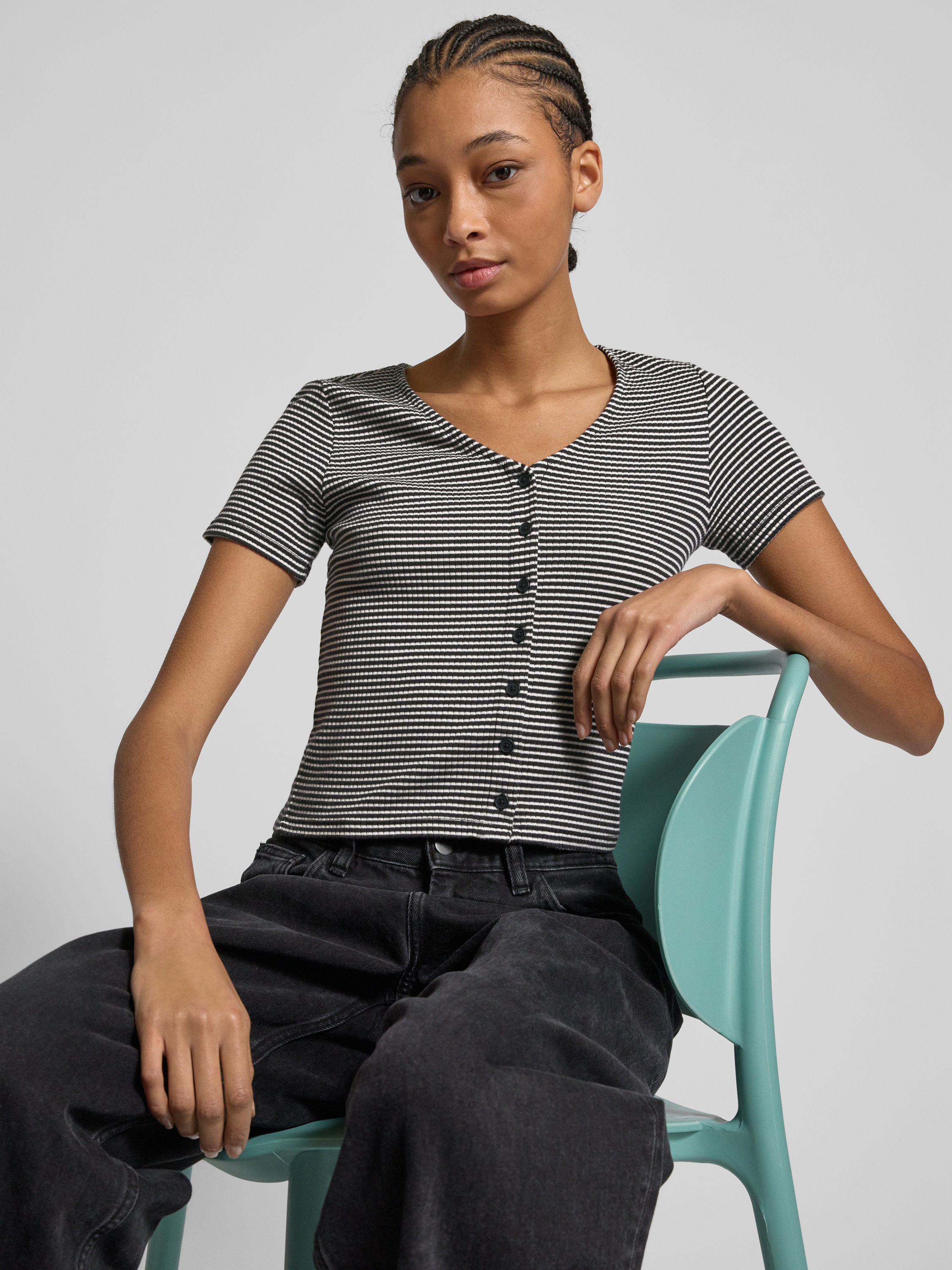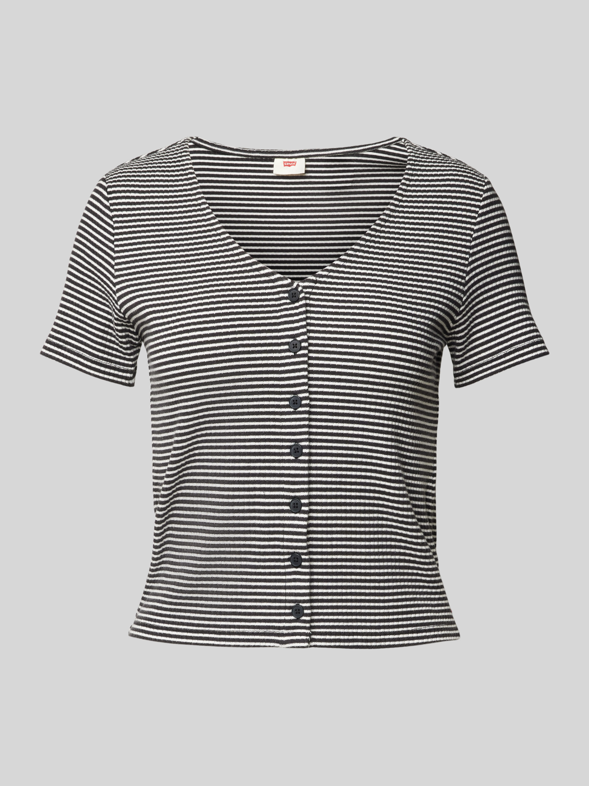 Das Levi's® T-Shirt 'MUSE' kombiniert einen geraden Schnitt mit einem V-Ausschnitt, der sich angenehm anfühlt und Bewegungsfreiheit ermöglicht. Der Baumwoll-Elasthan-Mix sorgt für eine optimale Passform und ein komfortables Tragegefühl. Die durchgehende Knopfleiste verleiht dem Design einen dezenten Akzent.
