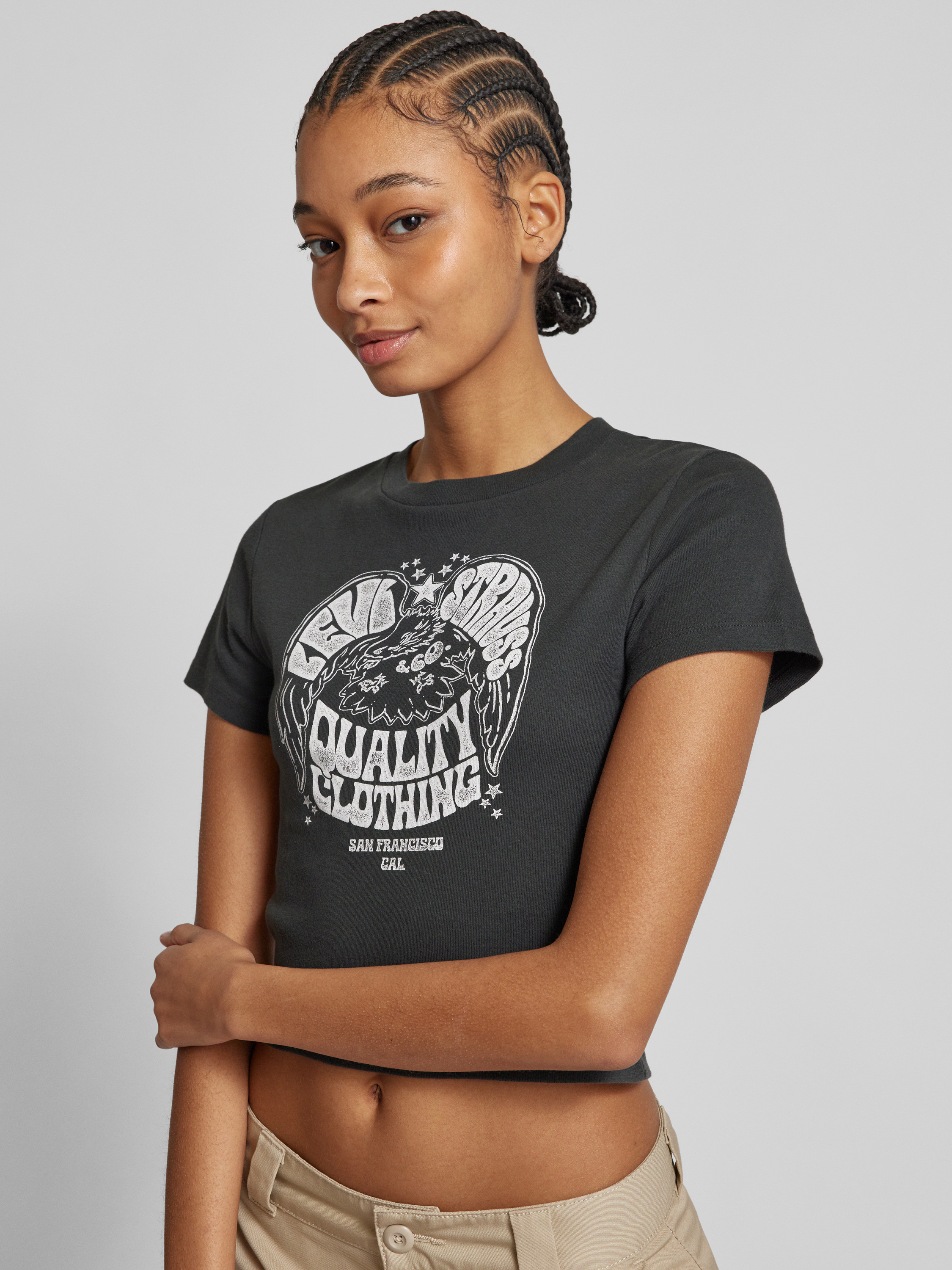 Das Damen T-Shirt von Levi's® aus reiner Baumwolle kombiniert Komfort und Stil. Durch den Regular Fit und den gerippten Rundhalsausschnitt entsteht ein lässiger Look, der sich vielseitig einsetzen lässt. Der dezente Label-Print verleiht dem T-Shirt eine moderne Note.