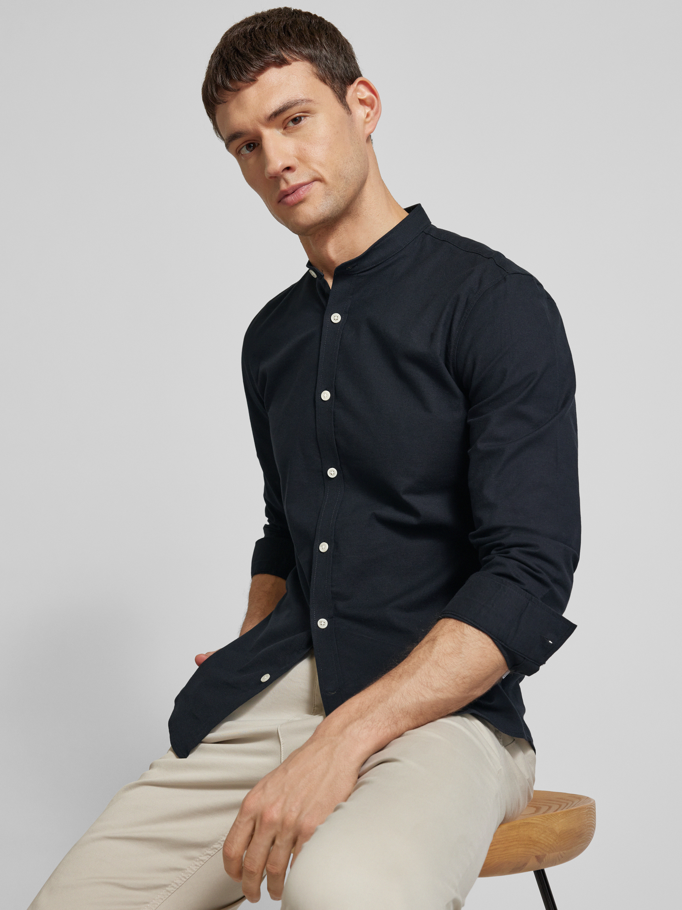 LindberghSlim Fit Freizeithemd mit Stehkragen in black
