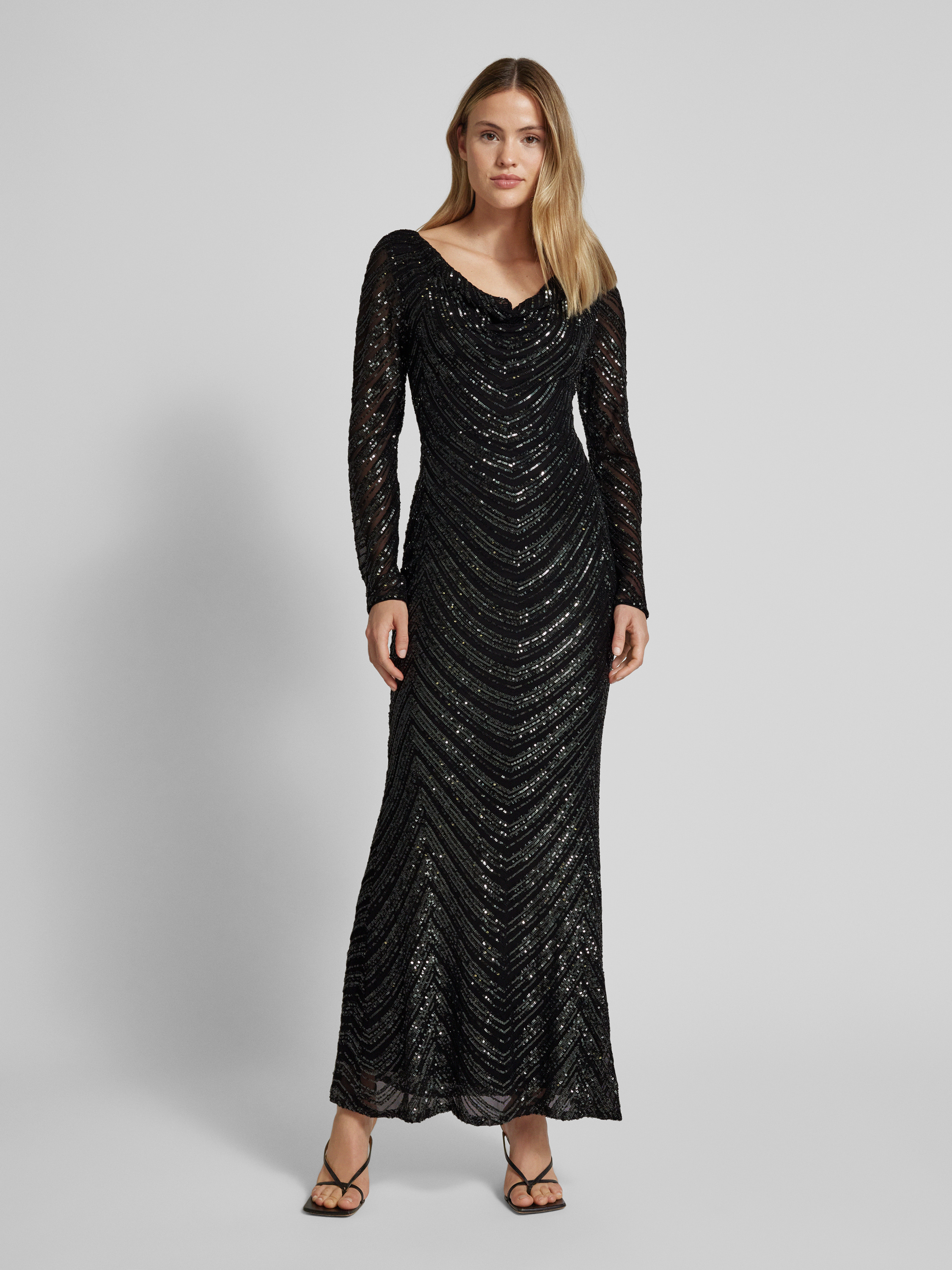 LipsyCocktailkleid mit Wasserfall-Ausschnitt und Pailletten in black