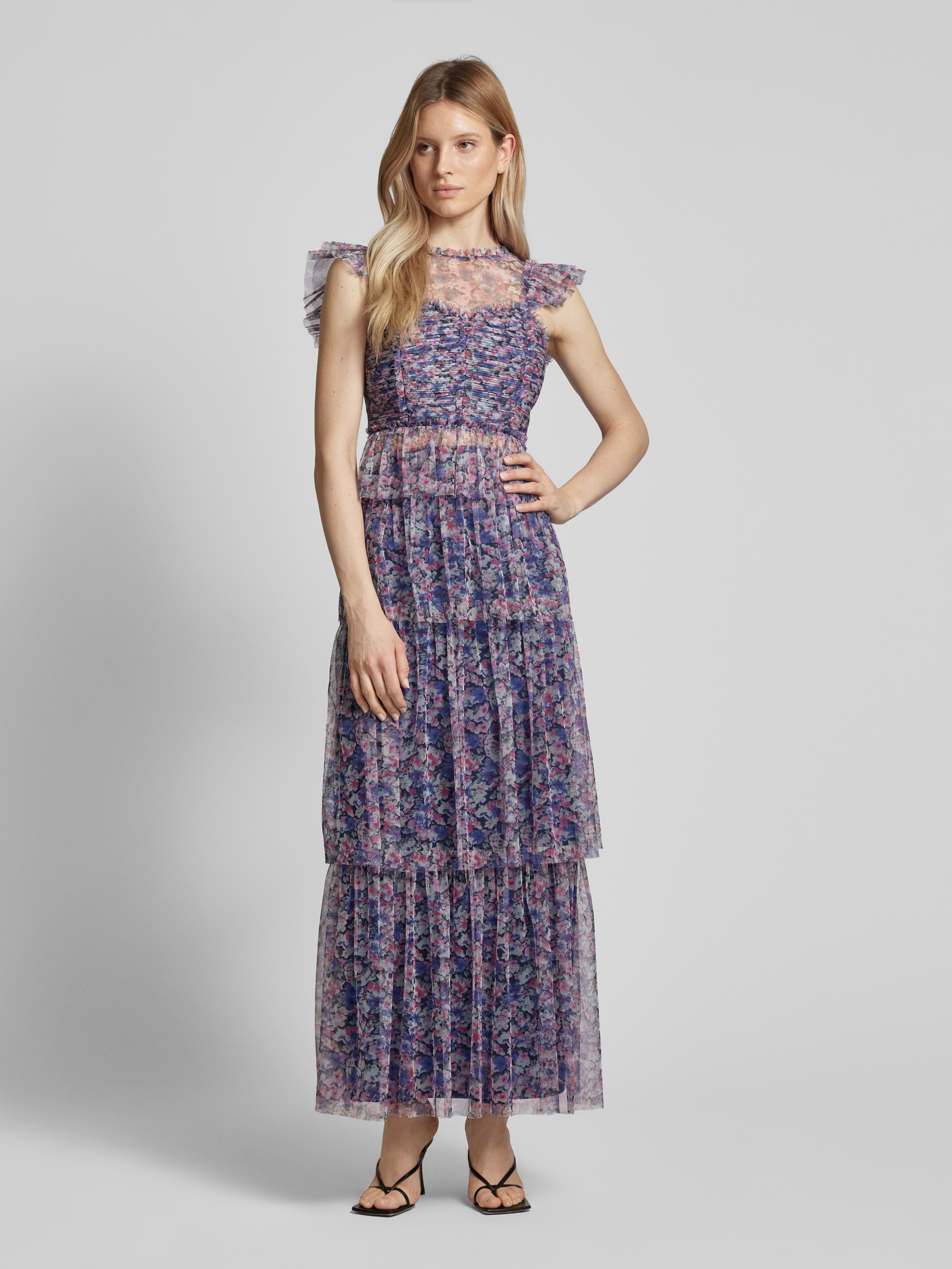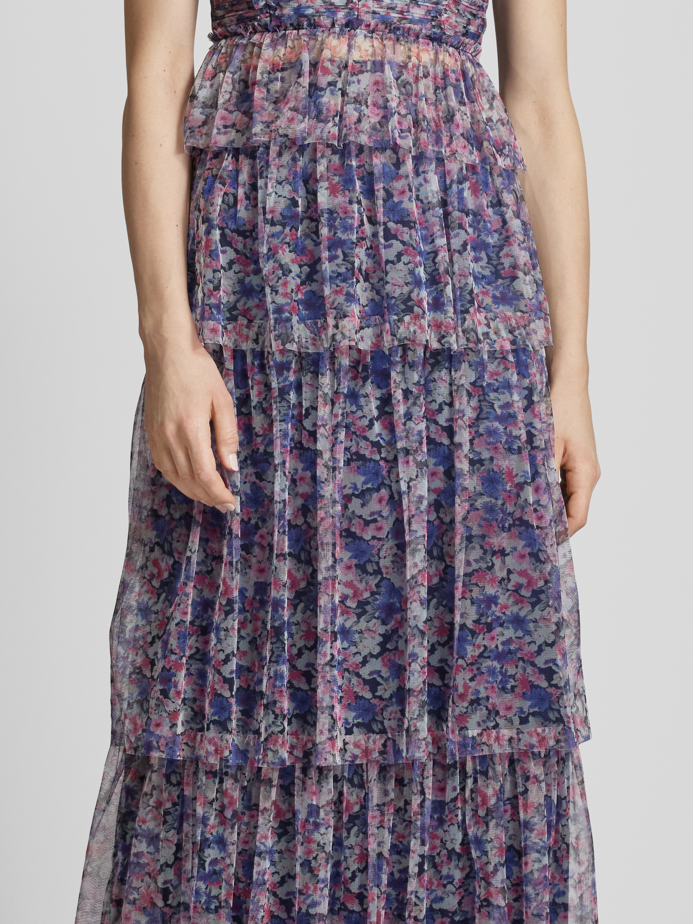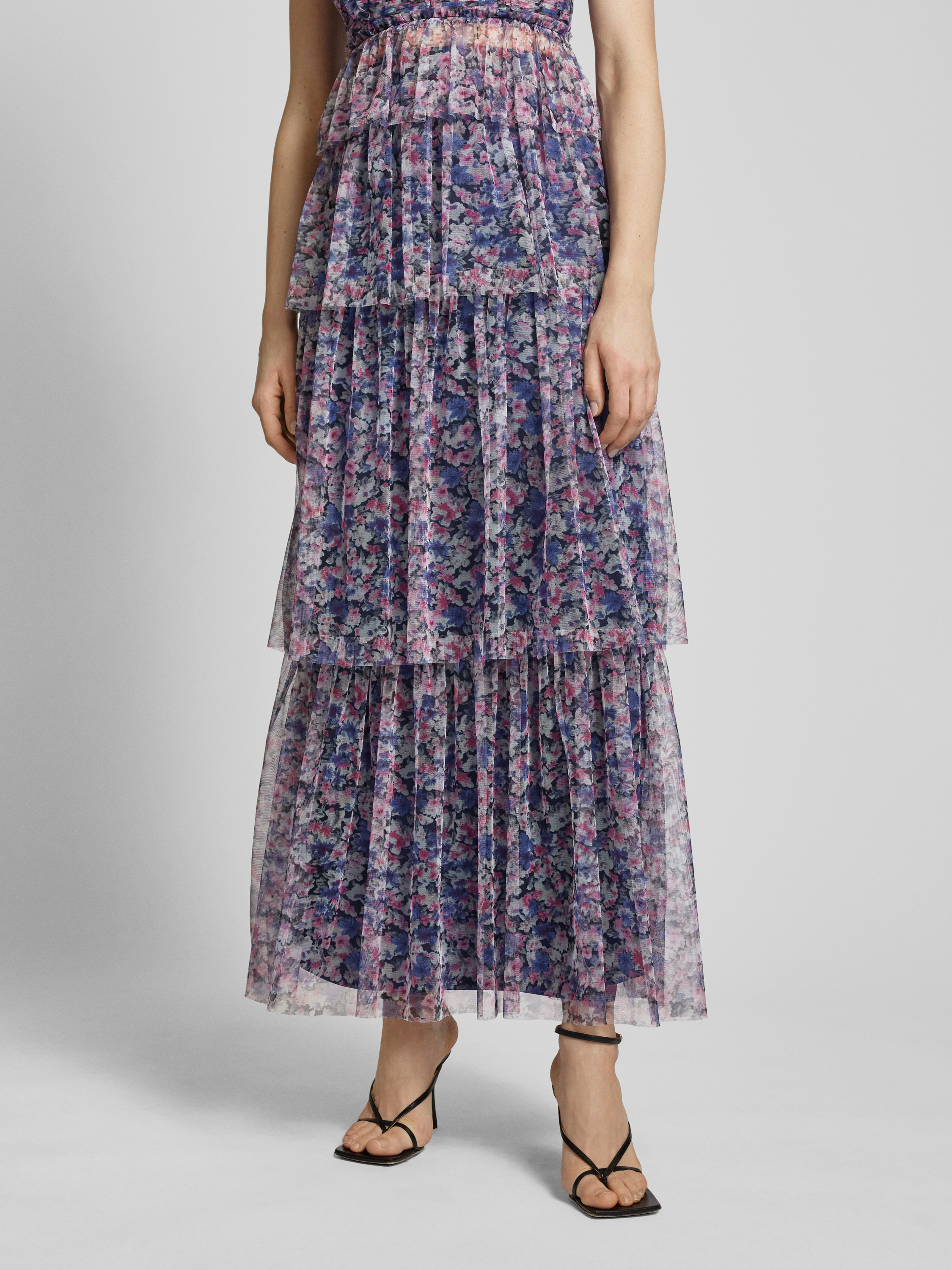 Der Maxirock von Lipsy beeindruckt durch ein florales Allover-Muster, das im Stufen-Look sanft fließt und eine gerade Passform bietet. Aus luftigem Tüll gefertigt, sorgt er für eine angenehme Bewegungsfreiheit. Seine Länge verleiht dem Outfit eine elegante Note, die vielseitig kombinierbar ist.