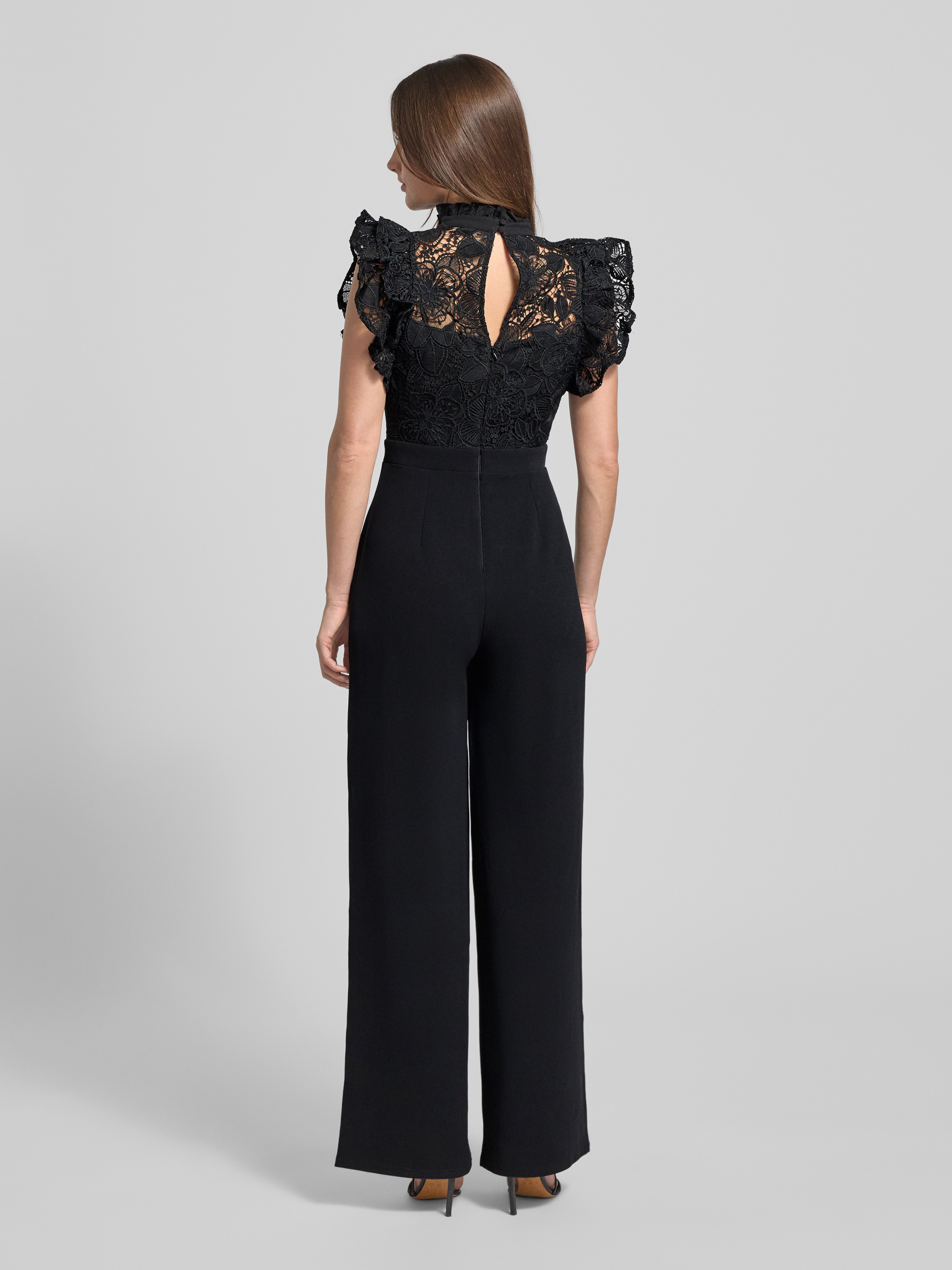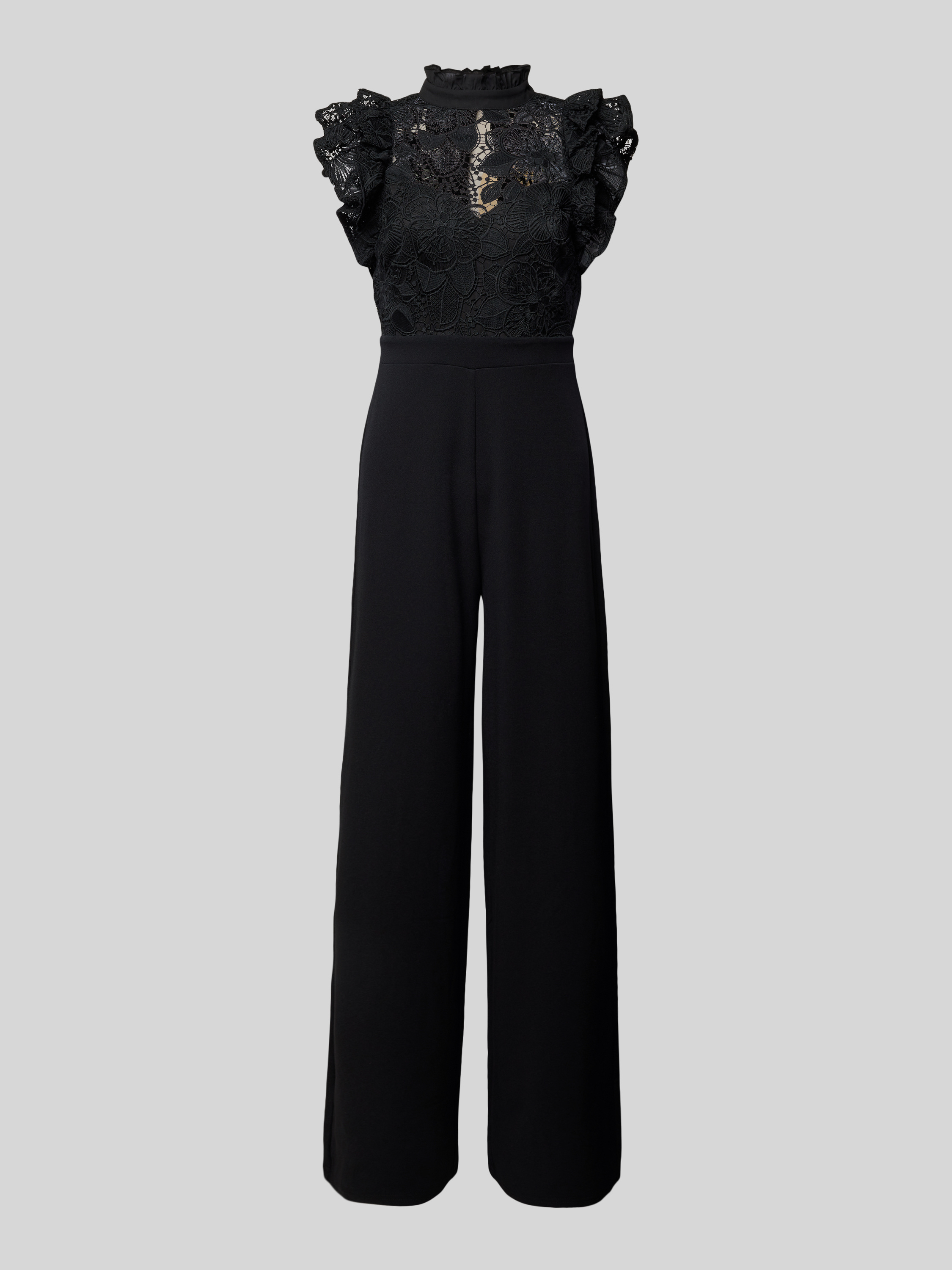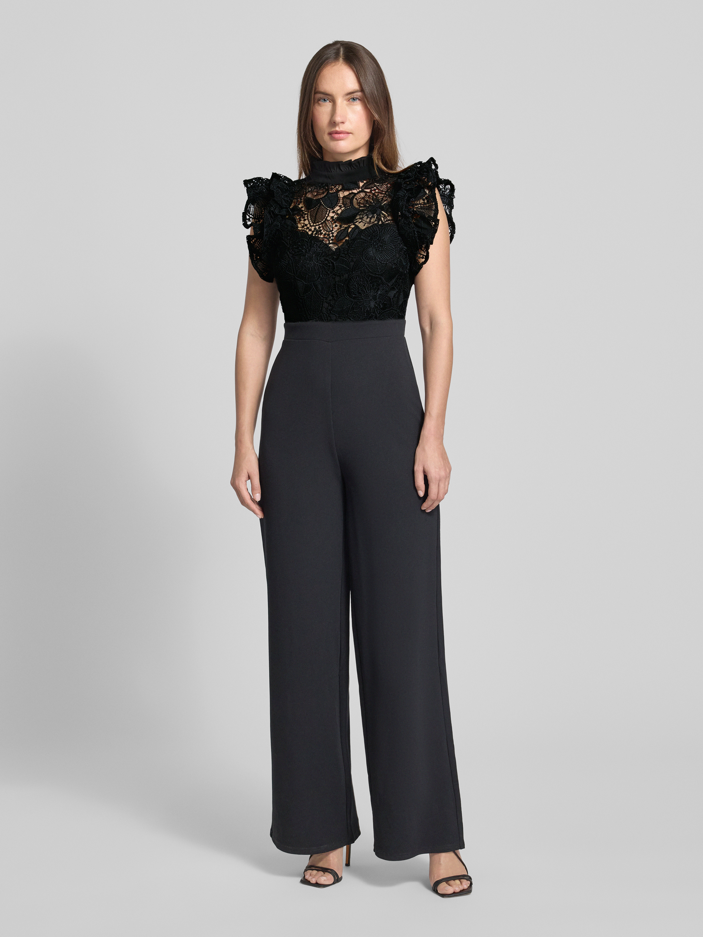 Der Damen Jumpsuit von Lipsy fällt durch einen Regular-Fit und einen floralen Spitzenbesatz auf, der für einen femininen Akzent sorgt. Ein elastischer Material-Mix legt sich angenehm an, während der Stehkragen mit Rüschenbesatz und die Kappärmel in Rüschen-Optik das Design lebendig ergänzen. Durch das semitransparente Element und den Rückenausschnitt erhält man einen modernen, leichten Look, der vielseitig kombinierbar bleibt.