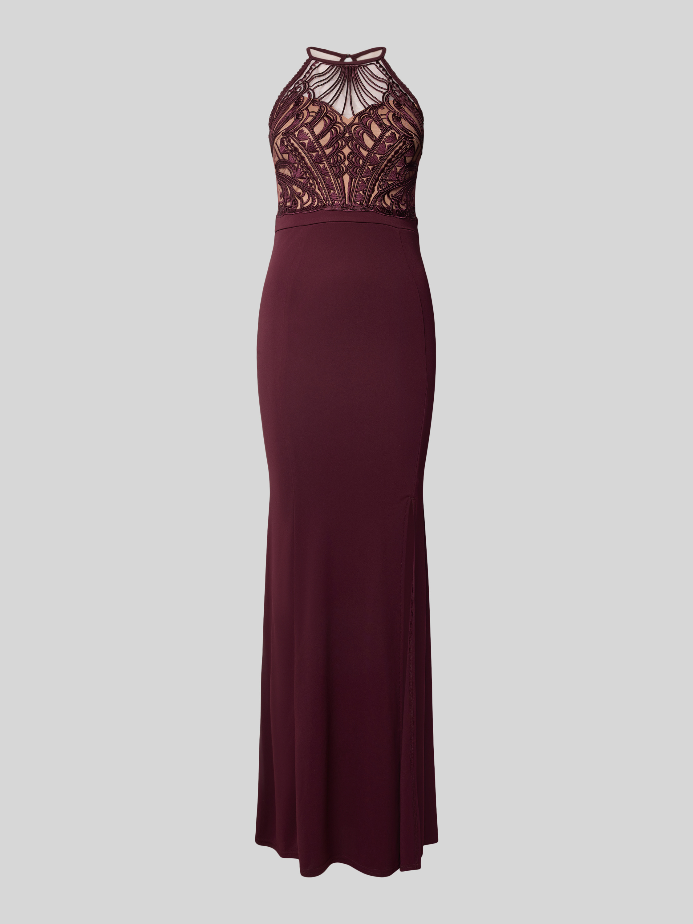 Das Damen Abendkleid von Lipsy fällt durch den schmalen Slim-Fit-Schnitt angenehm figurbetont aus und eignet sich ideal für festliche Anlässe. Florales Stitching und ein Neckholder-Ausschnitt verleihen dem Modell einen besonderen Akzent, während das semitransparente Design dezent moderne Akzente setzt. Durch den Gehschlitz bleibt Bewegungsfreiheit gewahrt, sodass man sich bequem durch den Abend bewegen kann.