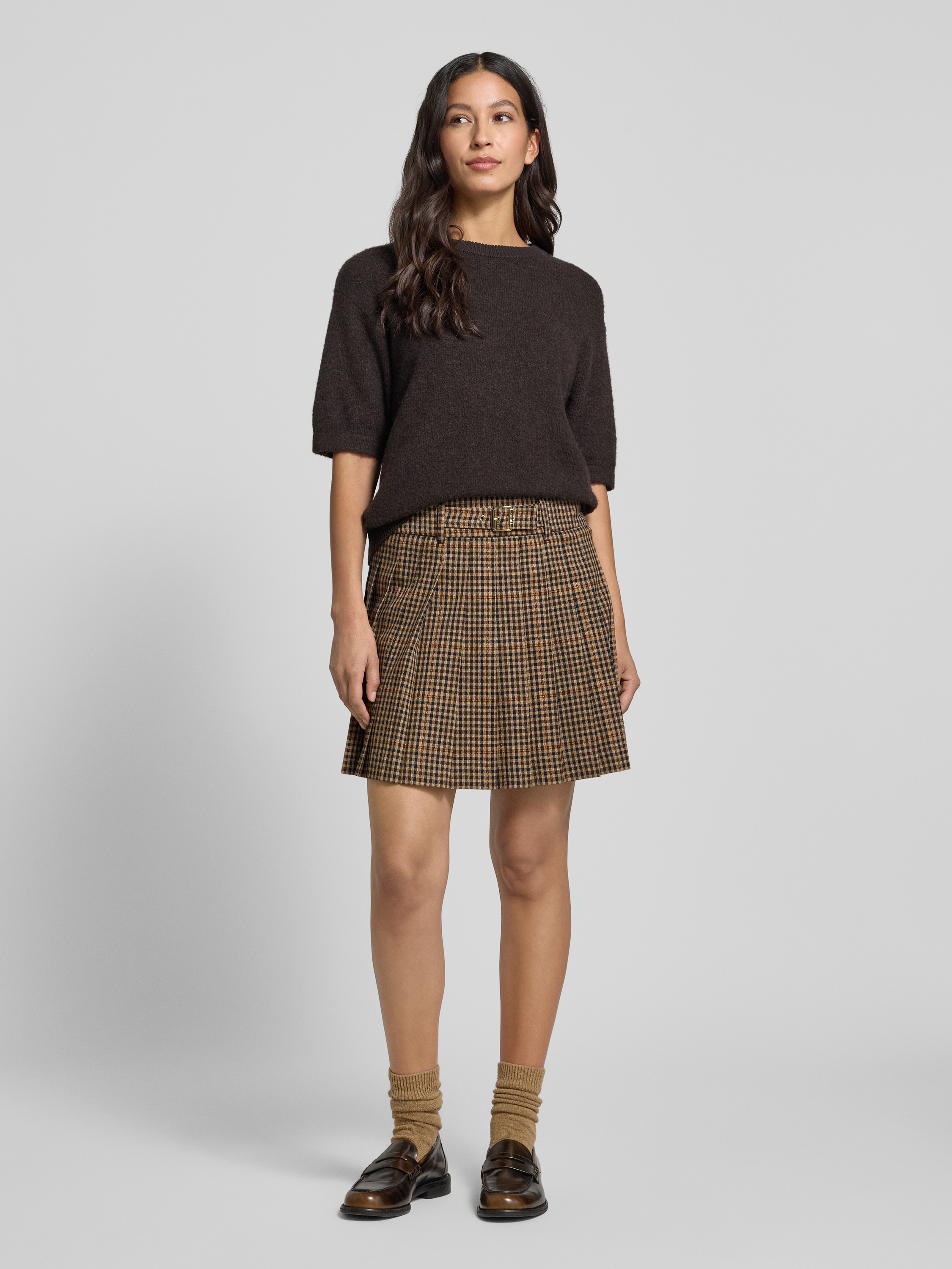 Der Damen Minirock von Liu Jo White zeigt sich im geraden Schnitt und sorgt durch den Material-Mix mit Viskose-Anteil für ein angenehmes Tragegefühl. Die Dornschließe am Bund setzt einen dezenten Akzent und unterstützt den sicheren Halt. So lässt sich der Look vielseitig in den Alltag einbinden.