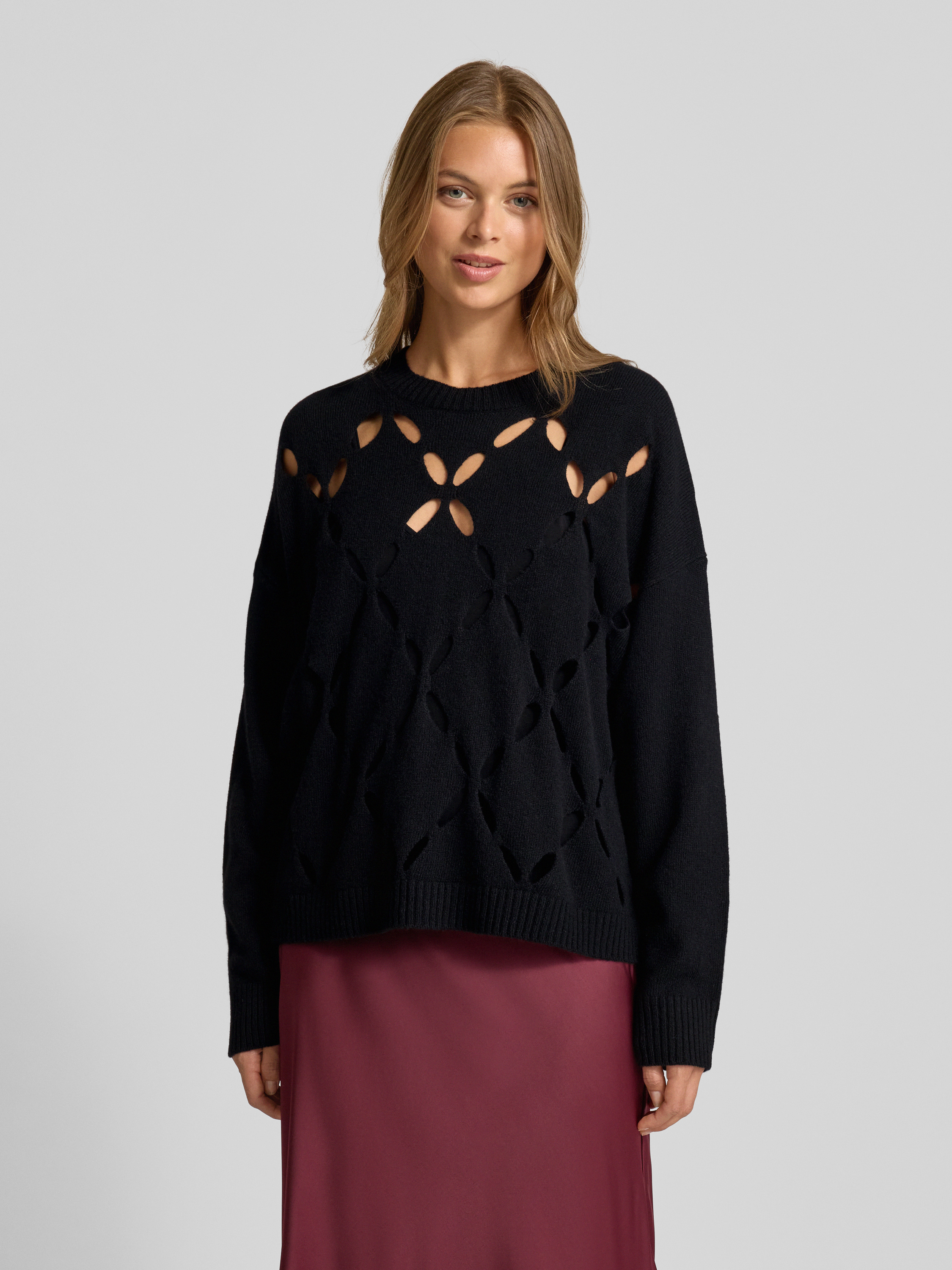 Der Damenpullover von Liu Jo White aus reiner Lanawolle fällt durch seinen lockeren Oversized-Schnitt angenehm auf und sorgt für ein entspanntes Tragegefühl. Das feine Lochmuster verleiht dem Pullover eine luftige Struktur, während der klassische Rundhalsausschnitt vielseitige Kombinationsmöglichkeiten eröffnet. So eignet sich der Oversized Wollpullover aus reiner Lanawolle für unterschiedlichste Anlässe.
