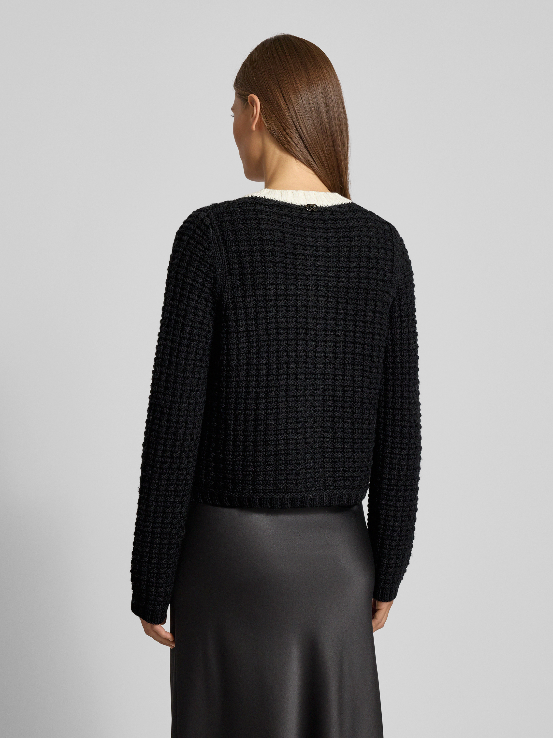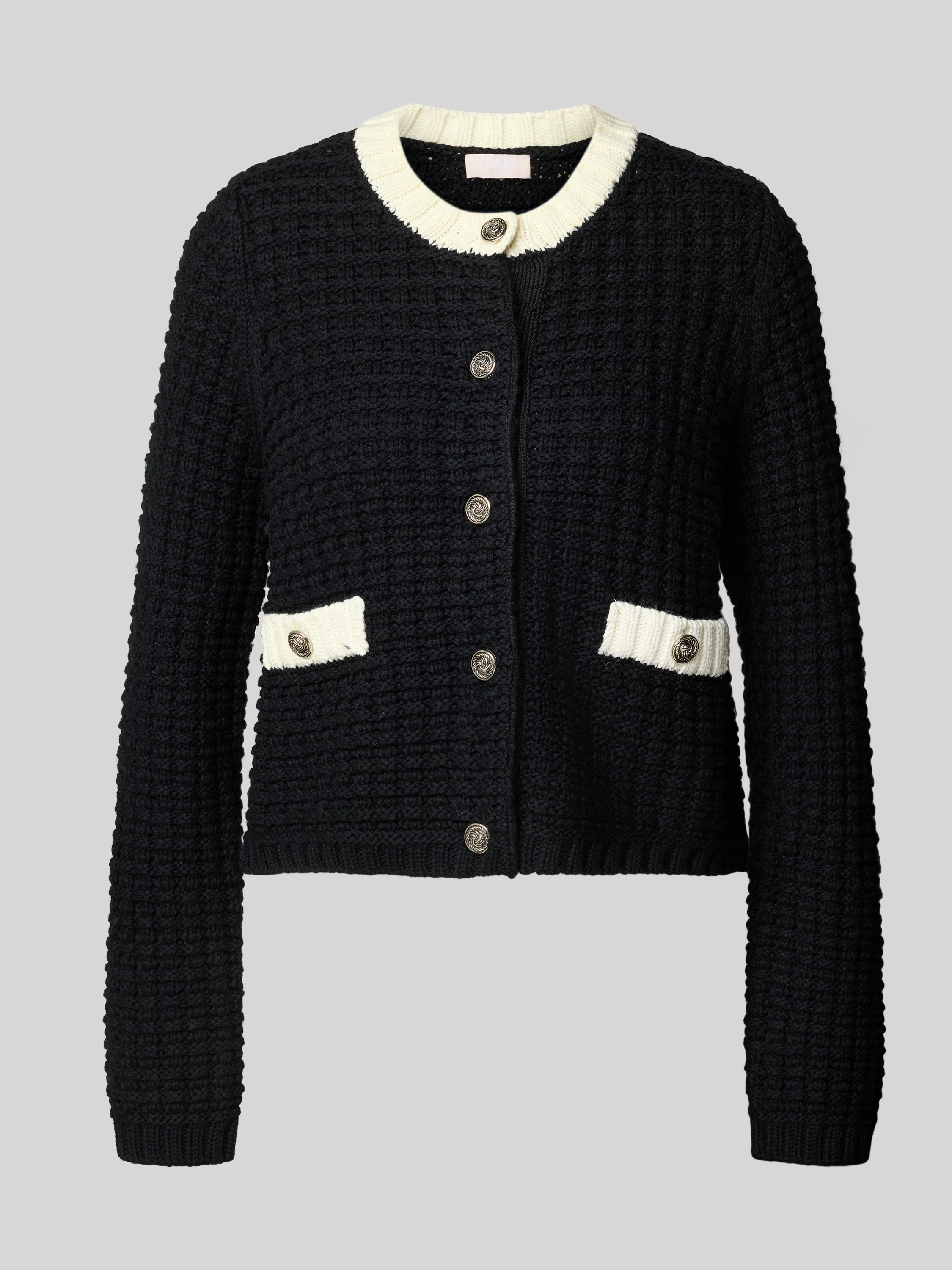 Die Damen-Strickjacke von Liu Jo White legt sich angenehm an die Figur und betont durch ihren Grobstrick einen modernen Look. Durch den Material-Mix mit Baumwolle erhält das Modell eine angenehme Haptik, die den Alltag unkompliziert begleitet. Der Rundhalsausschnitt sowie die gerippten Abschlüsse sorgen für klassische Details.