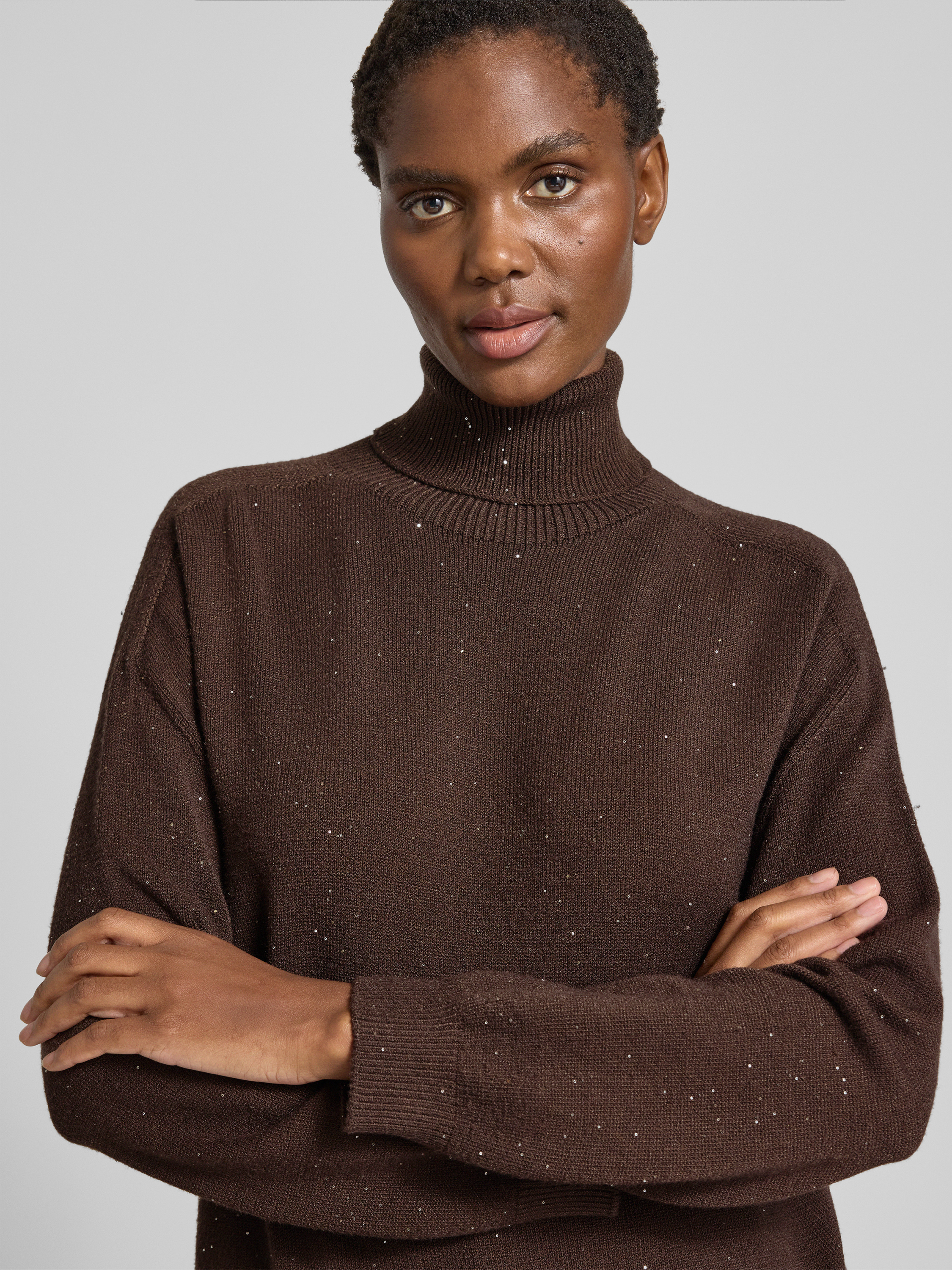 Der Damen Strickpullover von Liu Jo White zeichnet sich durch einen angenehm geraden Schnitt aus, der für Bewegungsfreiheit sorgt. Durch den Rollkragen entsteht eine dezente Wärme am Hals, während der Viskose-Mix für ein weiches Tragegefühl sorgt. Dezente Details, wie gerippte Abschlüsse, runden das Gesamtbild ab.
