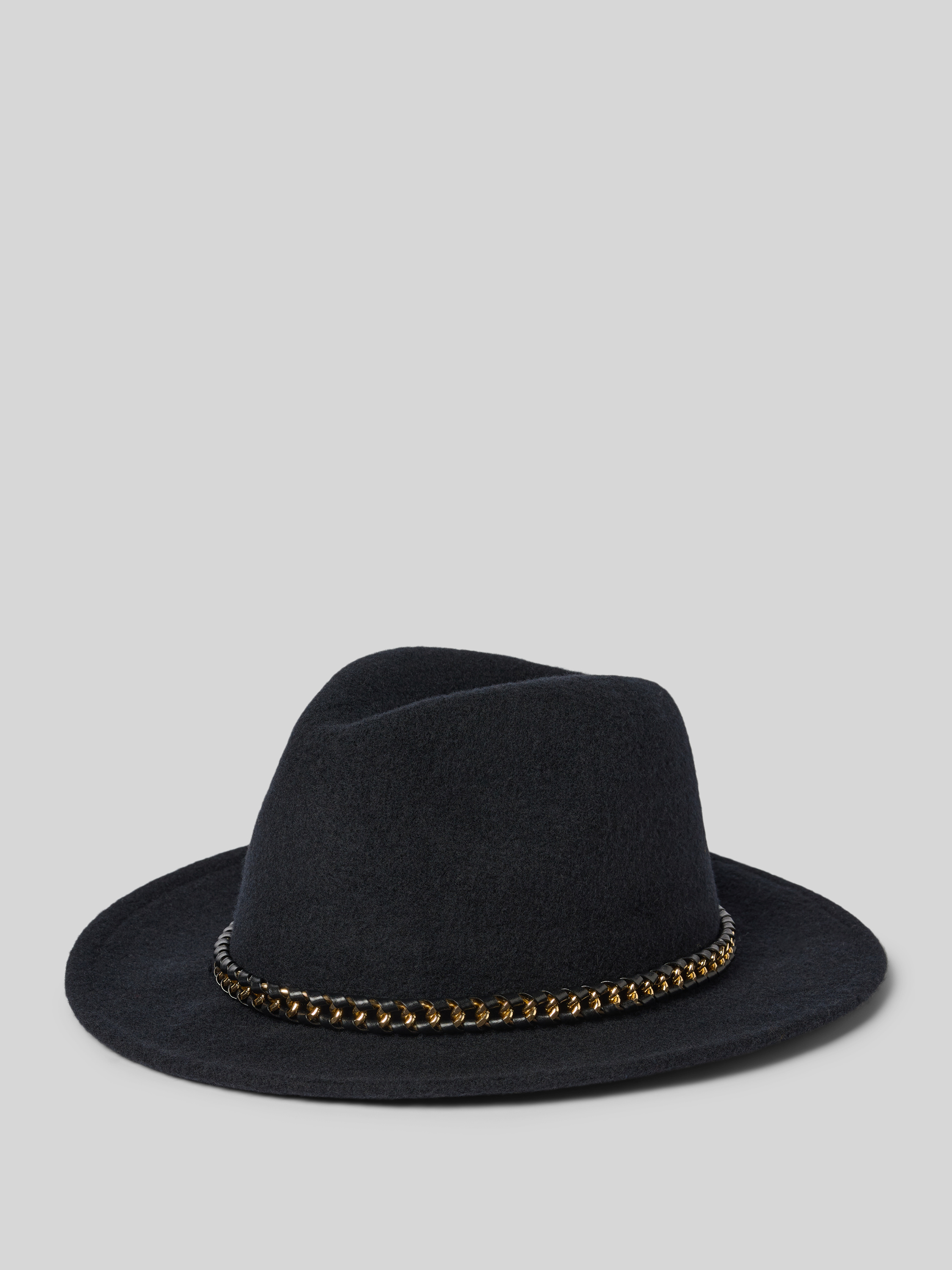 Der Damenhut Wollhut mit Applikation von Loevenich zeichnet sich durch einen Woll-Mix aus, der angenehm auf dem Kopf liegt und dezent wärmt. Die breite Krempe schützt zuverlässig vor Sonne oder Wind. Dank der liebevollen Applikation erhält das Modell 'Fedora' einen individuellen Akzent.