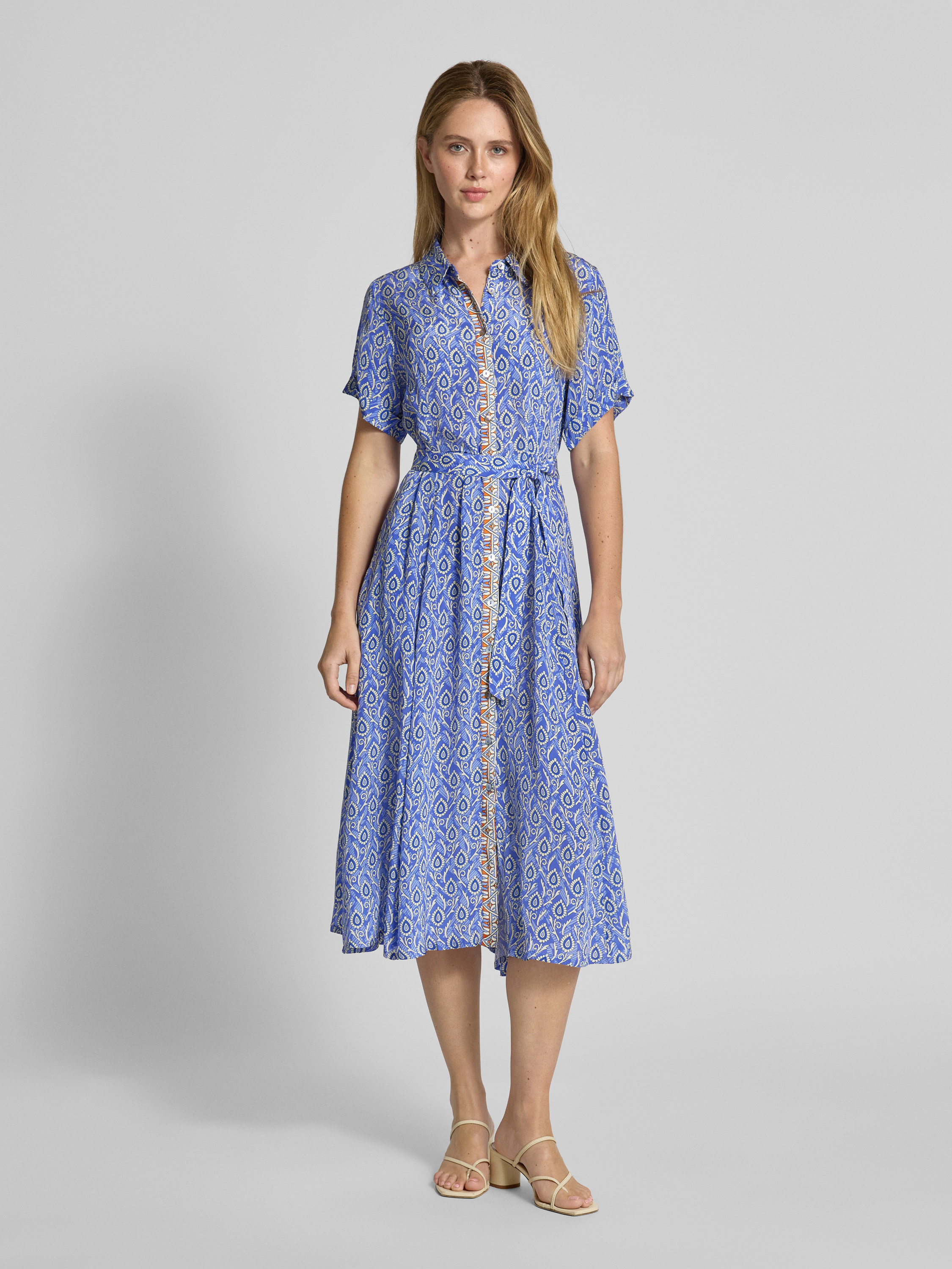LOLLYS LAUNDRYHemdblusenkleid aus Viskose mit Bindegürtel Modell 'Blake' in royal