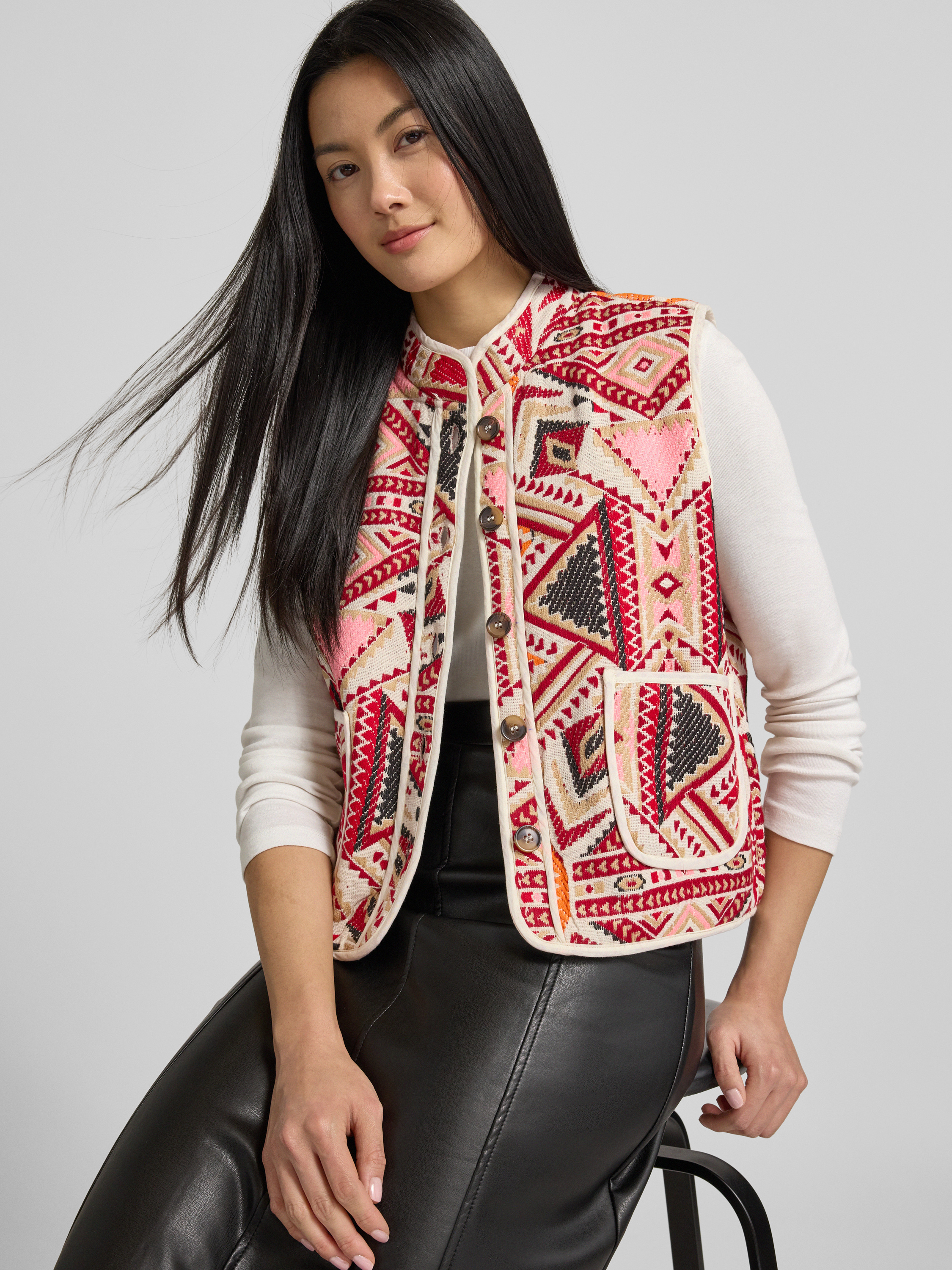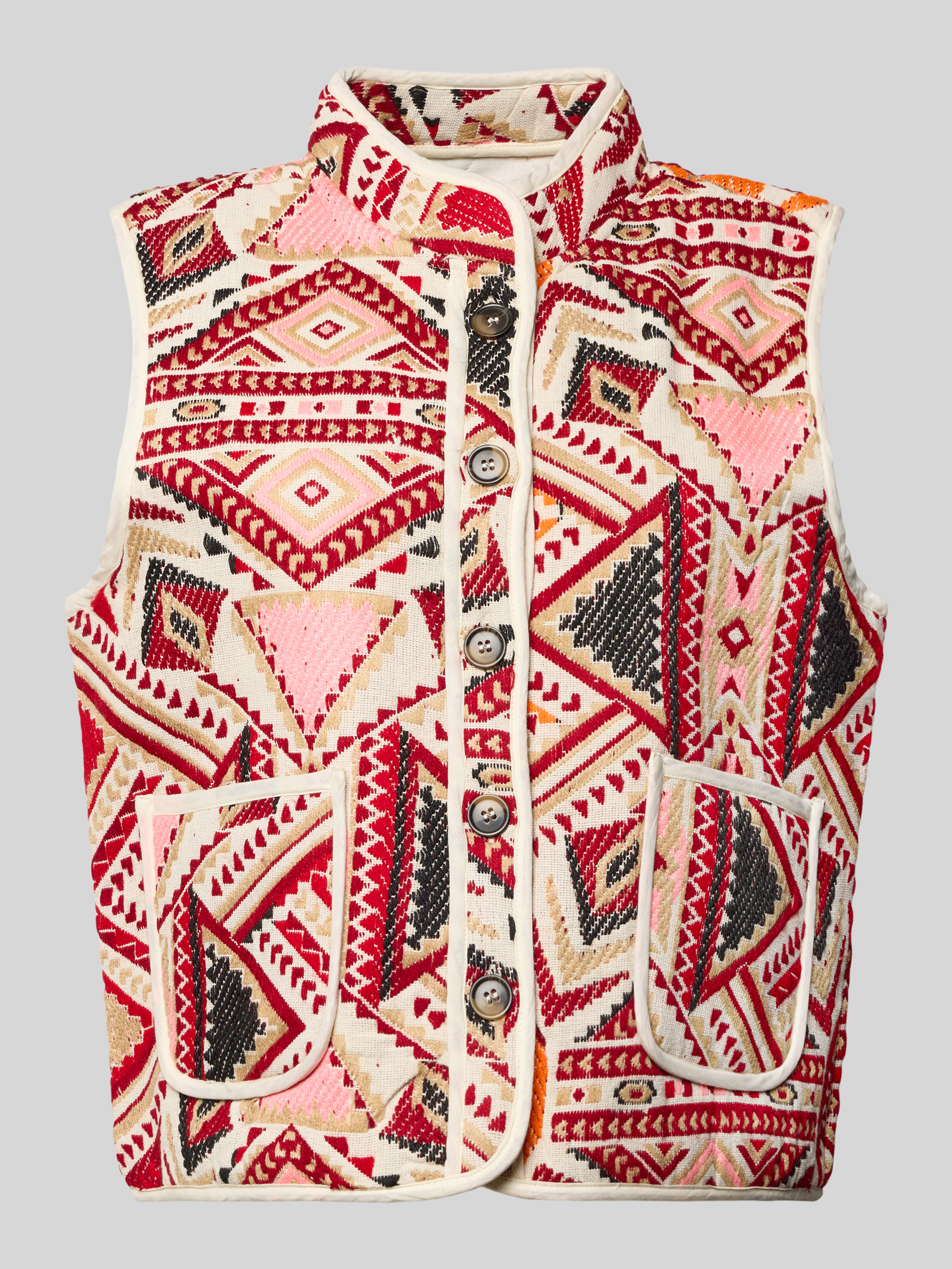 Die Damen Weste von LOLLYS LAUNDRY im Modell 'Cairo' präsentiert sich in einem angenehmen Material-Mix mit Baumwoll-Anteil, der für ein ausgewogenes Tragegefühl sorgt. Dank des geraden Schnitts und des Stehkragens entsteht eine schlichte Silhouette, die vielseitig kombinierbar bleibt. Praktische Eingrifftaschen unterstreichen die Alltagstauglichkeit, während die Knopfleiste dem Gesamtbild eine dezente Struktur verleiht.