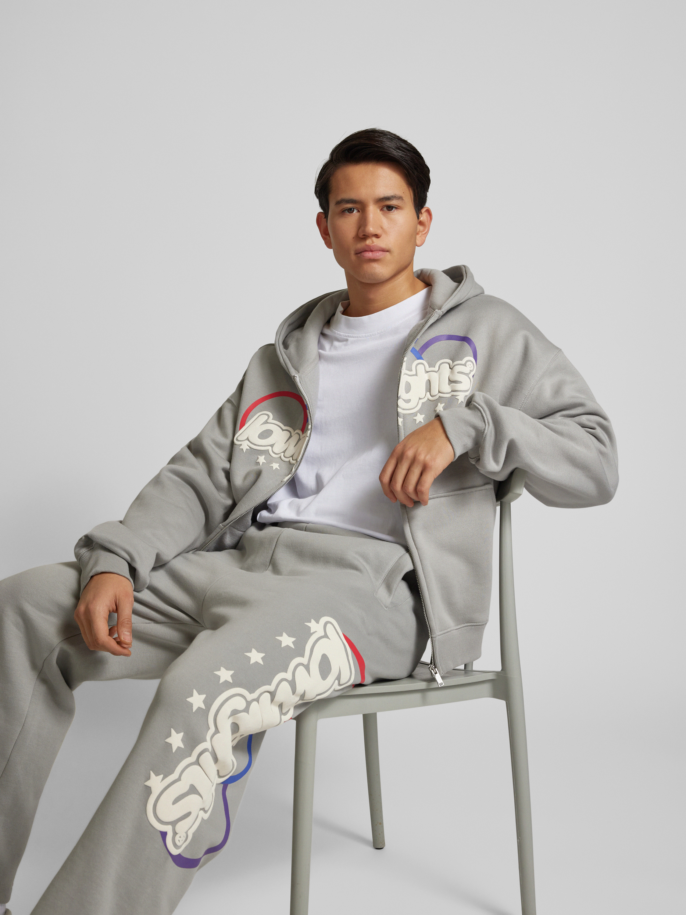 Low Lights StudiosSweatjacke mit Label-Print Modell 'Three Ring' in hellgrau