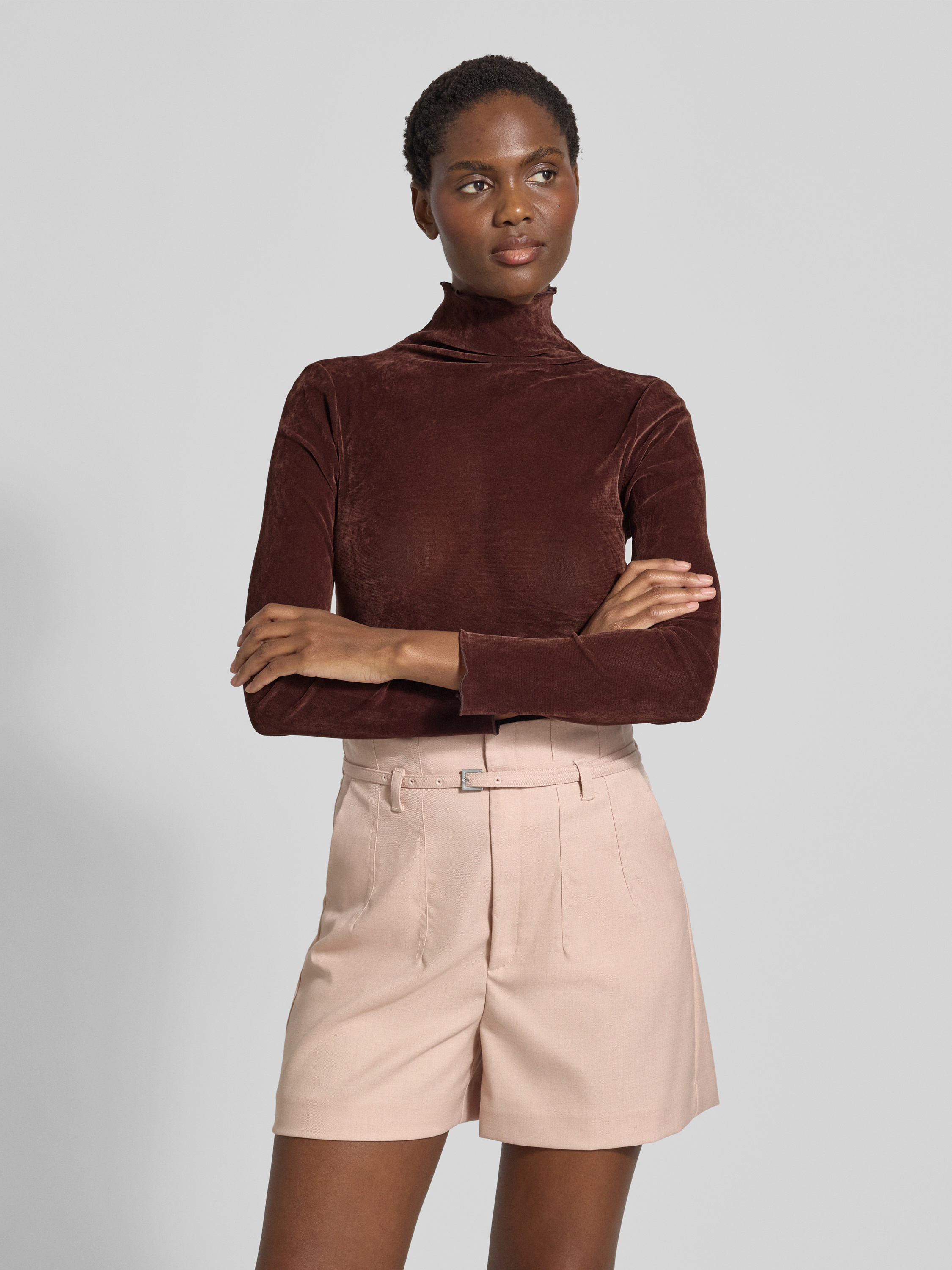 Luisa CeranoLongsleeve mit Stehkragen in dunkelbraun
