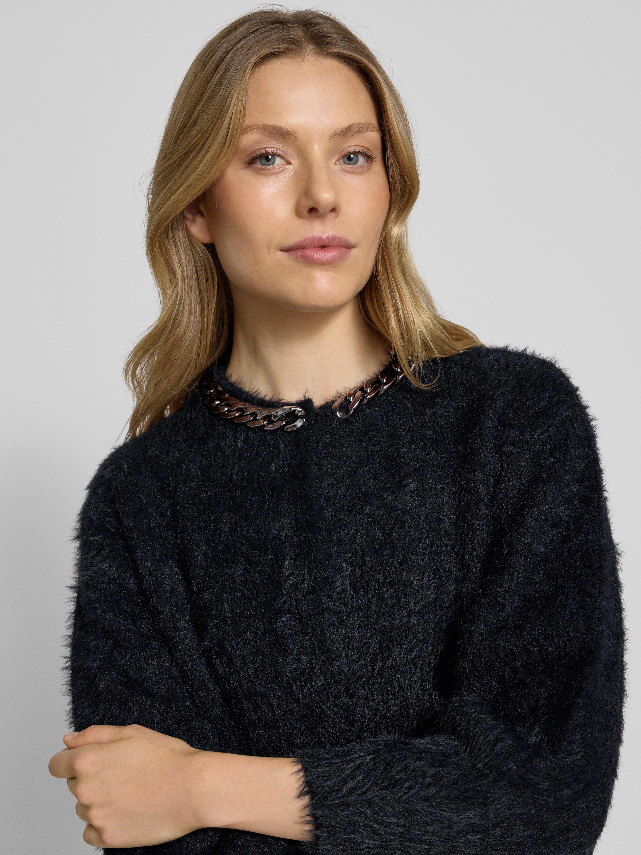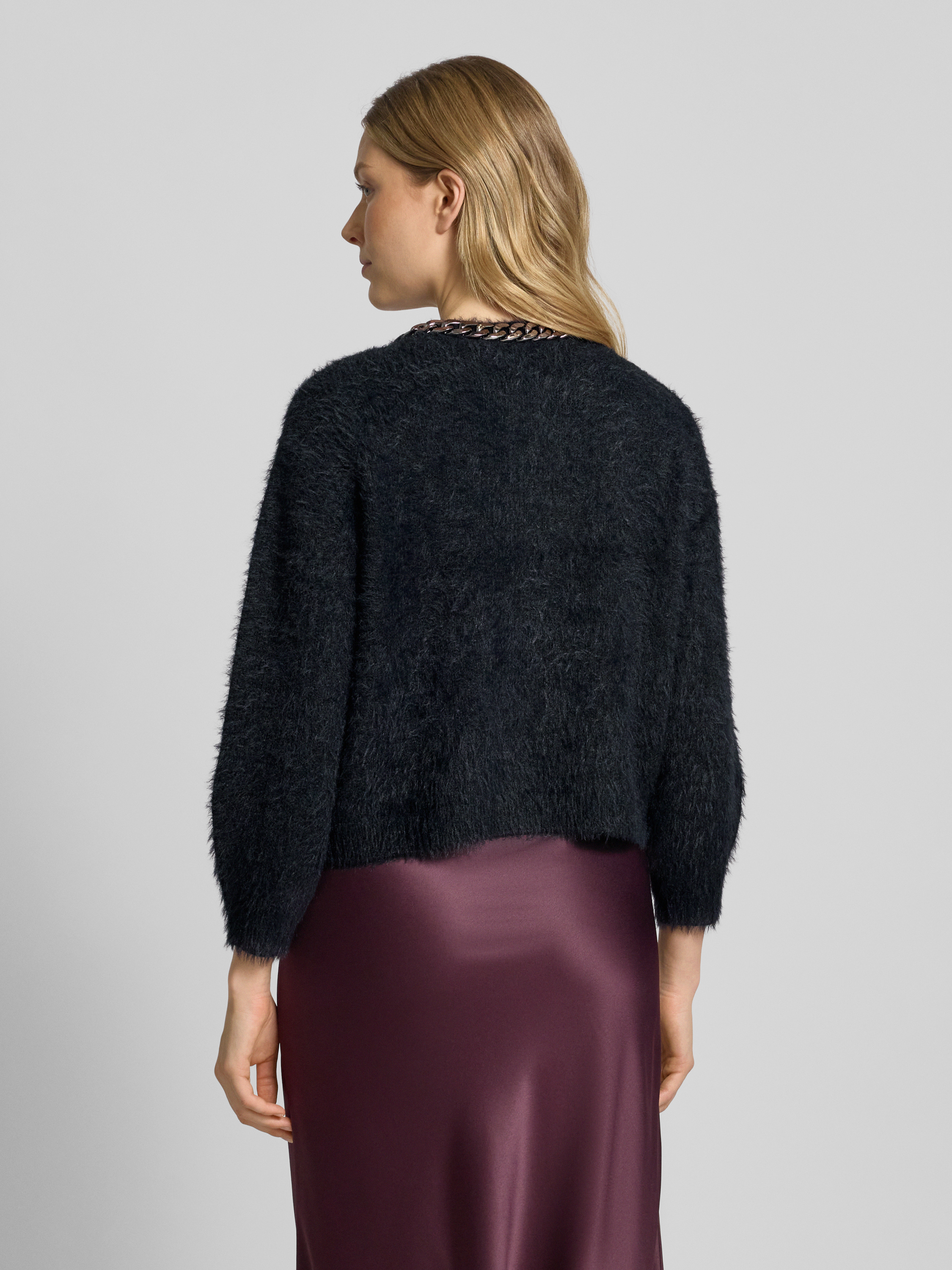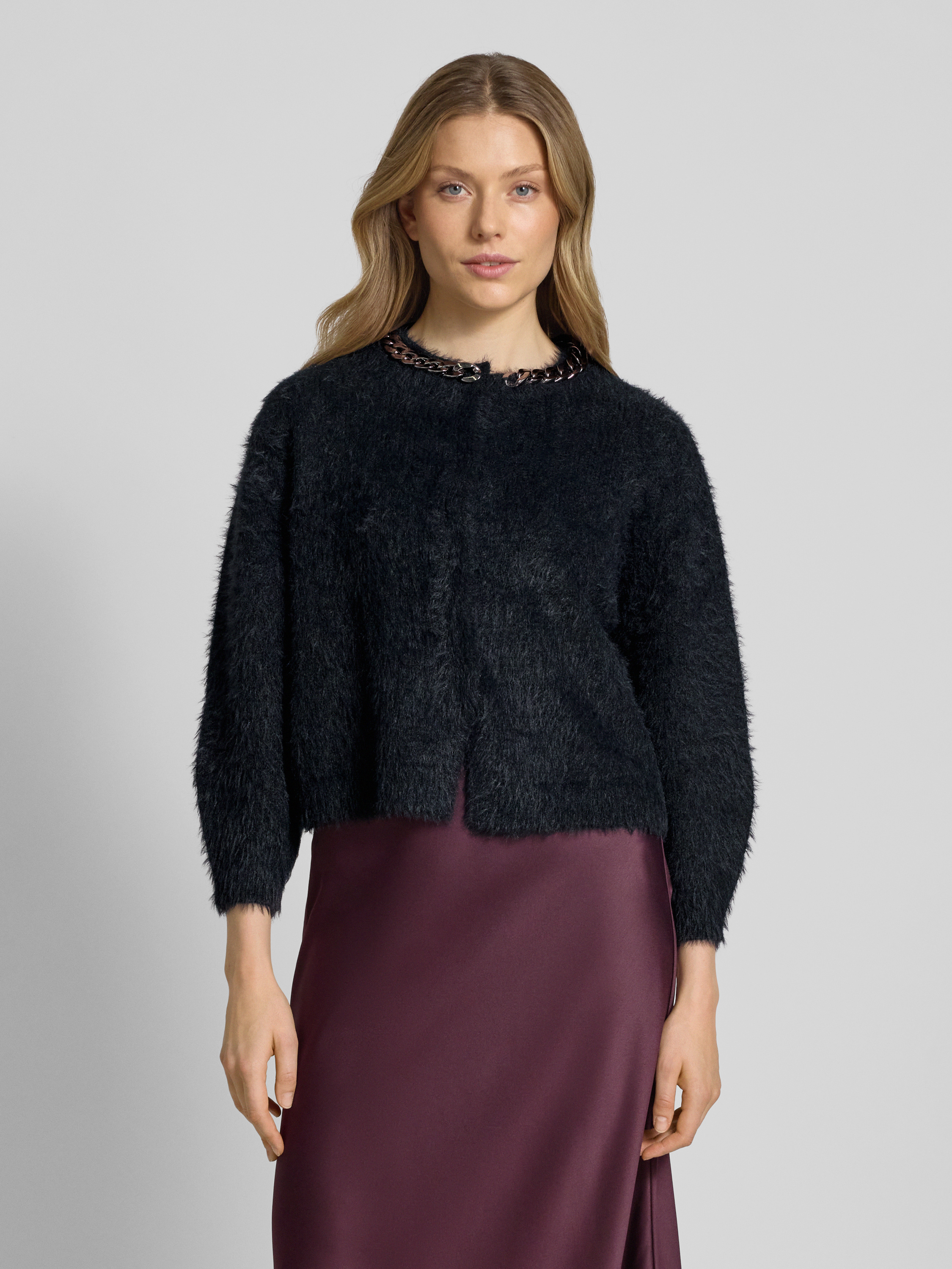 Die Strickjacke von Luisa Cerano fällt durch ihren lockeren Schnitt angenehm leicht und bietet durch den Lanawoll-Mix ein weiches Tragegefühl. Der Rundhalsausschnitt sorgt für eine klassische Optik, während das dezente Label-Detail dem Modell eine zurückhaltende Note verleiht. So eignet sich das Stück besonders für entspannte Tage.