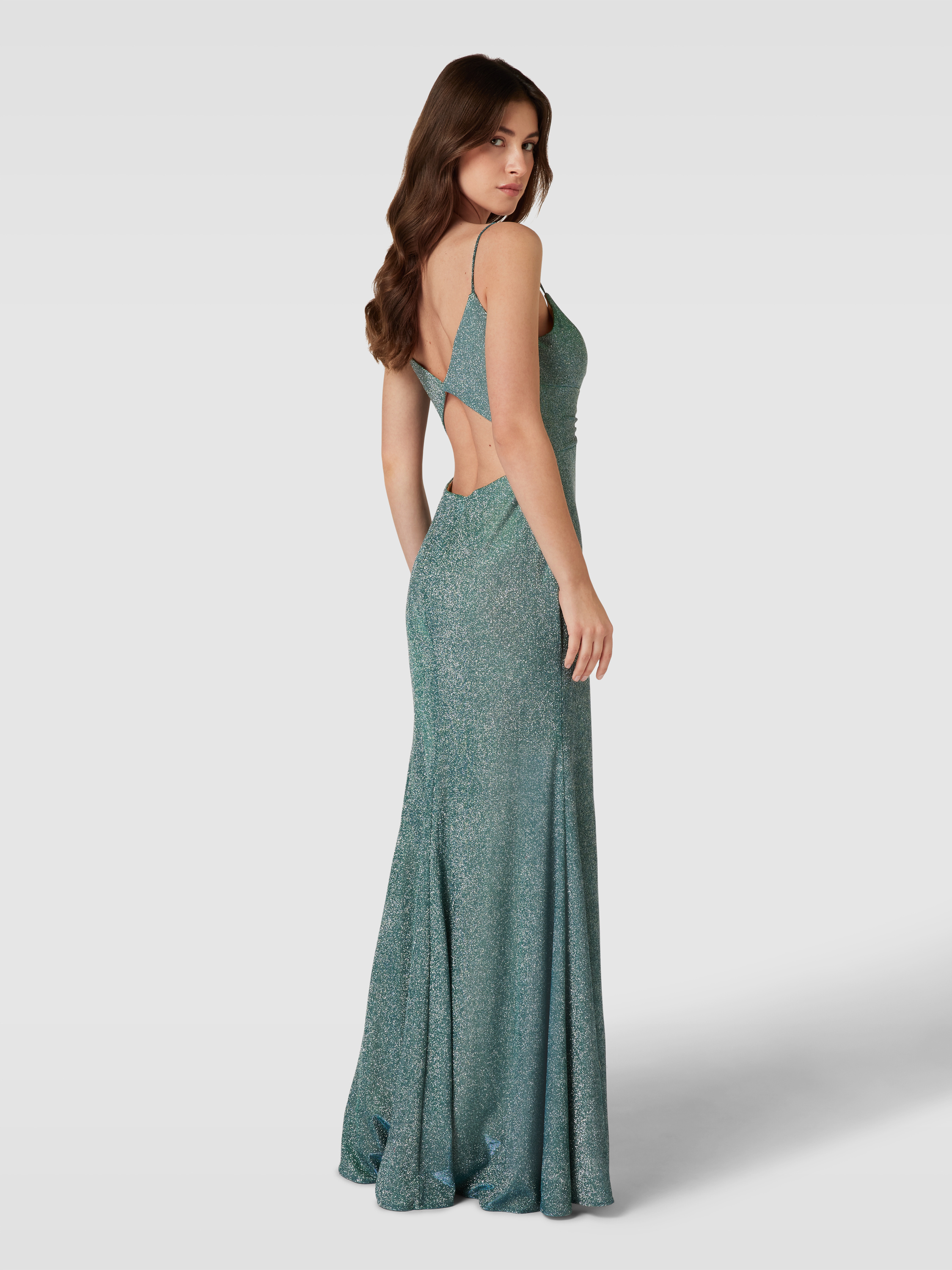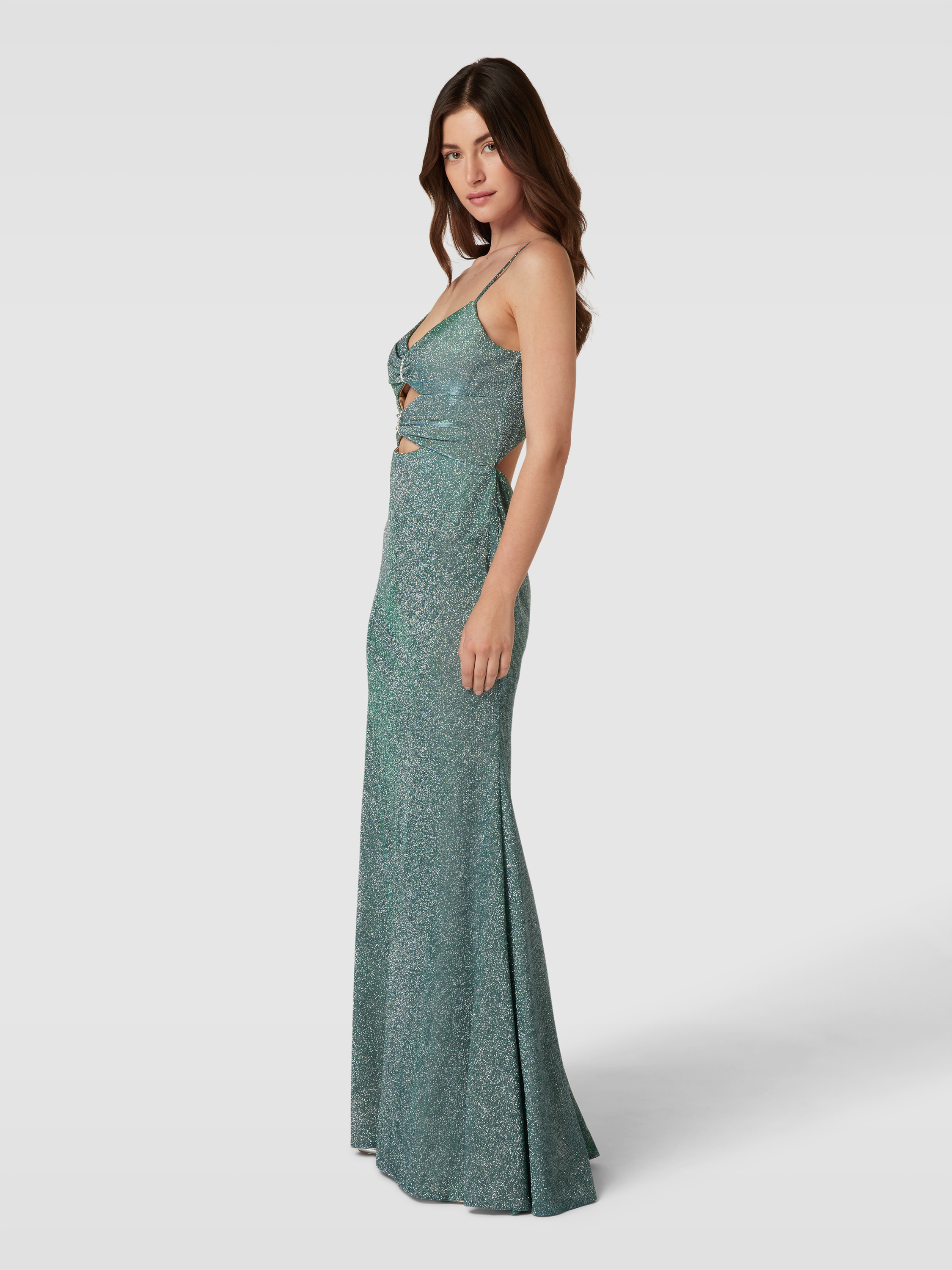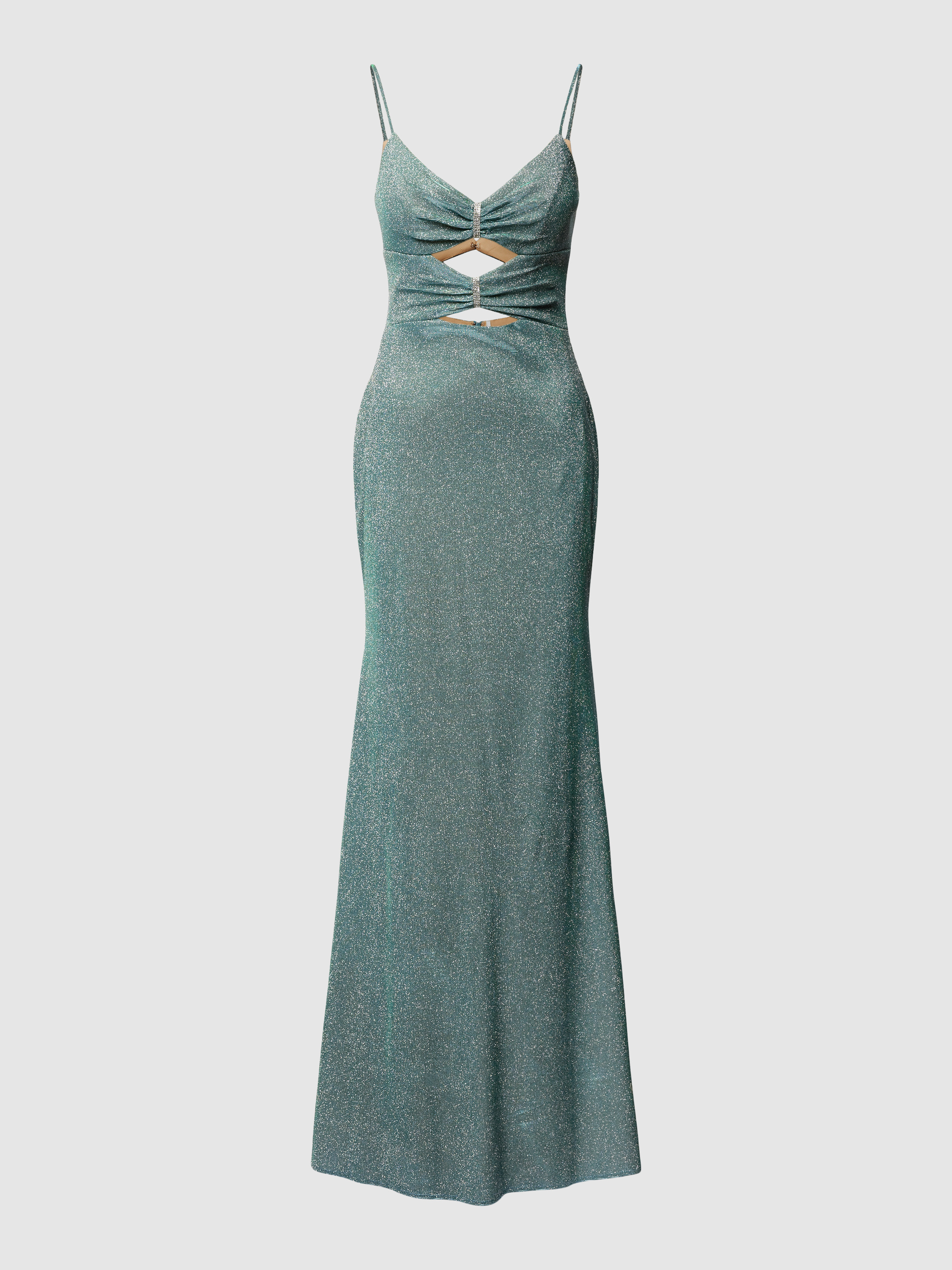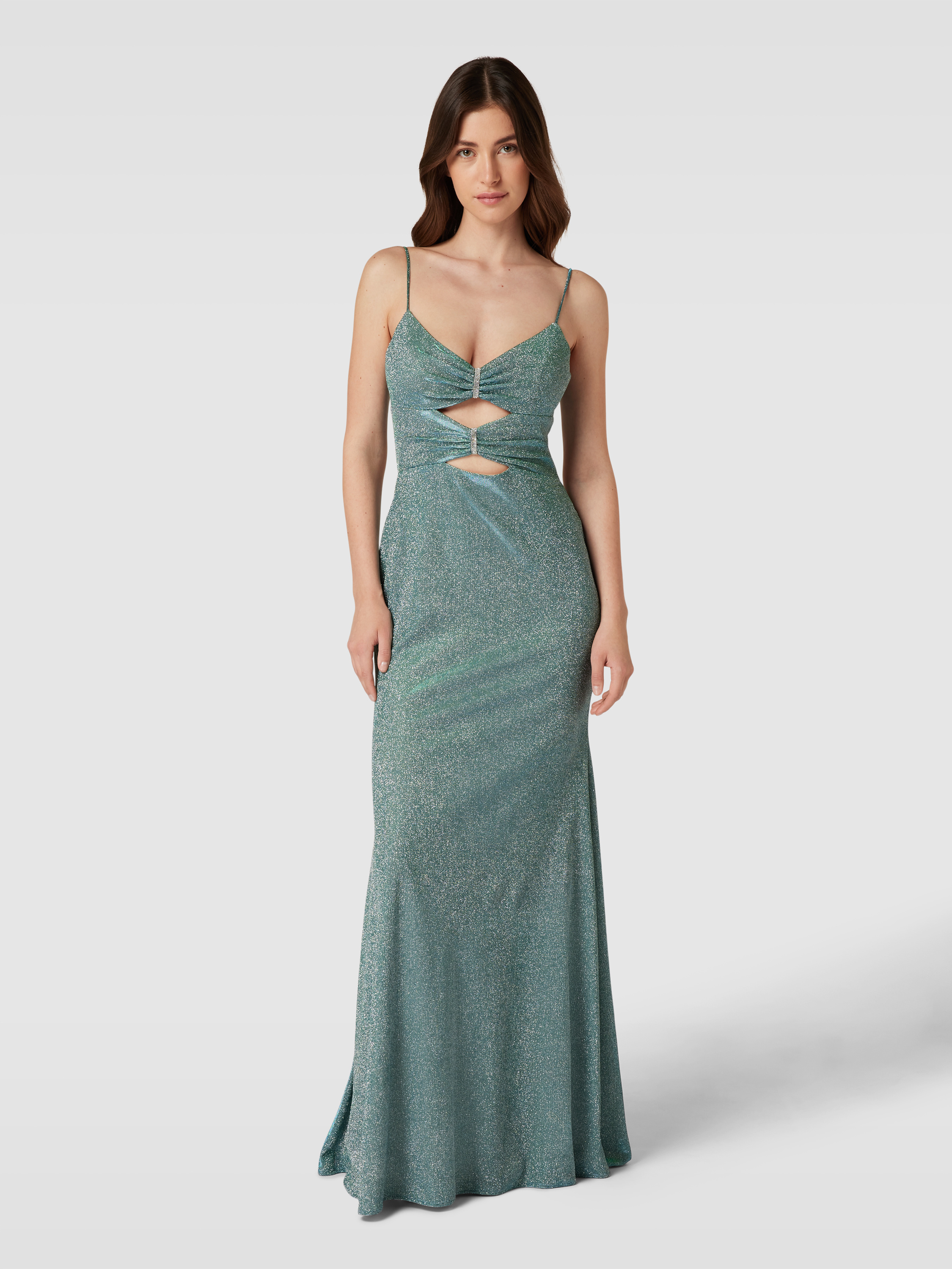 Das elegante Abendkleid von LUXUAR FASHION besticht durch seinen taillierten, eng anliegenden Schnitt und die beeindruckende Maxilänge. Schimmernde Details und raffinierte Cut-Outs verleihen dem Kleid einen besonderen Charme. Die feinen Spaghettiträger und der herzförmige Ausschnitt runden das stilvolle Design ab.