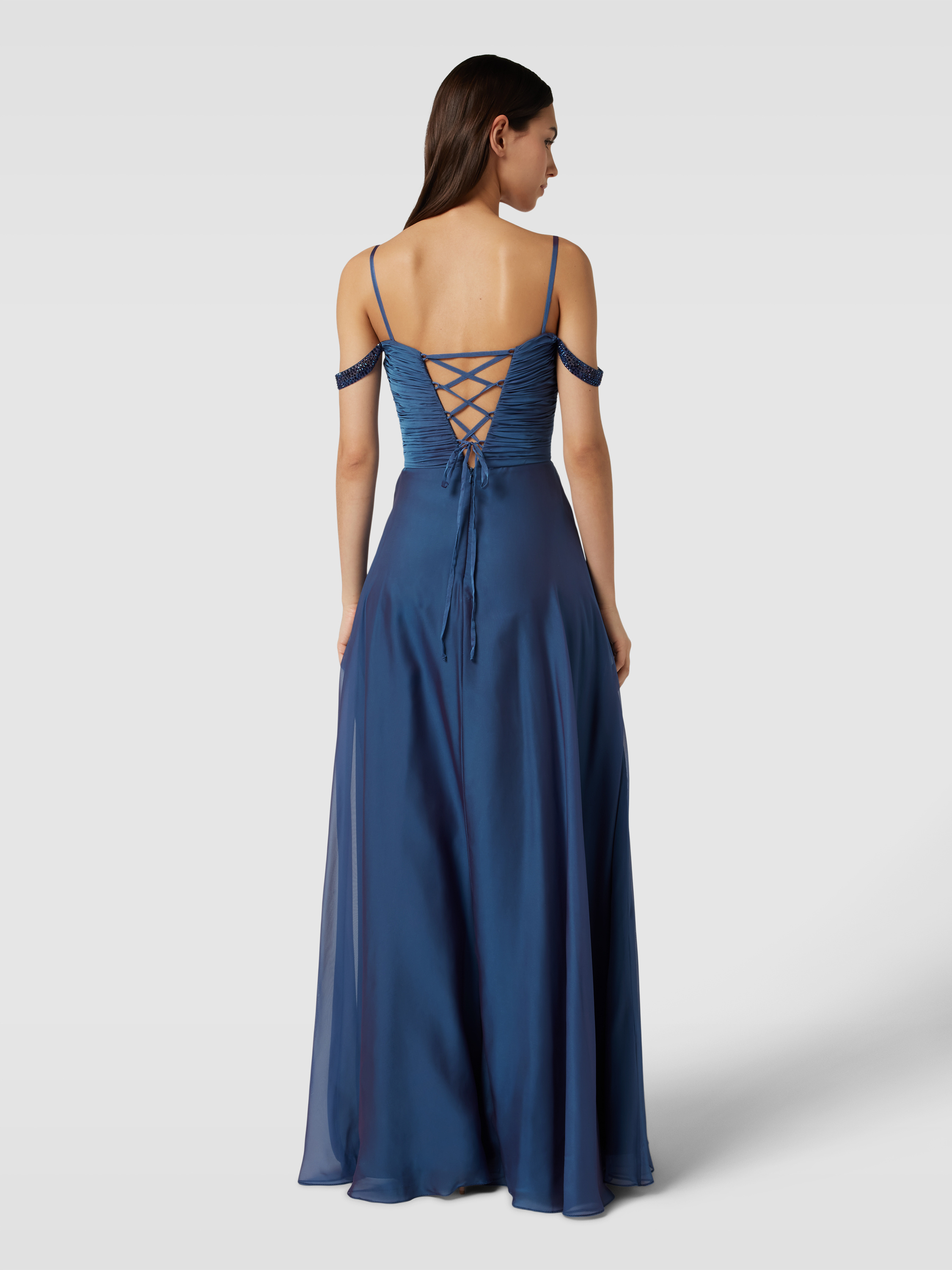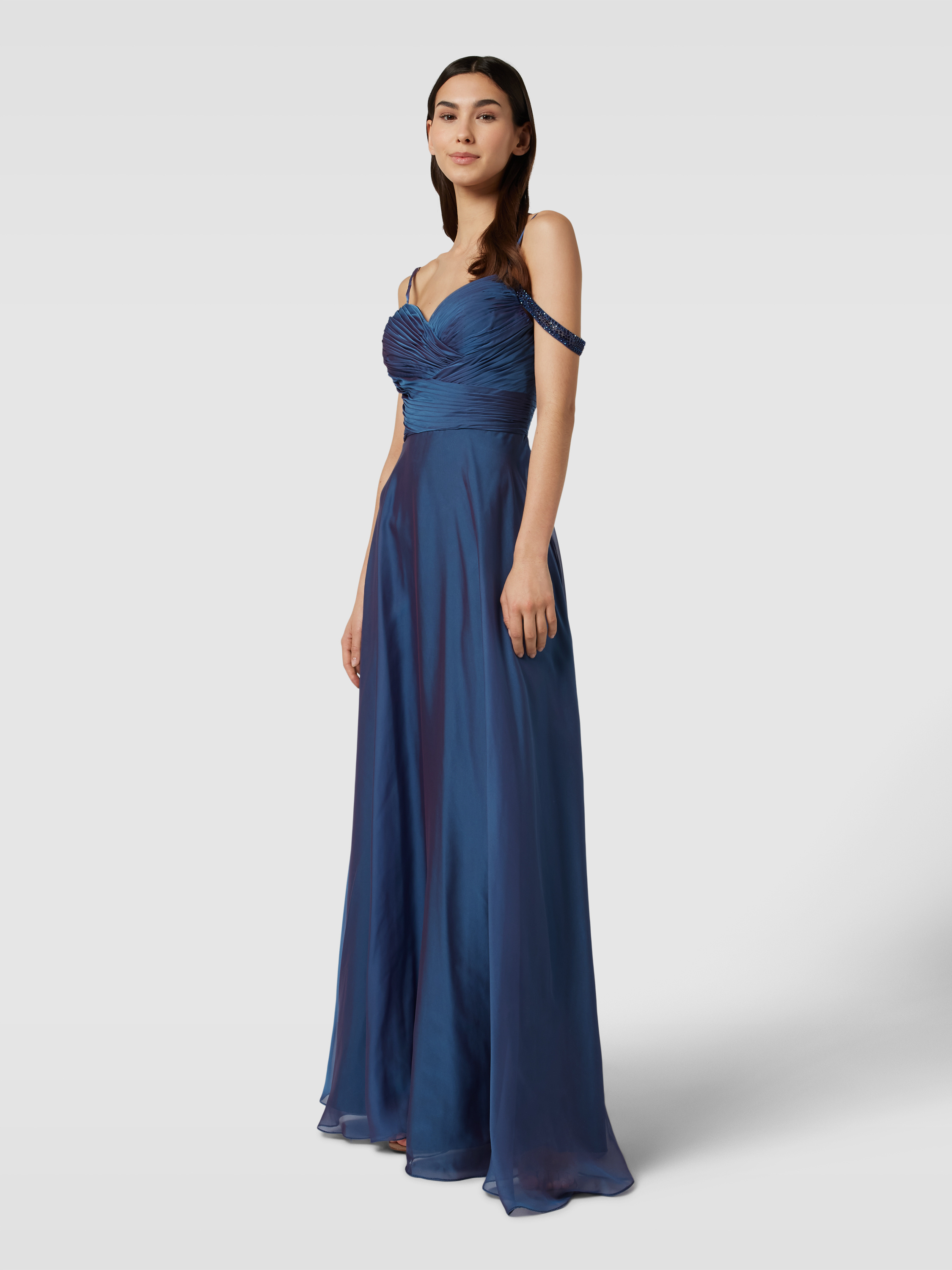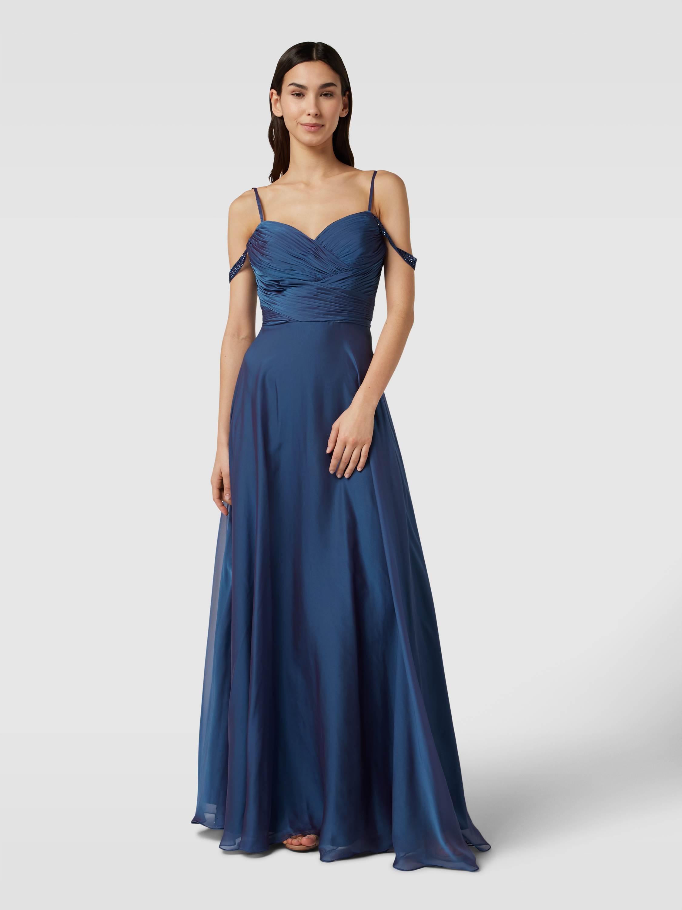 LuxuarAbendkleid in Wickel-Optik in blau