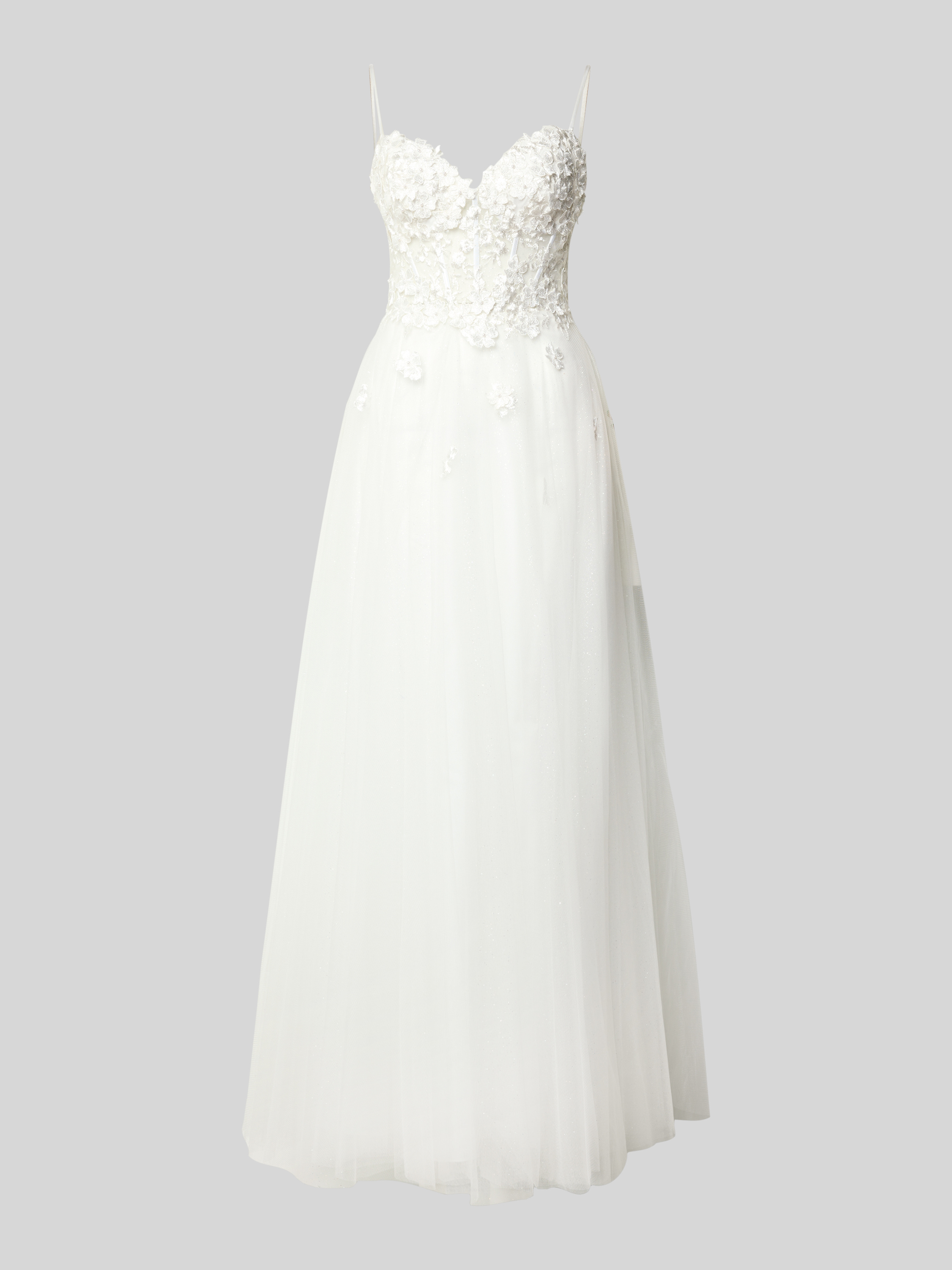 Das Damen Abendkleid von Luxuar zeigt sich in einer fließenden A-Linie und lässt durch den fein gearbeiteten Tüll eine luftige Silhouette entstehen. Zarte Spaghettiträger und ein Corsagenkleid-Schnitt sorgen für angenehmen Halt, während Perlen-Details einen dezenten Akzent setzen. So eignet sich das Maxikleid für festliche Anlässe, bei denen Wert auf eleganten Stil und bequeme Passform gelegt wird.