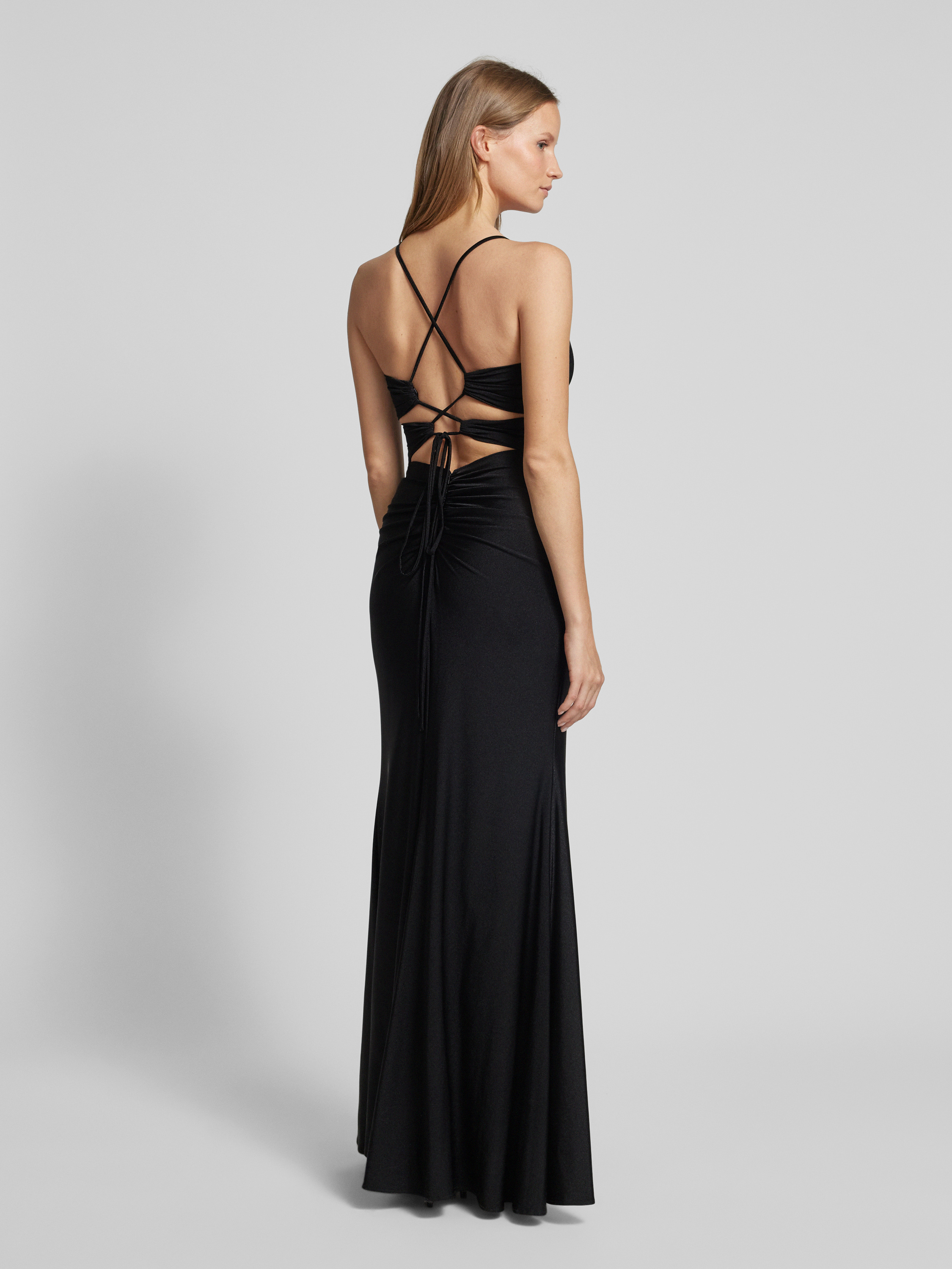 Das Abendkleid von LUXUAR FASHION beeindruckt durch seinen leicht ausgestellten Schnitt und den eleganten V-Ausschnitt. Raffungen und eine dezente Schnürung auf Vorder- und Rückseite sorgen für eine anmutige Silhouette. Der Georgette-Stoff verleiht dem Kleid einen fließenden Fall, der angenehm zu tragen ist.
