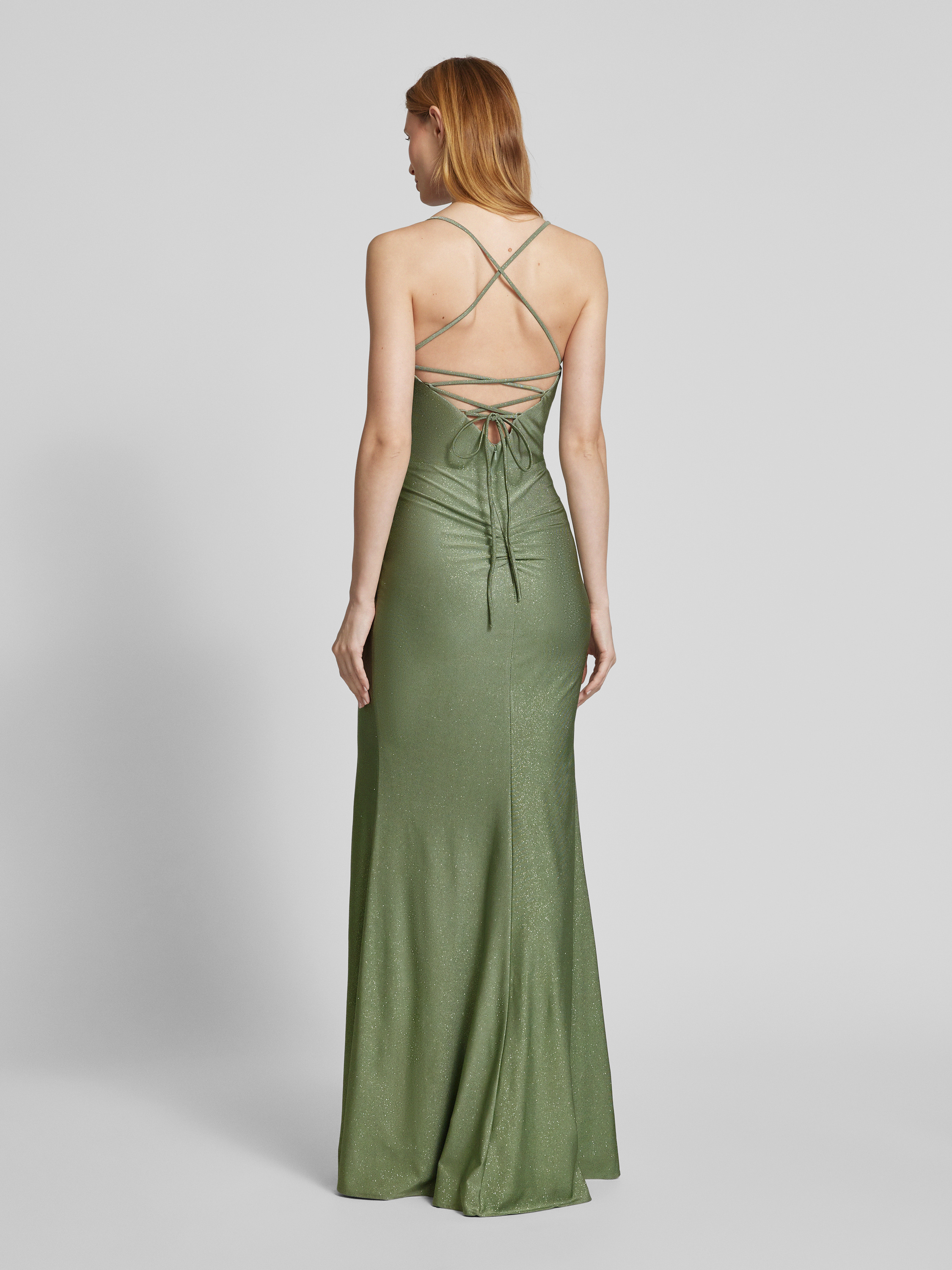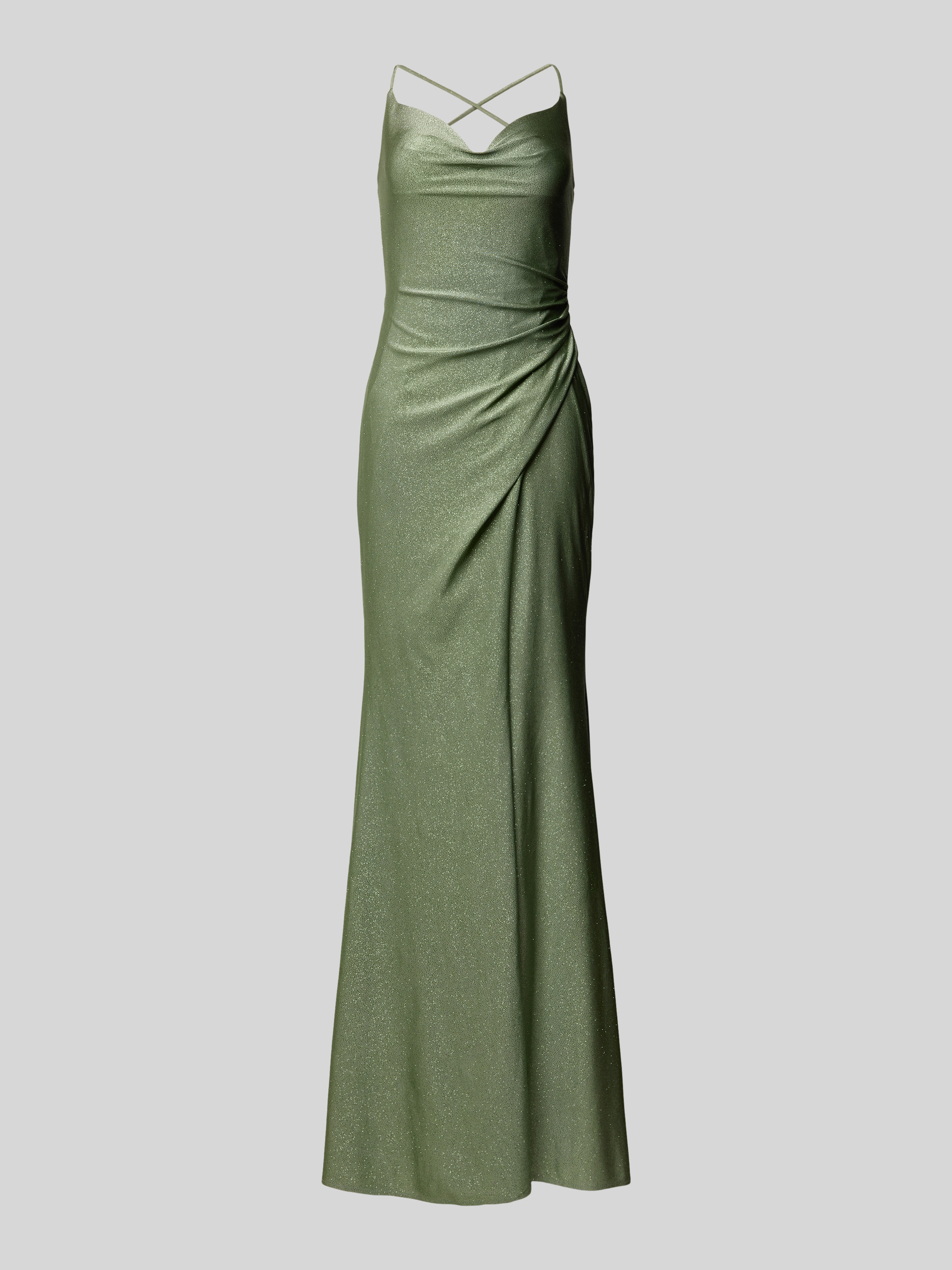 LuxuarAbendkleid mit seitlicher Raffung in hellgruen