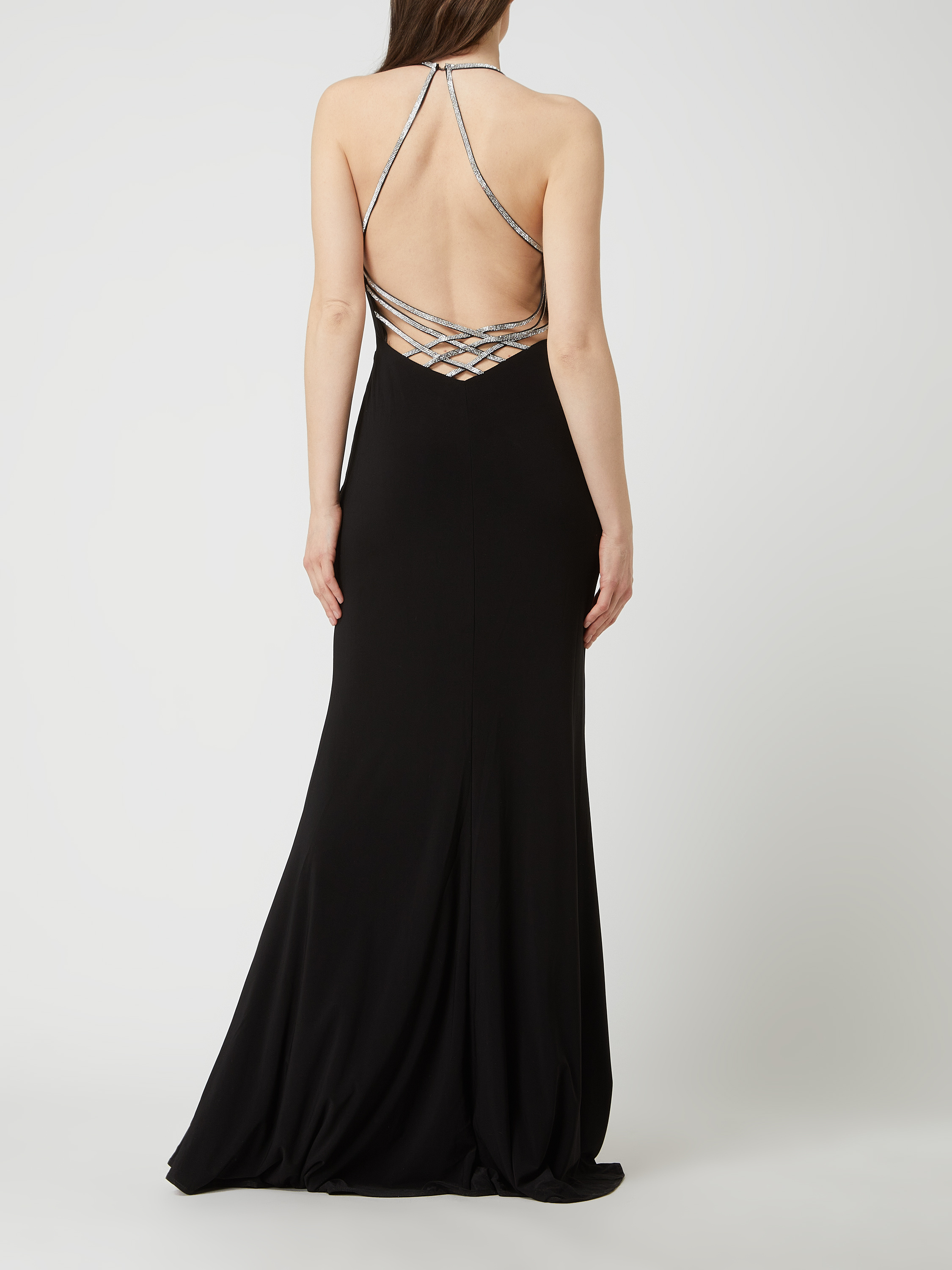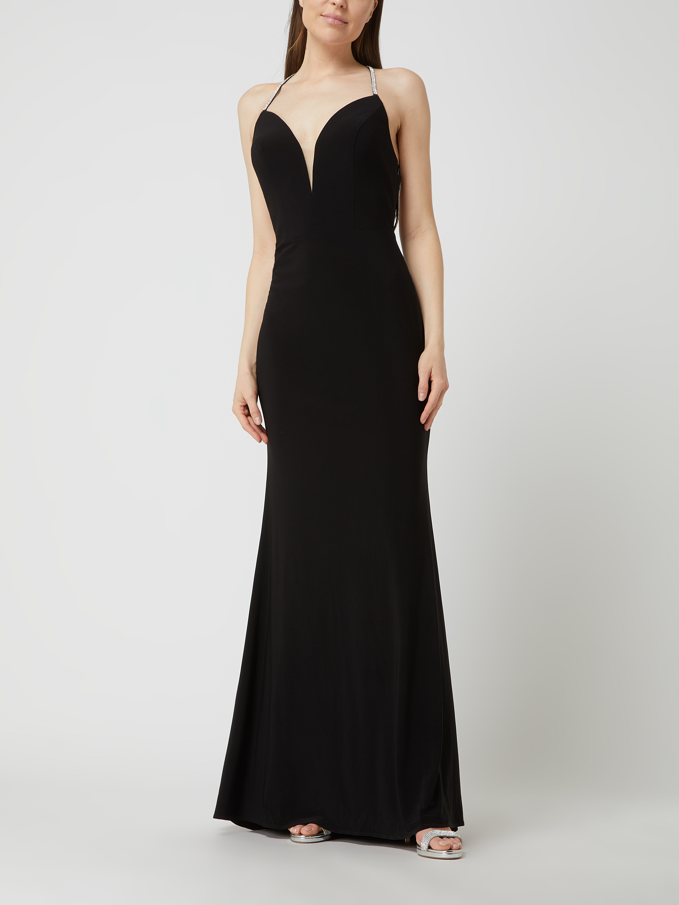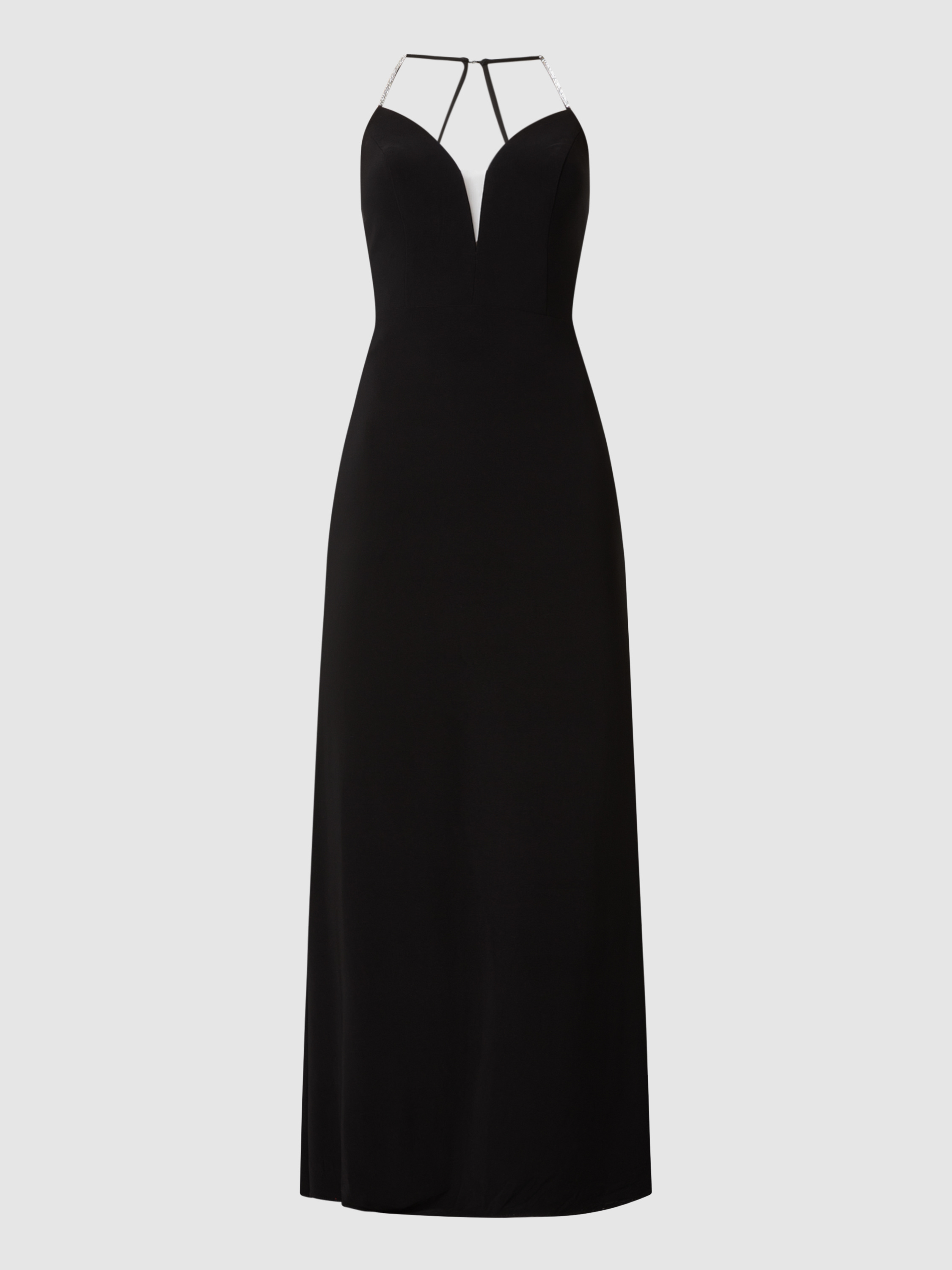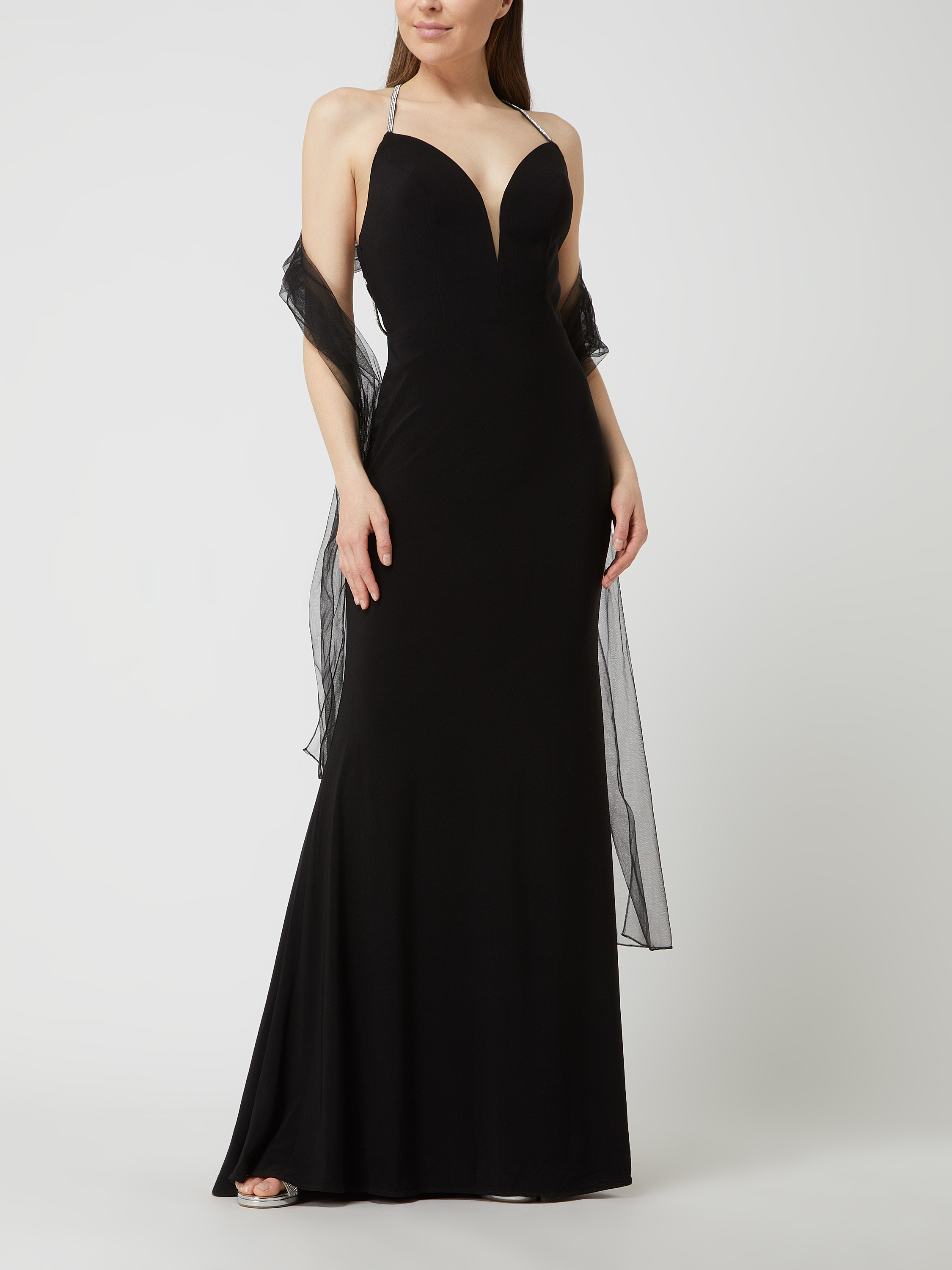 Das Abendkleid von LUXUAR LIMITED vereint Eleganz und Komfort mit seinem eng anliegenden Schnitt und den wattierten Cups. Die Spaghettiträger und der ausgestellte Rockteil schaffen eine harmonische Silhouette, während die Strasssteine einen dezenten Glanz hinzufügen. Eine passende Stola rundet das Erscheinungsbild ab.
