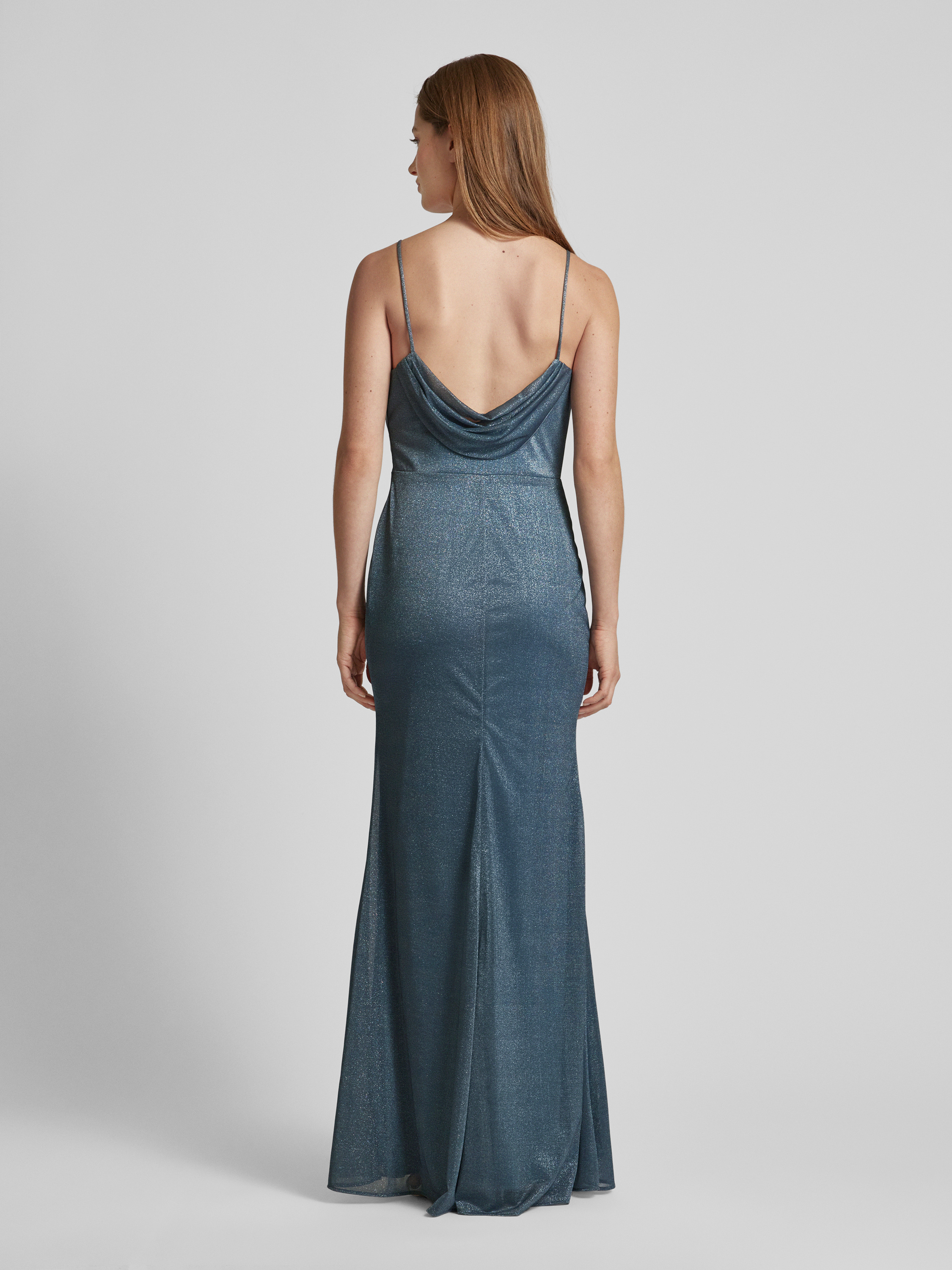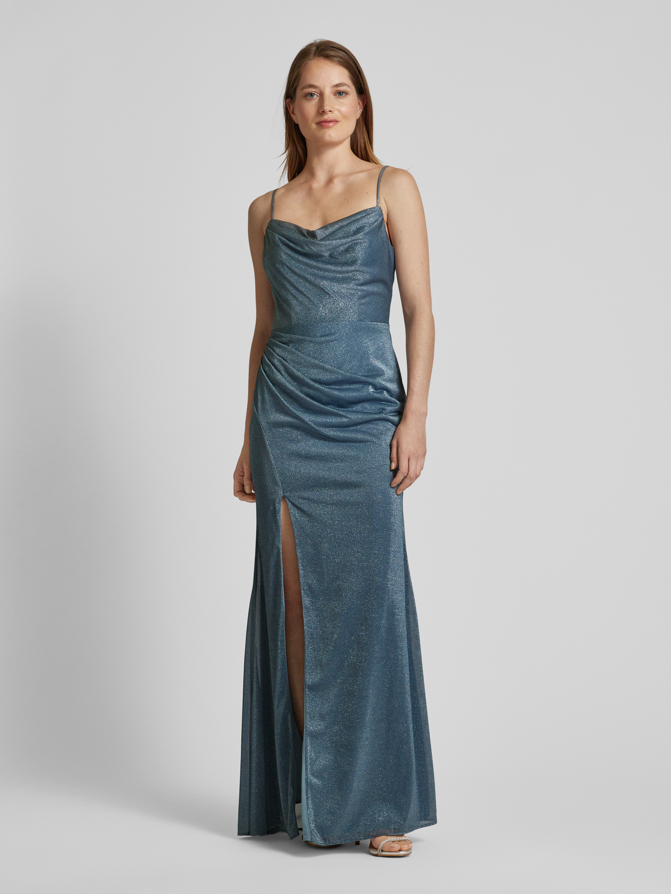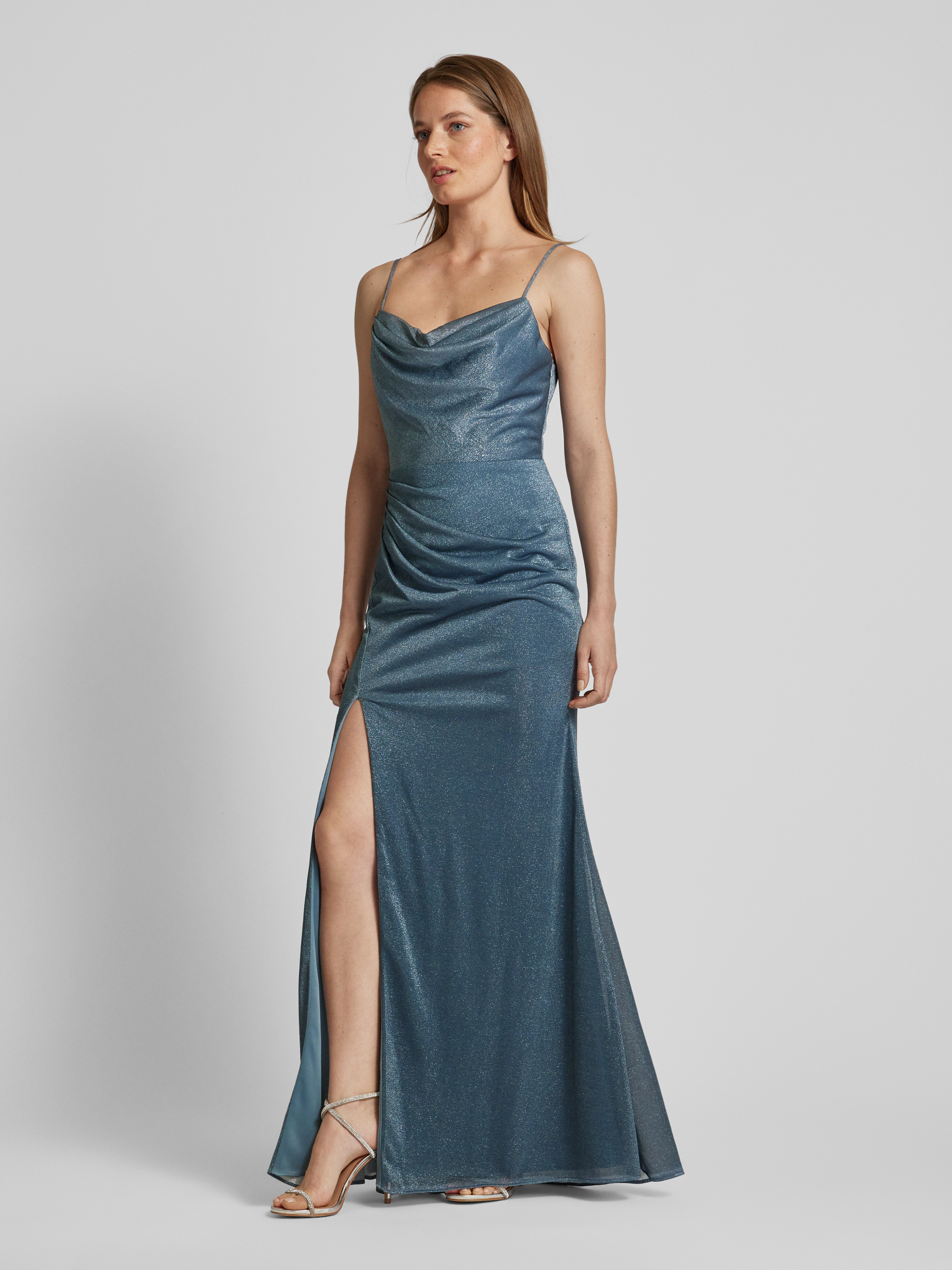 LuxuarAbendkleid mit Wasserfall-Ausschnitt in rauchblau