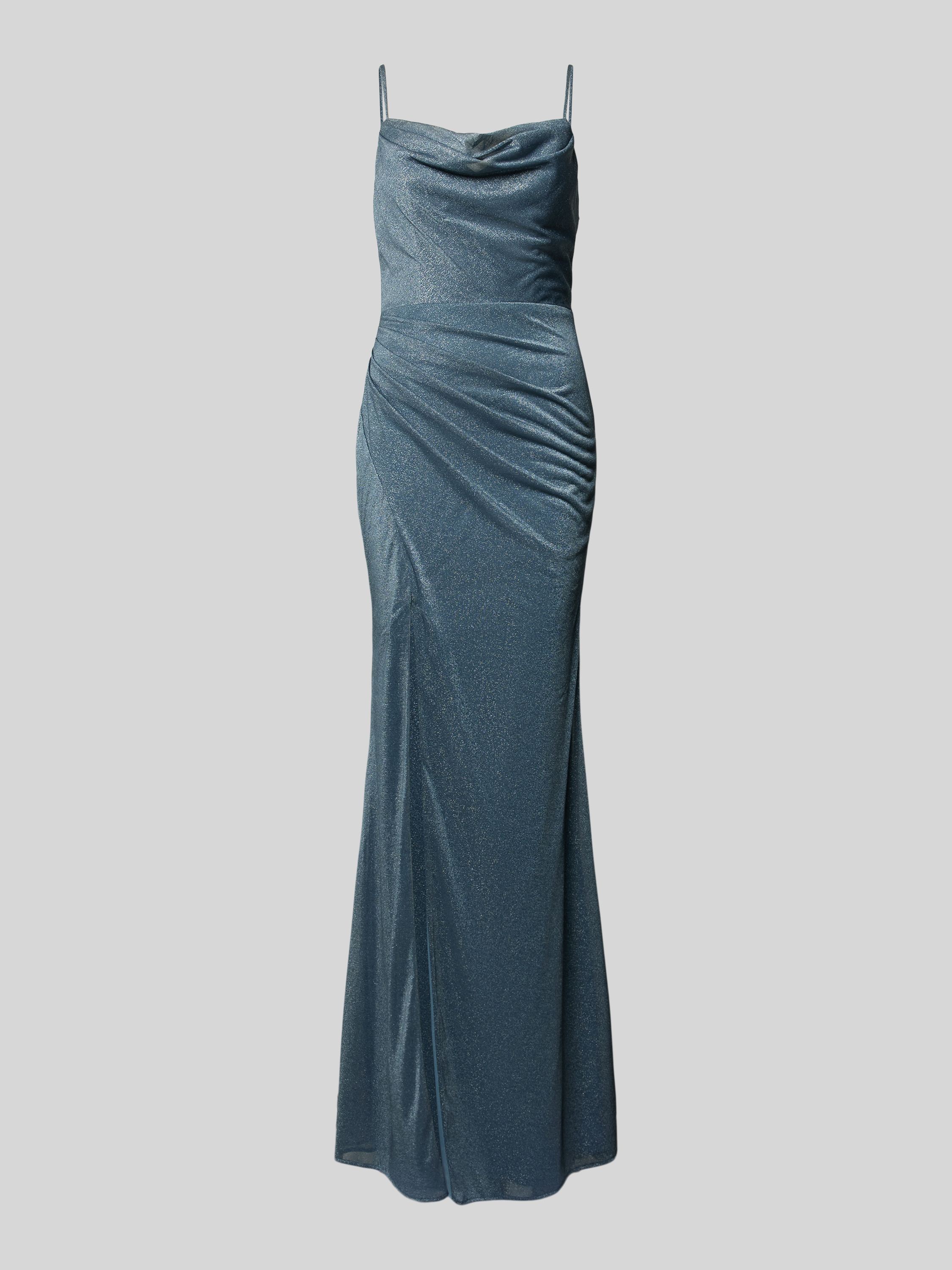 Das Abendkleid von LUXUAR FASHION präsentiert sich in einem eleganten, taillierten Schnitt, der die Figur vorteilhaft betont. Der fließende Wasserfall-Ausschnitt und die raffinierten Raffungen verleihen dem Kleid eine besondere Note, während der Gehschlitz Bewegungsfreiheit bietet. Die Maxilänge und die zarten Spaghettiträger unterstreichen den femininen Stil.