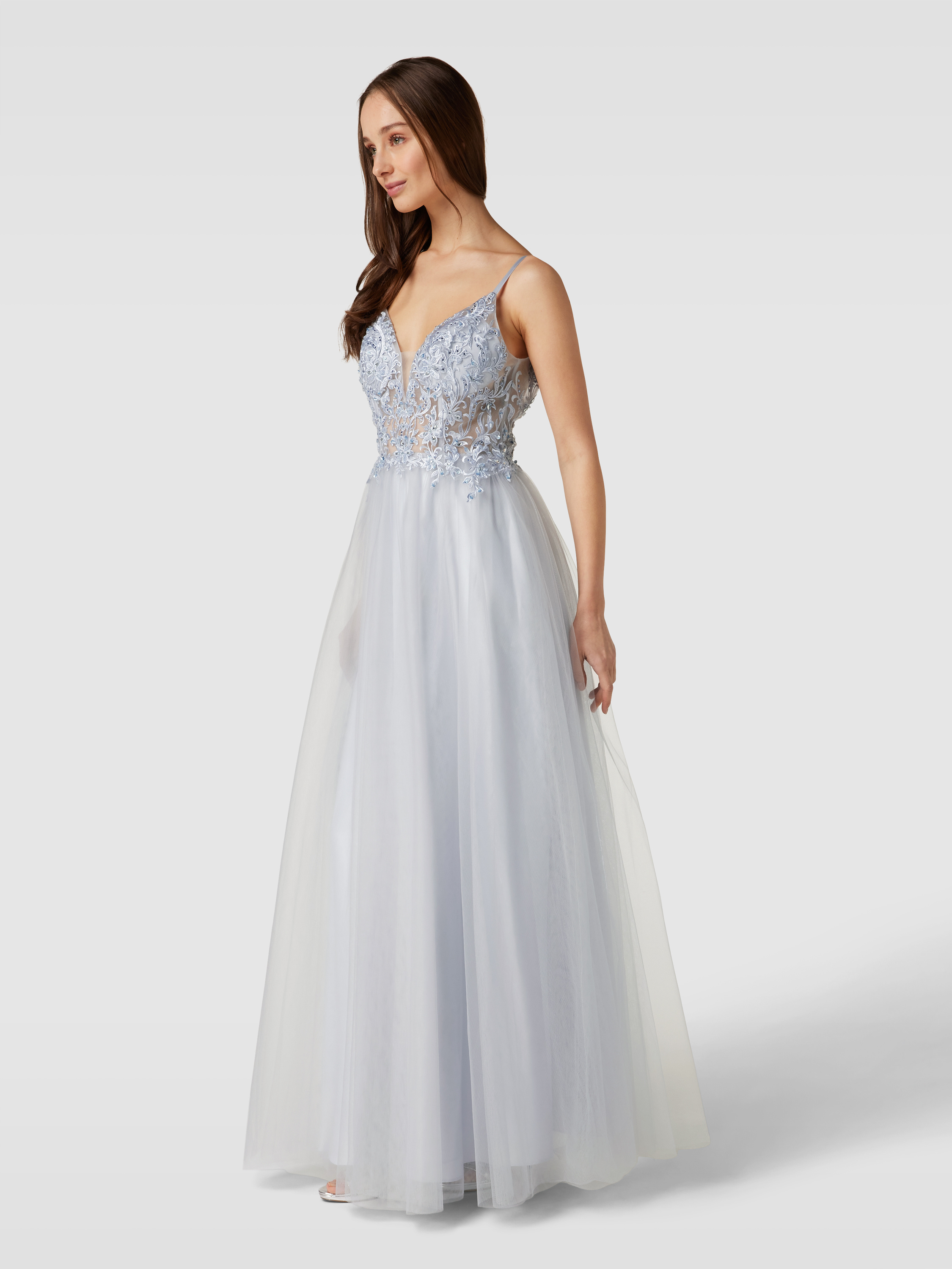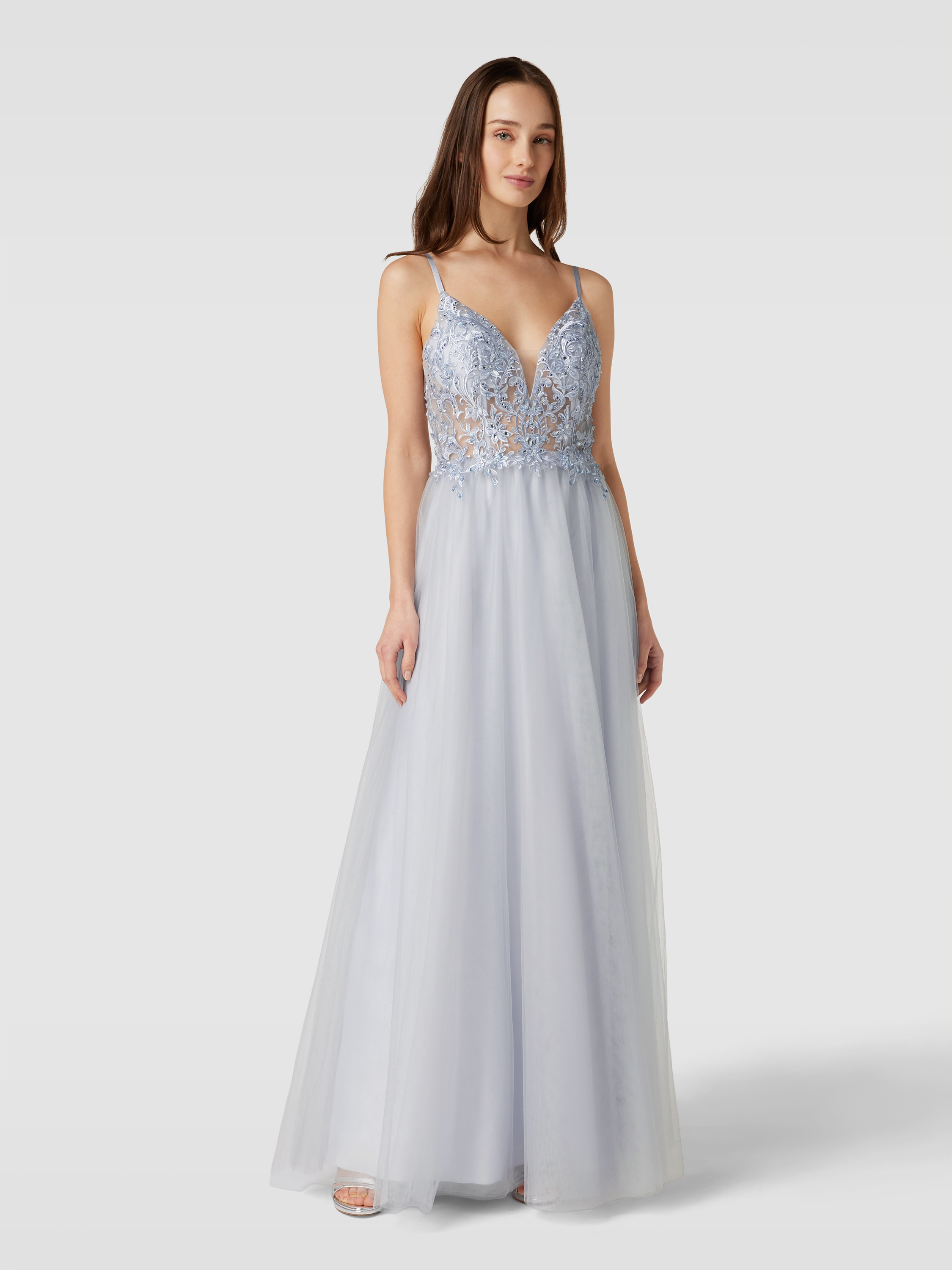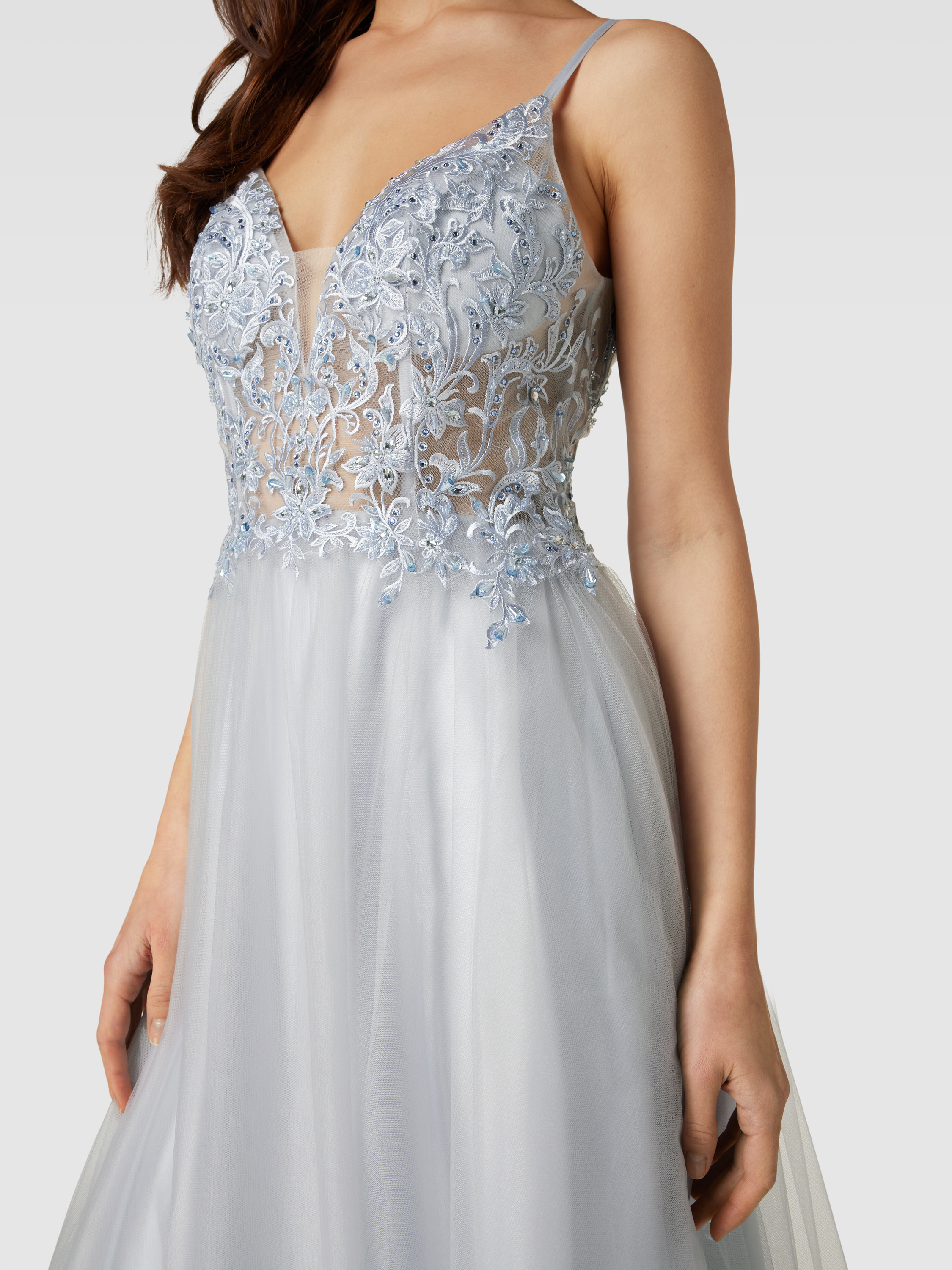 Das Abendkleid von LUXUAR FASHION beeindruckt durch einen taillierten Schnitt und eine ausgestellte Rockpartie, die eine feminine Silhouette schafft. Florale Spitze und ein Ziersteinbesatz ergänzen den V-Ausschnitt, während das strapazierfähige Material für Tragekomfort sorgt. Ein blickdichtes Unterkleid bietet zusätzliche Sicherheit.