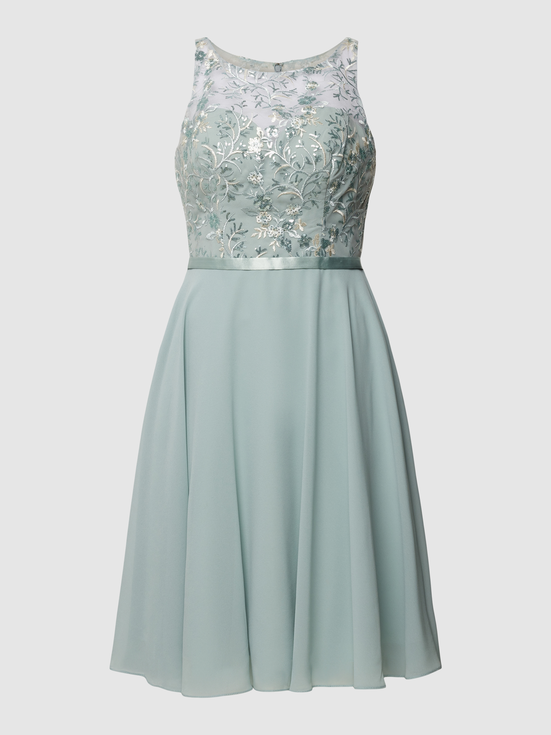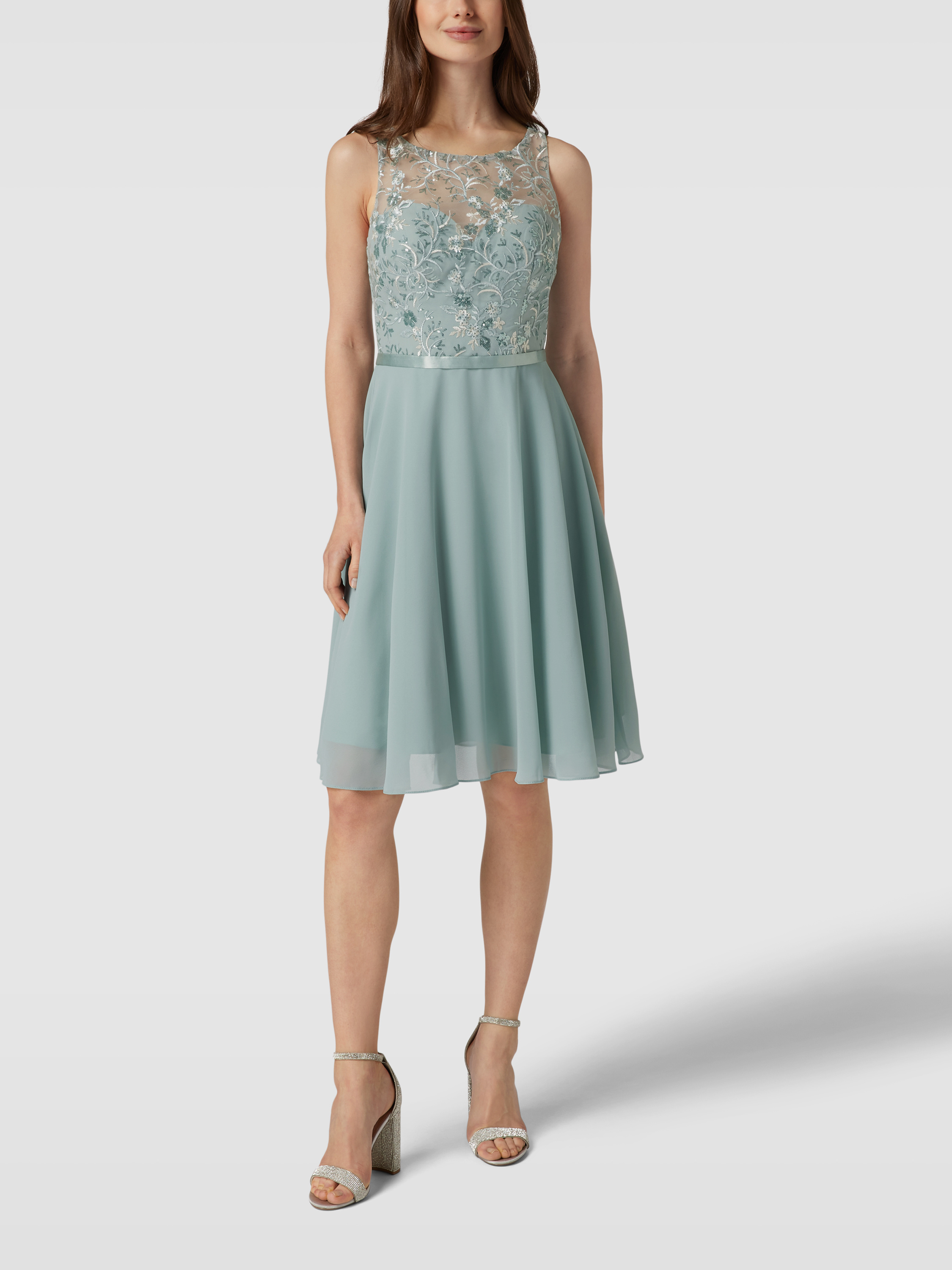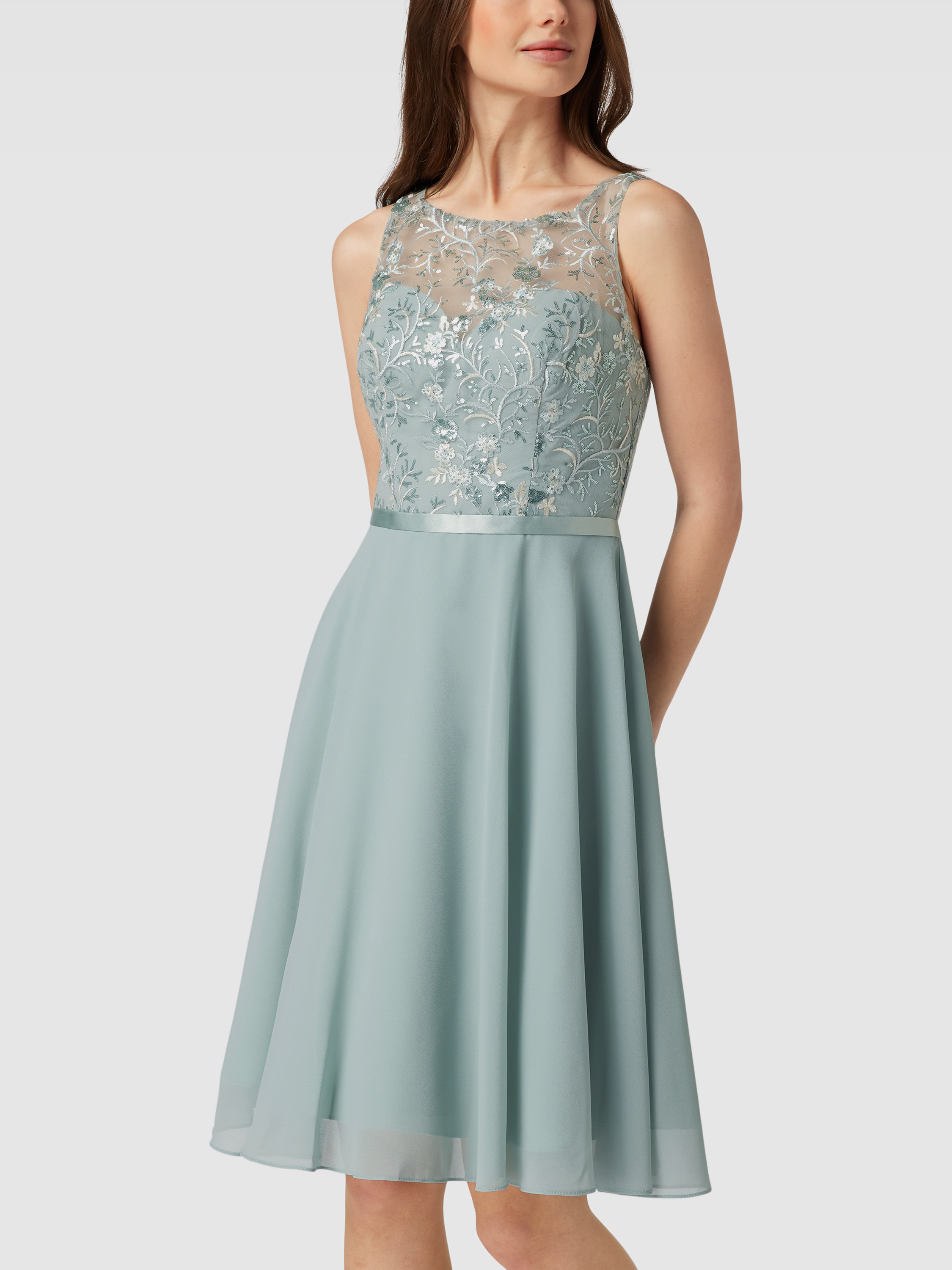 Das Cocktailkleid von LUXUAR FASHION vereint Eleganz und Komfort in einem geraden Schnitt. Florale Stickereien und ein Paillettenbesatz setzen funkelnde Akzente, während die wattierten Cups einen angenehmen Sitz gewährleisten. Knielang und mit einem klassischen Rundhalsausschnitt ausgestattet, eignet es sich hervorragend für festliche Anlässe.