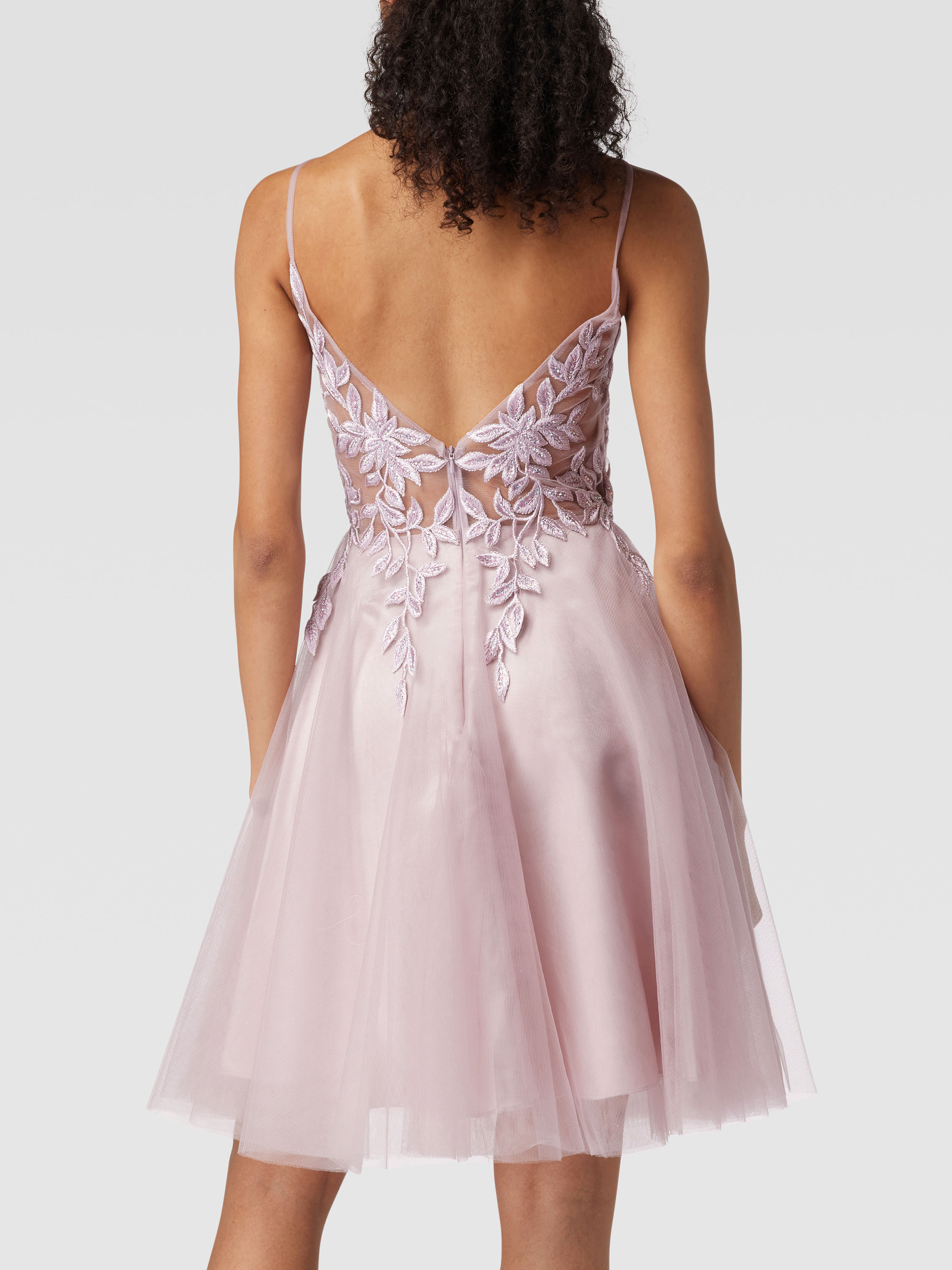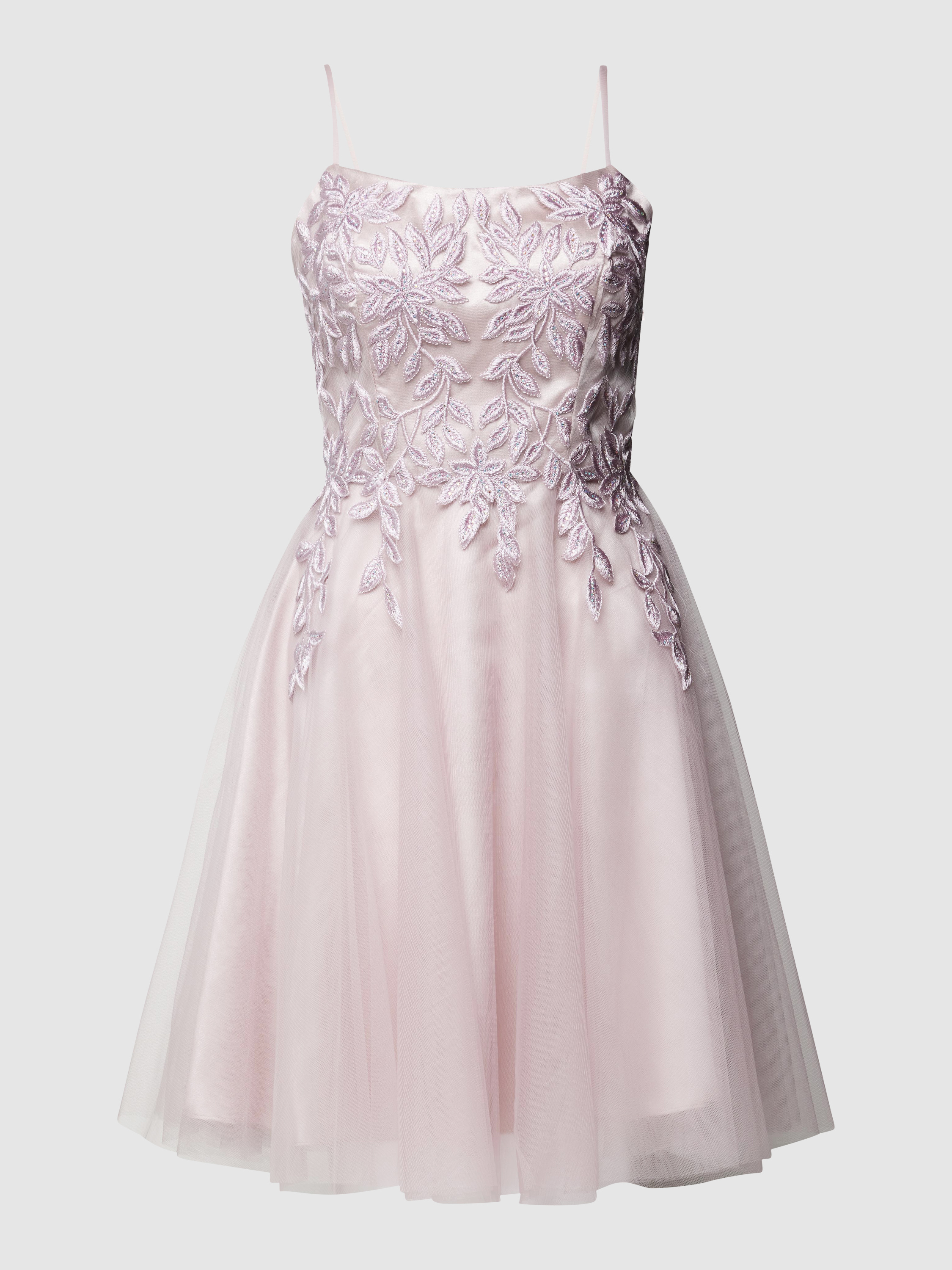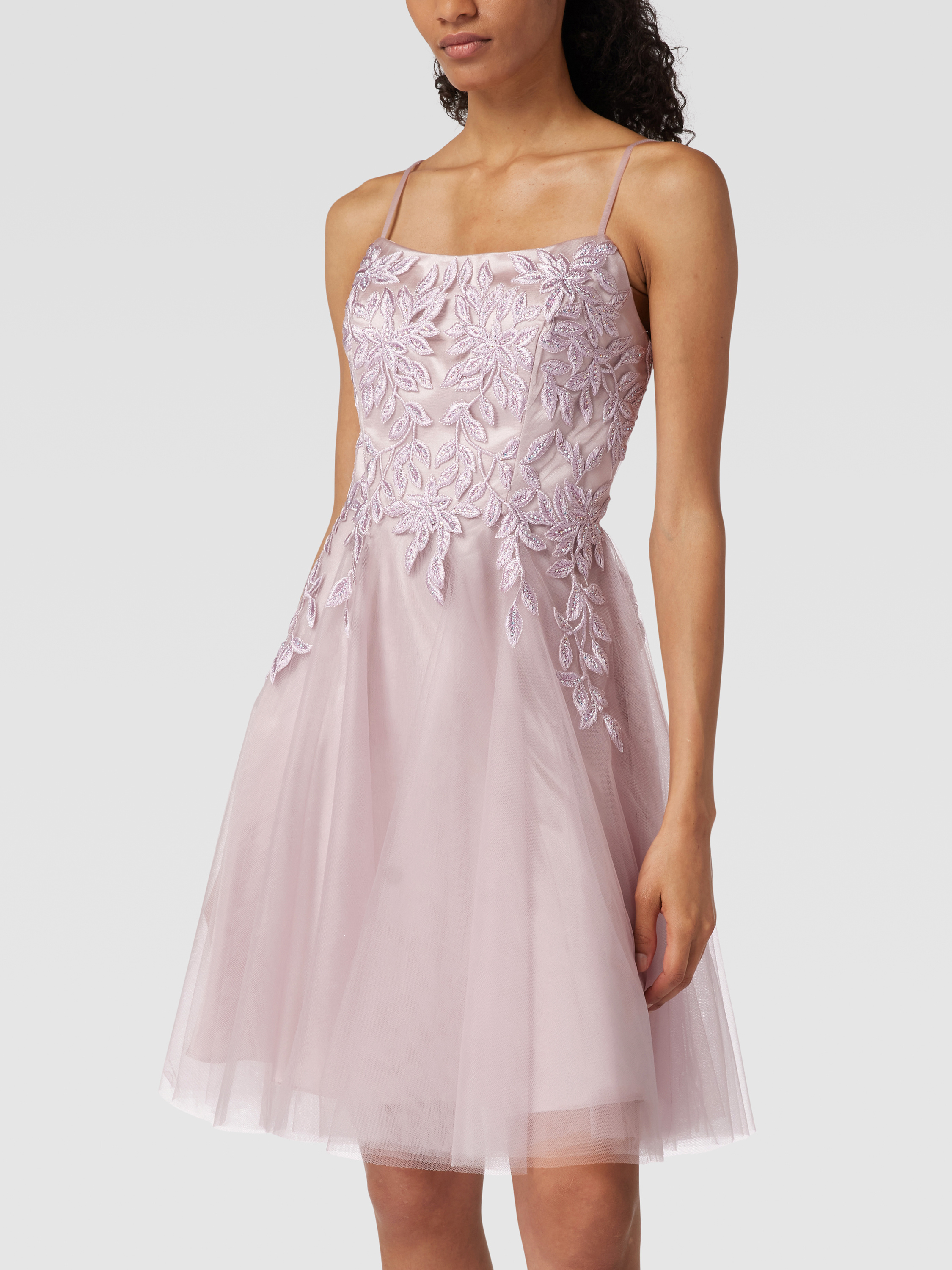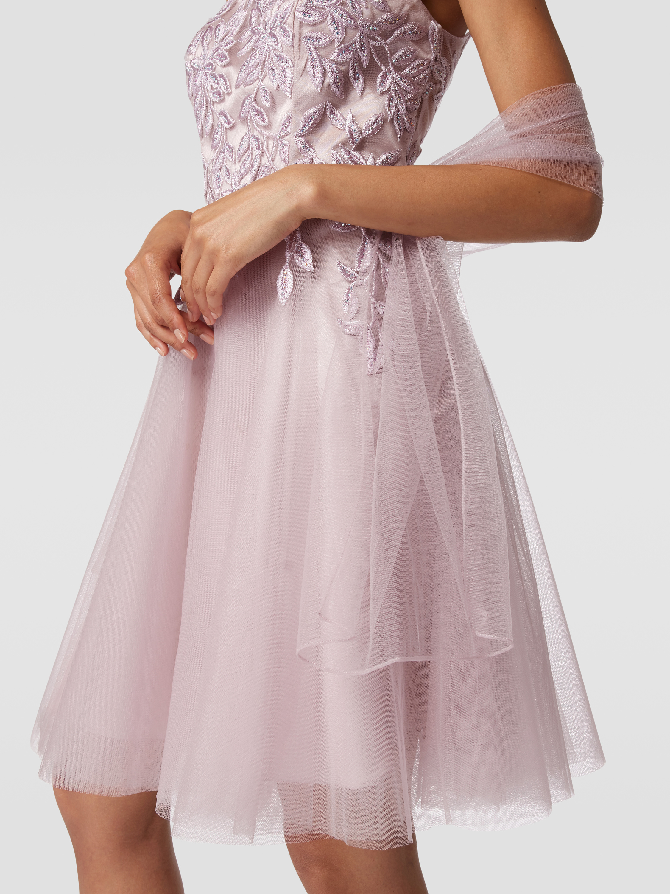 Das Cocktailkleid von LUXUAR FASHION ist tailliert geschnitten. Es zeigt sich mit Stola und floraler Stickerei mit Zierstein-Besatz.
