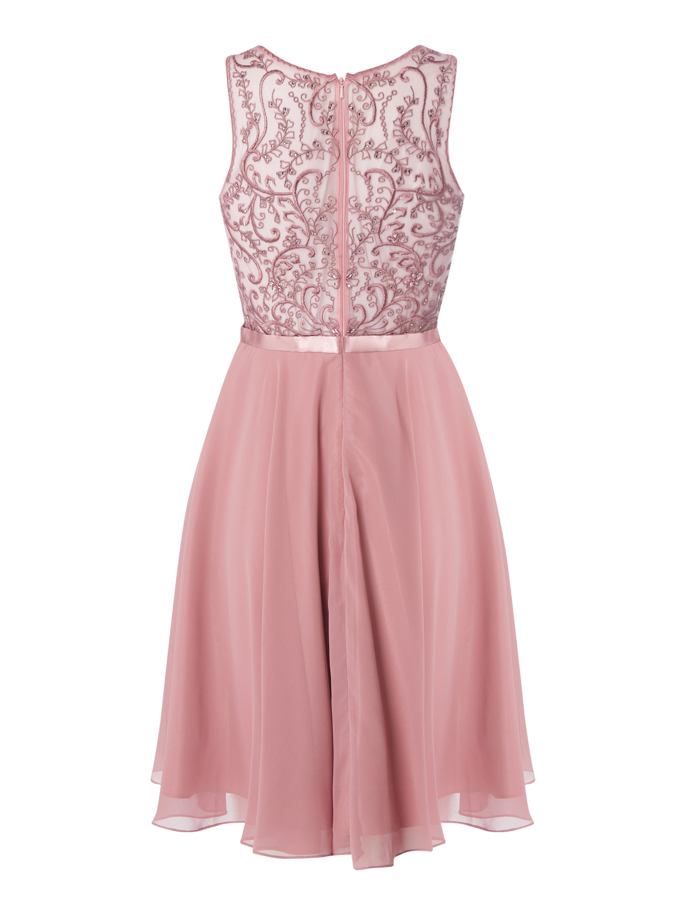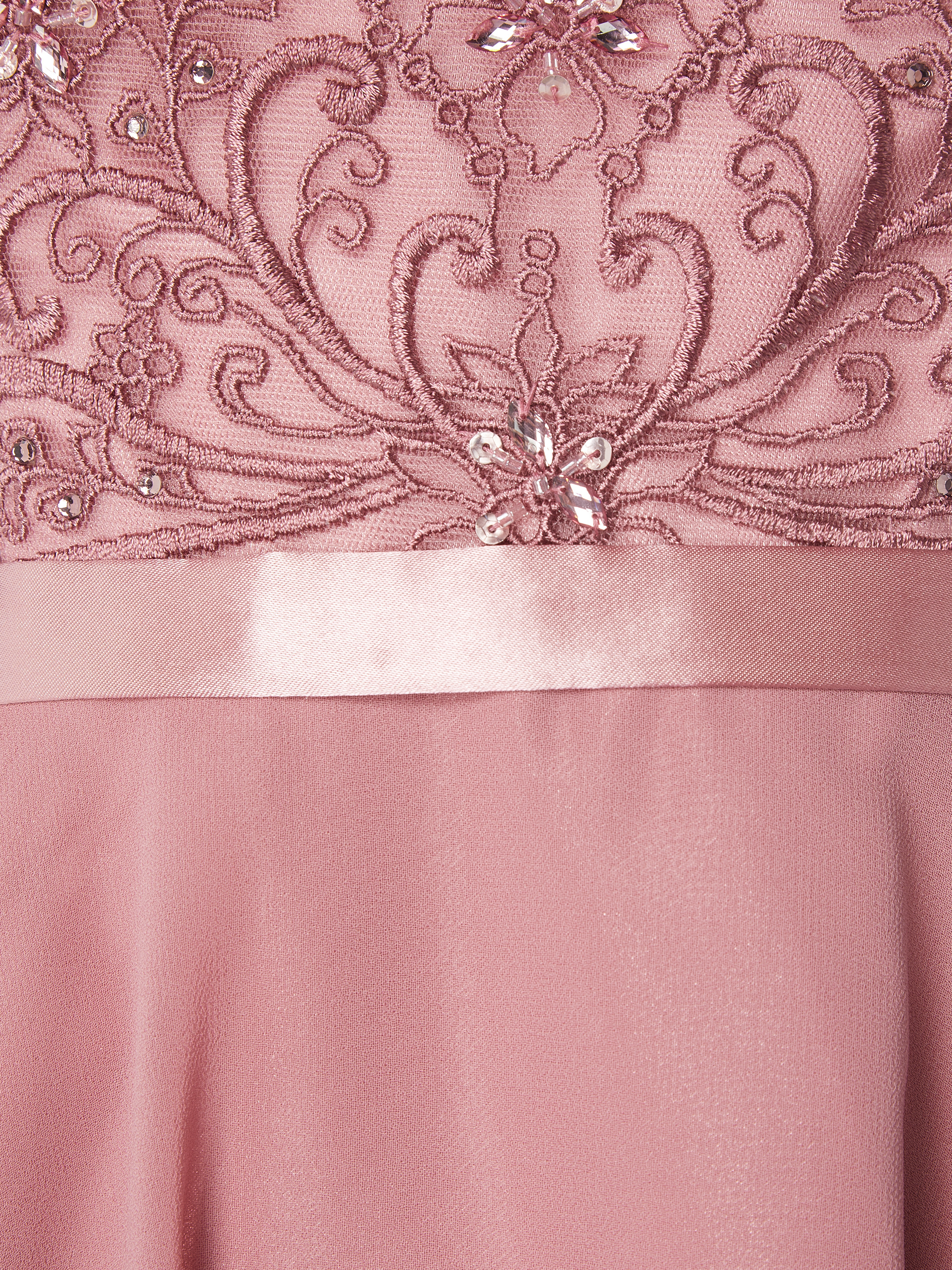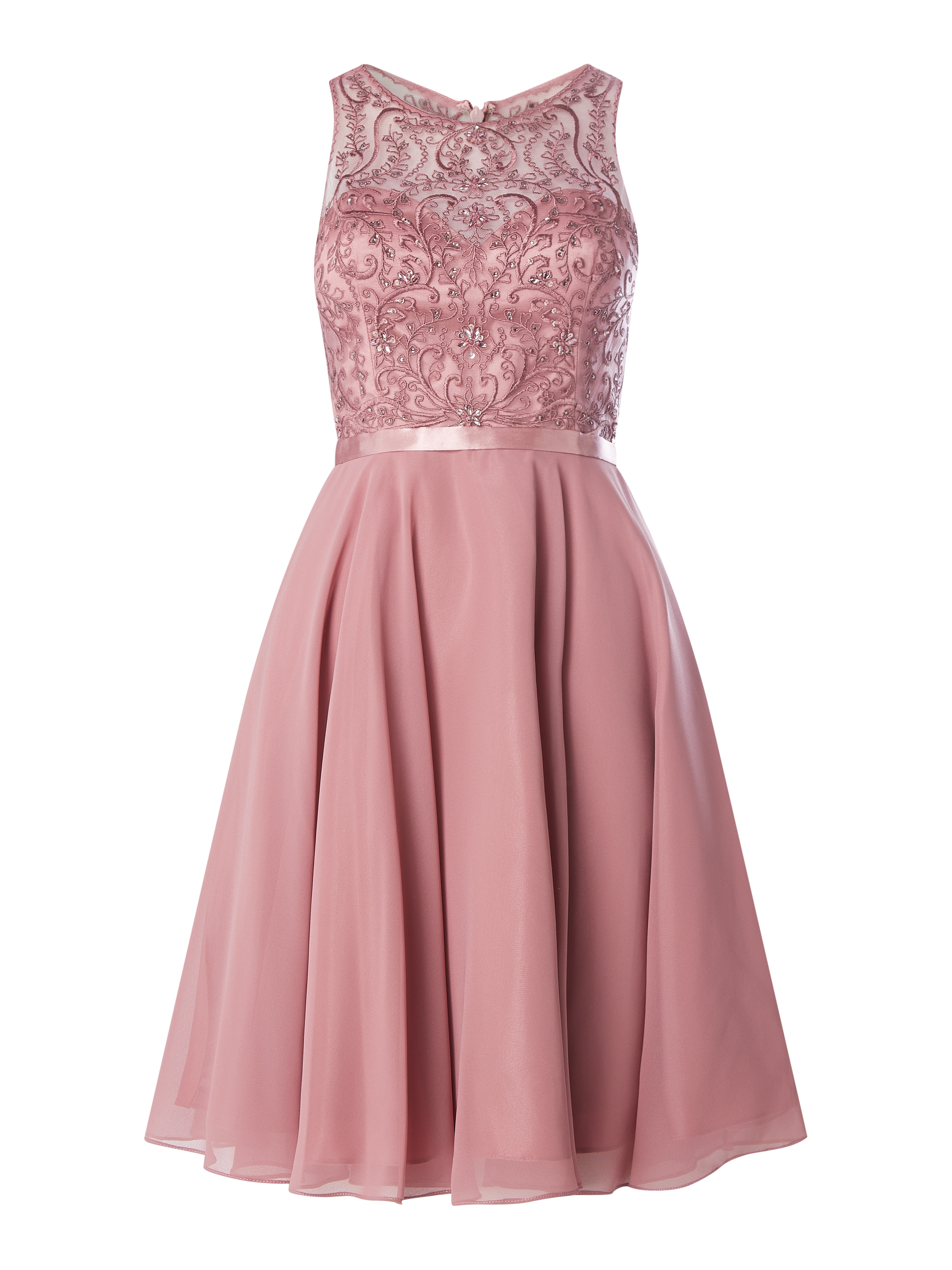 Das Cocktailkleid mit Ziersteinen von LUXUAR MAGIC NIGHTS kombiniert fein gearbeiteten Mesh und leichten Chiffon, wodurch ein angenehmes Tragegefühl entsteht. Florale Stickereien und funkelnde Details setzen dezente Akzente, während der taillierte Schnitt und der ausgestellte Rockteil eine feminine Silhouette formen. Die sanft fixierte Satinpasse rundet das Gesamtbild ab.