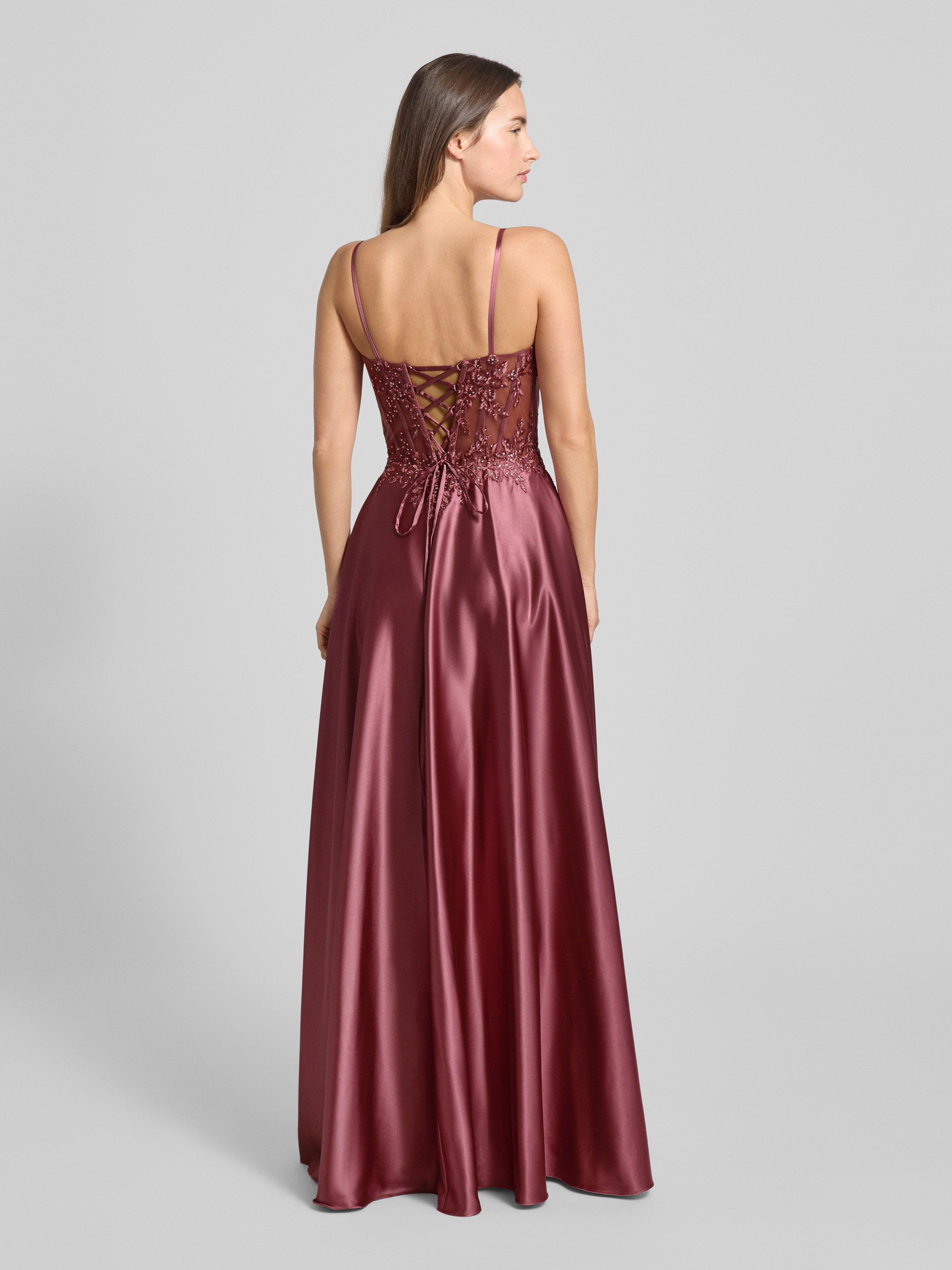 LuxuarRegular Fit Abendkleid mit floralem Spitzenbesatz in rostrot