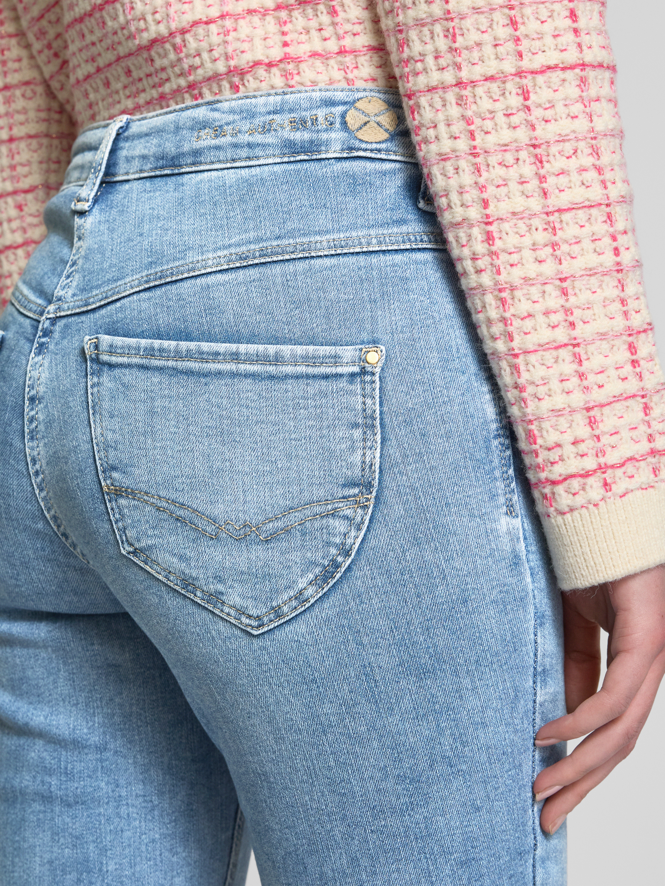 Die Bootcut Jeans von MAC im 5-Pocket-Design kombinieren einen Baumwoll-Mix mit Stretch-Anteil, wodurch sie sich angenehm an die Körperform anpassen und Bewegungsfreiheit ermöglichen. Das Bootcut-Design sorgt für eine schmeichelhafte Silhouette, während das Label-Detail dezente Akzente setzt. Ideal für vielseitige Alltagsoutfits.
