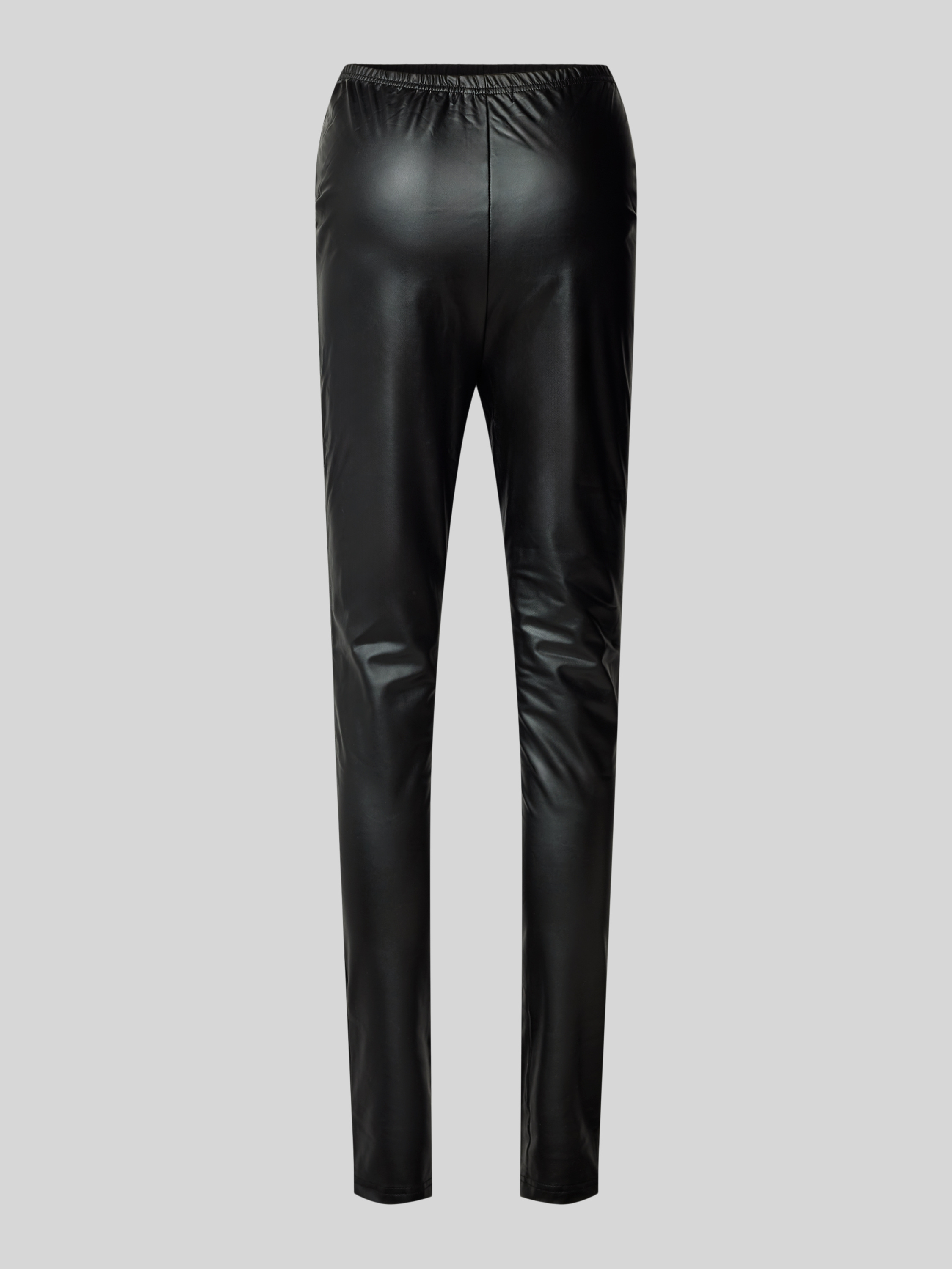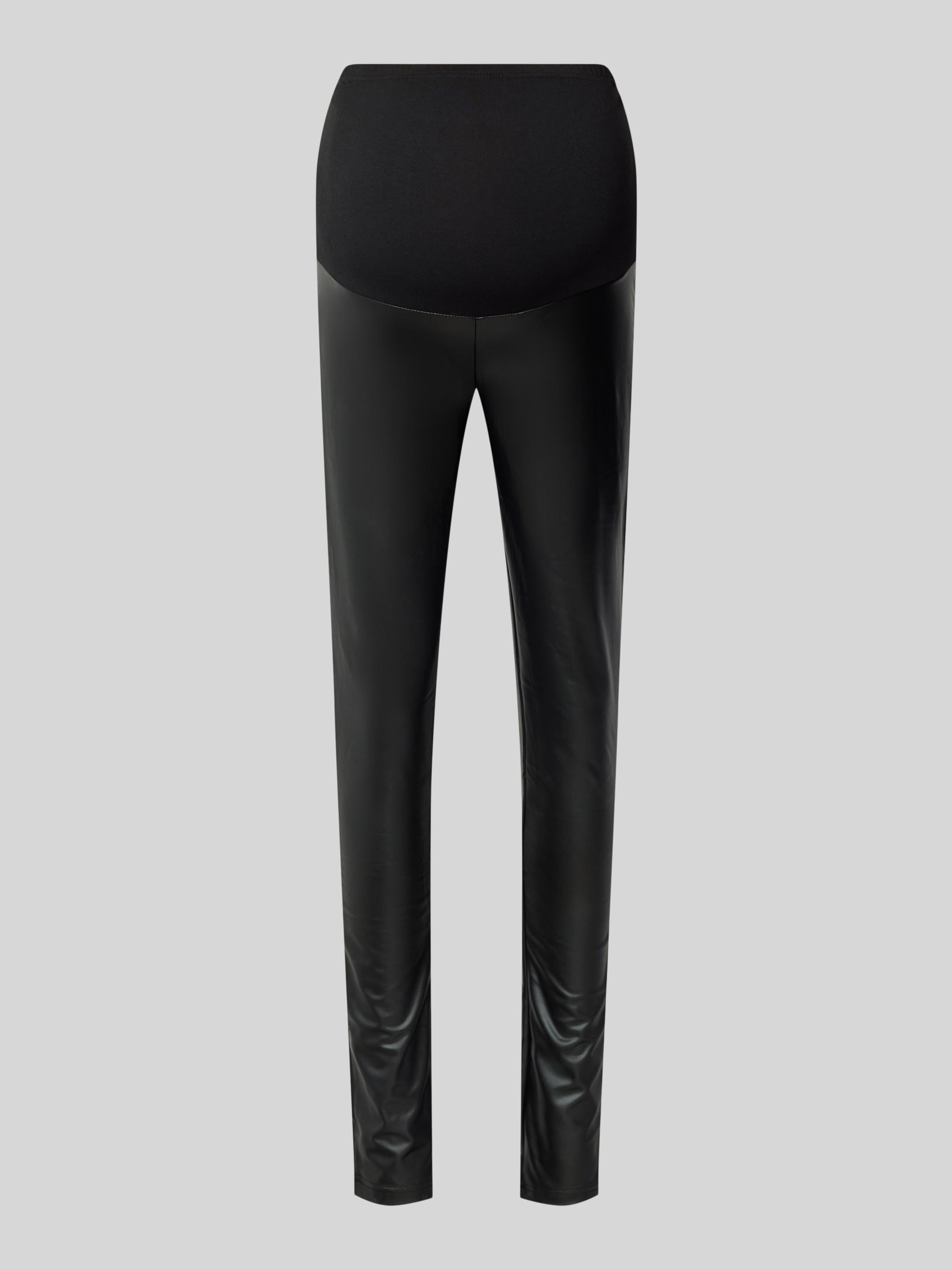 Die Damen Leggings von Mamalicious, Modell 'SOYA', kombinieren einen edlen Material-Mix mit einem Stretch-Anteil, der für eine optimale Passform sorgt. Die Leder-Optik und die raffinierten Teilungsnähte verleihen dem eng anliegenden Schnitt eine elegante Note, die vielseitig einsetzbar ist.