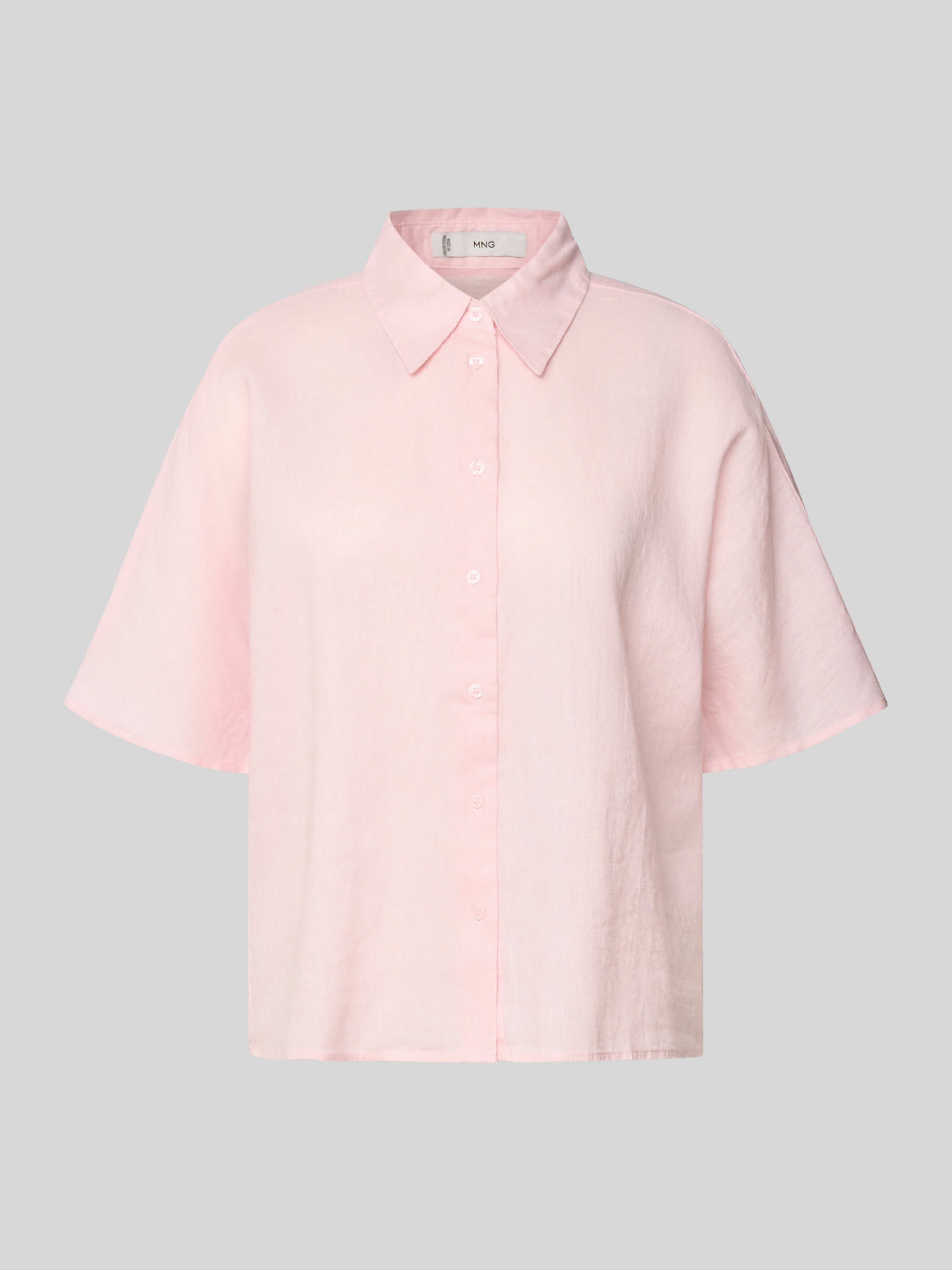 MangoBoxy Fit Bluse aus Leinen-Baumwoll-Mix mit 1/2-Arm Modell 'PAI' in hellrosa