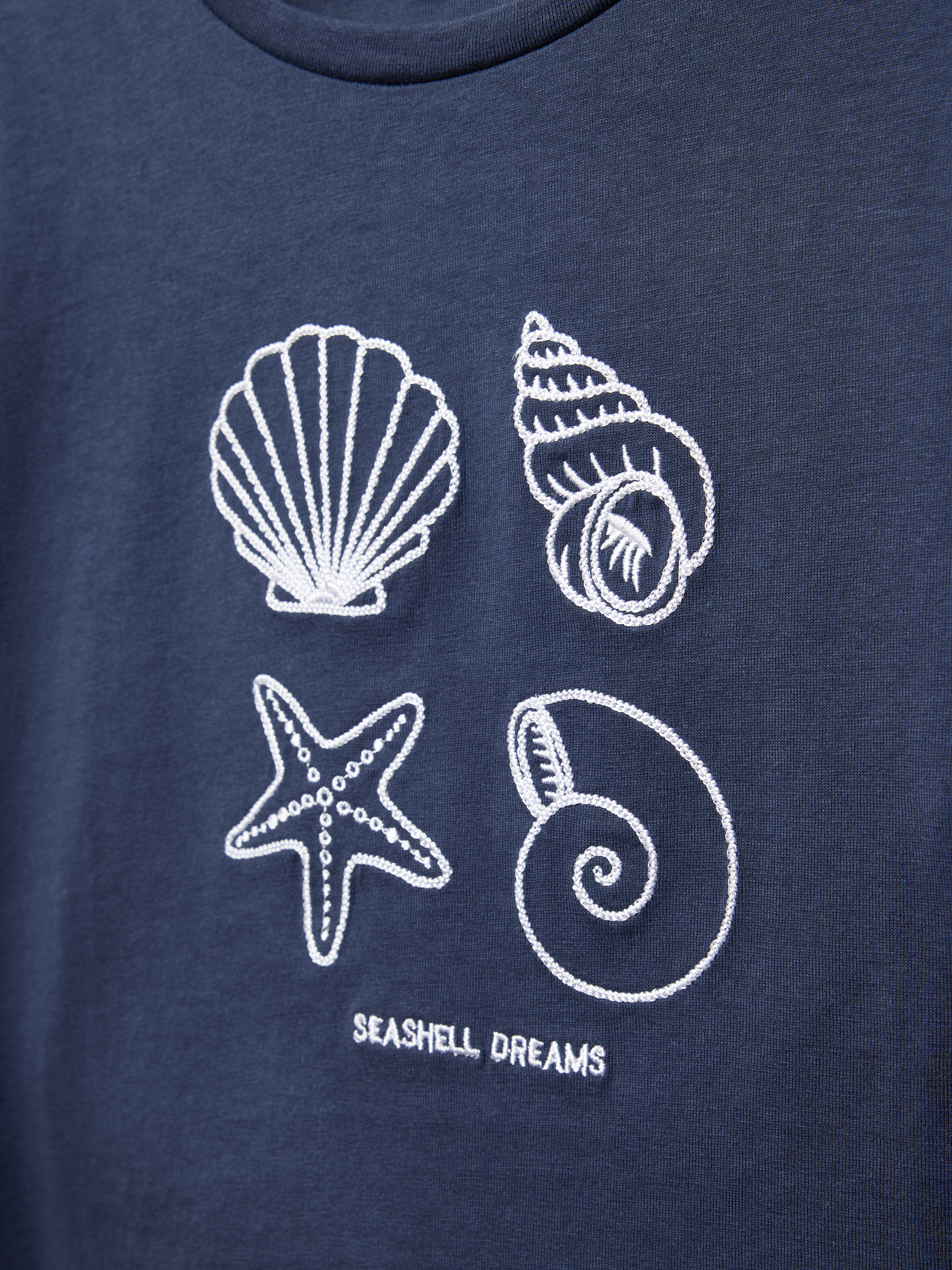 MangoBoxy Fit T-Shirt mit Motiv-Stitchings Modell 'seashell' in marine