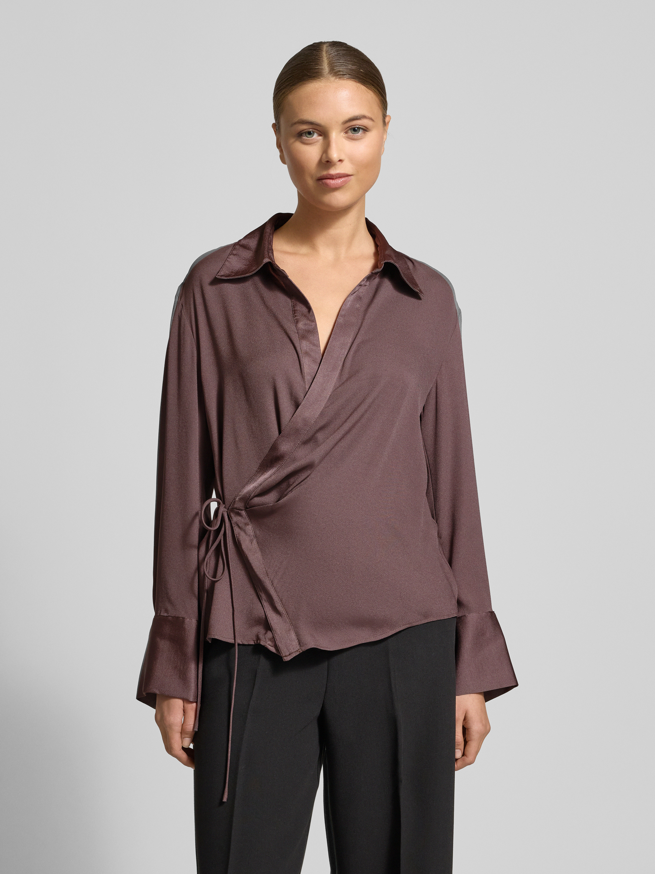 Die Hemdbluse von Mango zeigt sich mit lockerem Schnitt und klassischem Hemdblusenkragen. Durch die Wickel-Optik entsteht eine legere Silhouette, die vielseitige Kombinationsmöglichkeiten eröffnet. Der Schnürverschluss sorgt für individuelle Anpassung und unterstützt ein angenehmes Tragegefühl im Alltag.