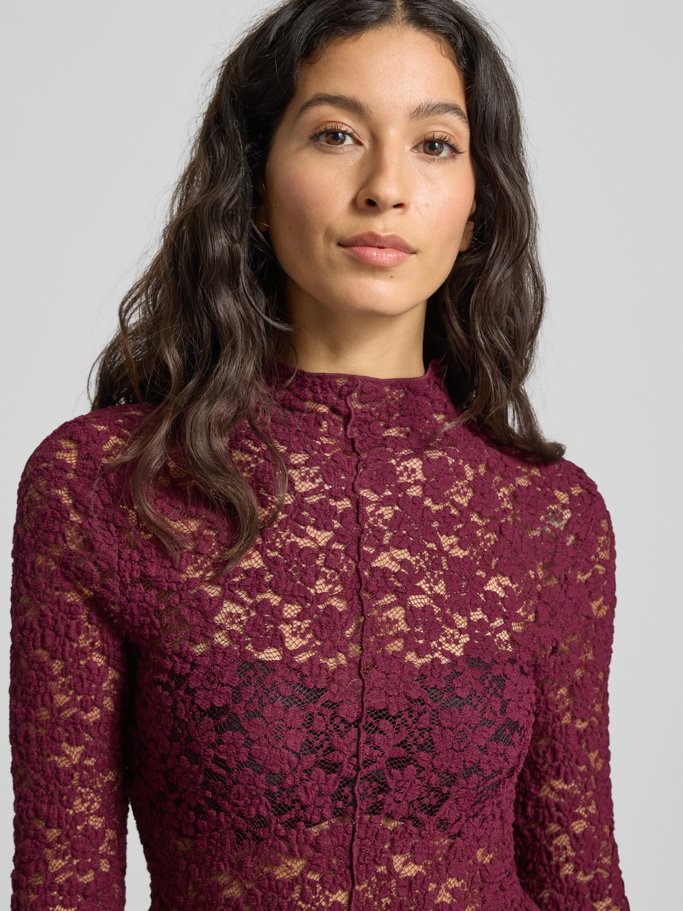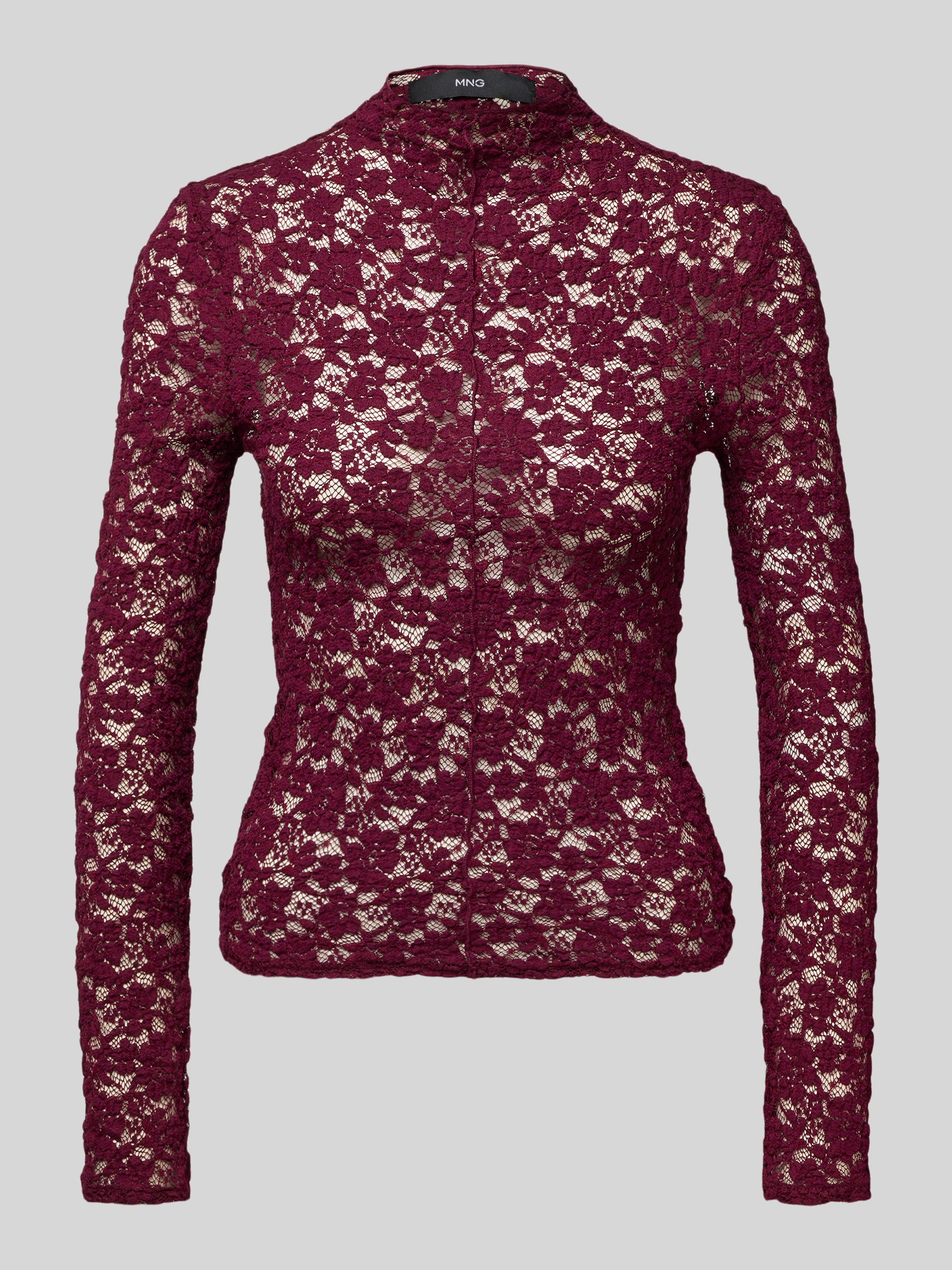Das Damen Longsleeve von Mango, Modell 'SELENA', zeichnet sich durch einen schmalen Schnitt und einen angenehm leichten Material-Mix mit Baumwoll-Anteil aus. Der Stehkragen ergänzt das semitransparente Design und sorgt für einen modernen Look, der vielseitig kombiniert werden kann.