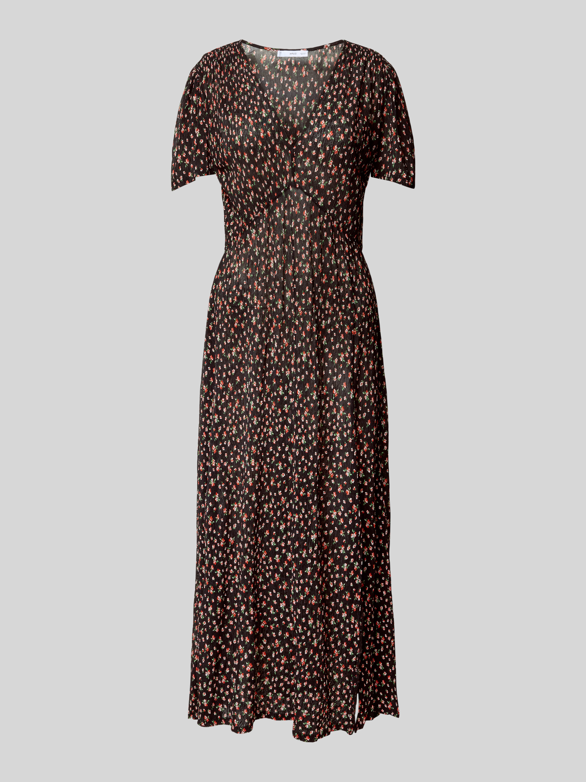 Das Midikleid mit V-Ausschnitt Modell 'POMI' von Mango bietet durch seinen geraden Schnitt und das dezente Design vielseitige Kombinationsmöglichkeiten. Angenehm zu tragen, eignet es sich ideal für verschiedenste Anlässe. Der Allover-Look verleiht dem Kleid eine zeitlose Eleganz.